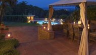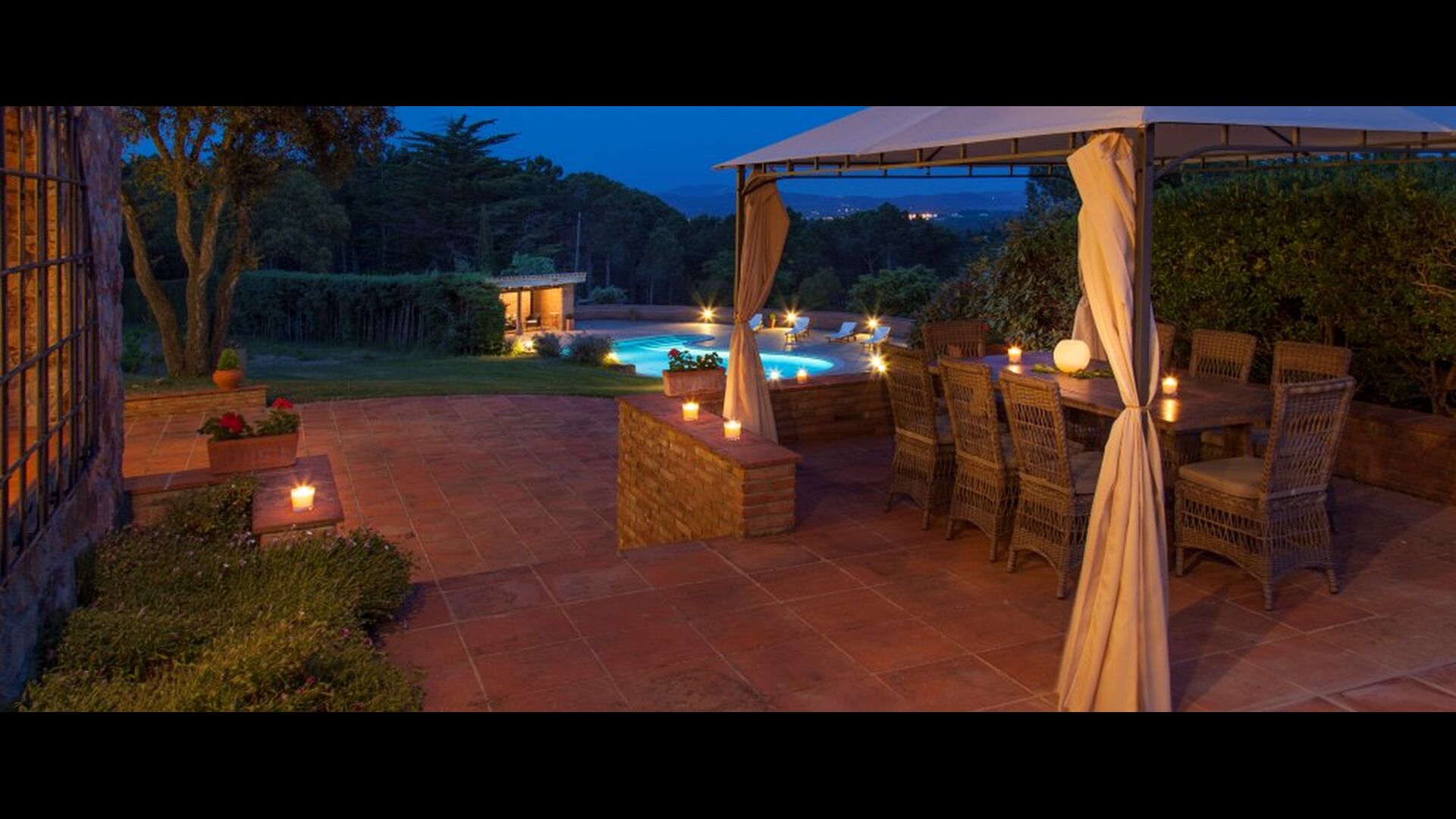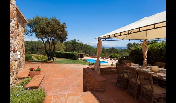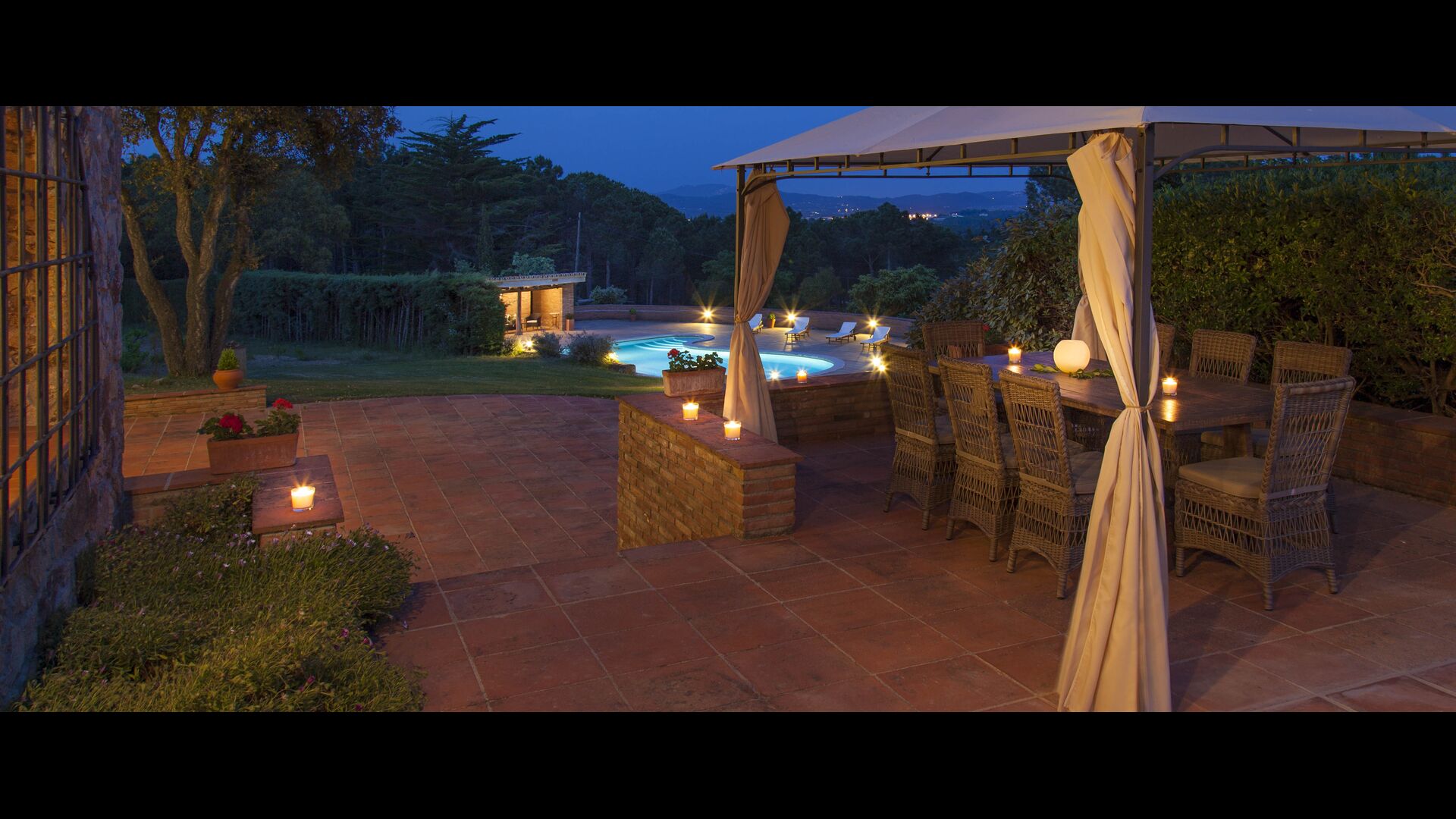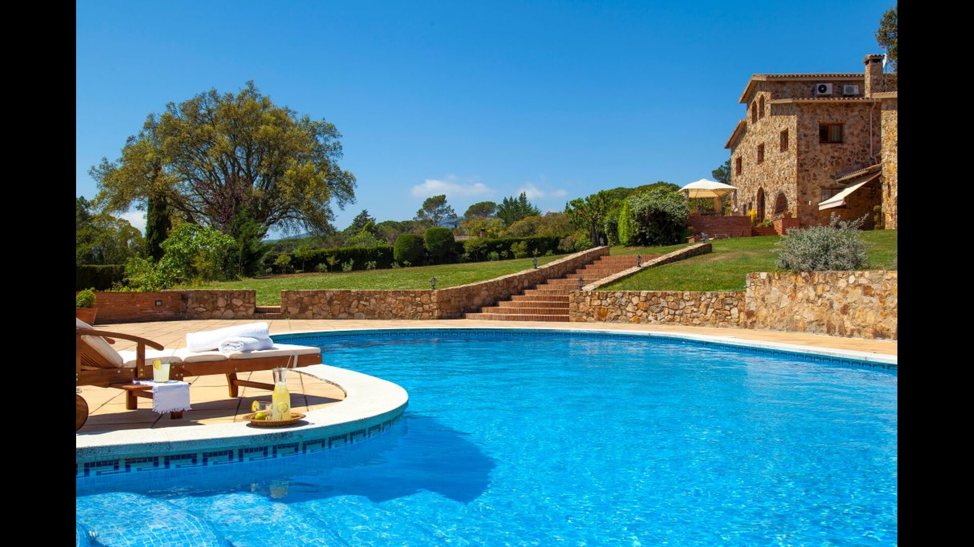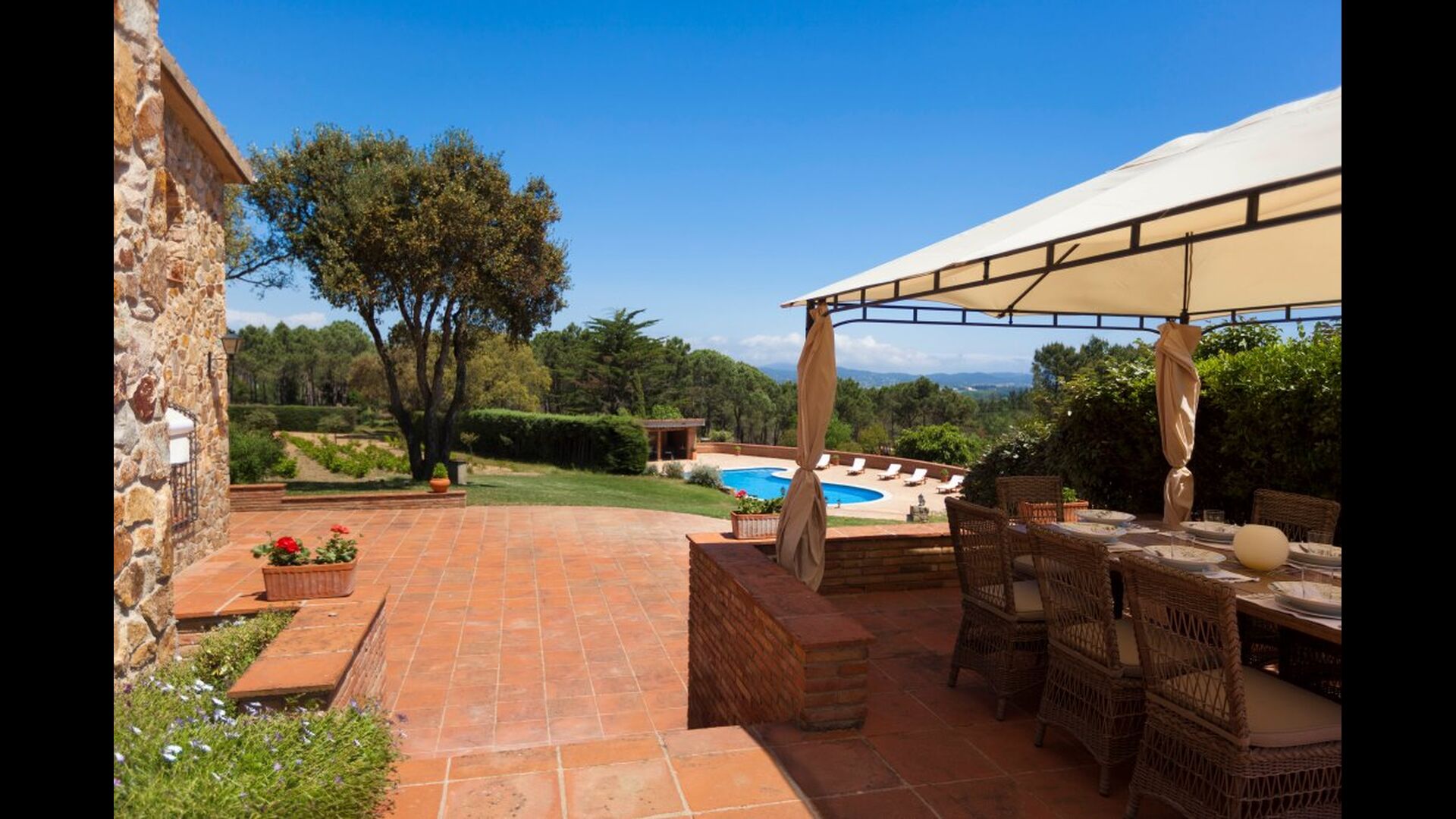 Udenfor finder er der på den ene side den spektakulære 14m swimmingpool omgivet af græsplæner og vinmarker suppleret med en hyggelig veranda. På den anden side er der en storslået veranda med sofaområde til sammenkomster og en udendørs spiseplads under en baldakin af smedejern, der tilbyder en fantastisk udsigt over ejendommen med udsigt over byen Blanes og Montnegre Natural Park. I en anden del af ejendommen er der frugtplantagen, fyrreskoven og en stor dam. Beliggende på den bagerste terrasse er der et hyggeligt roligt område med et stenbord til hvile ved siden af træerne.