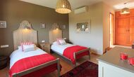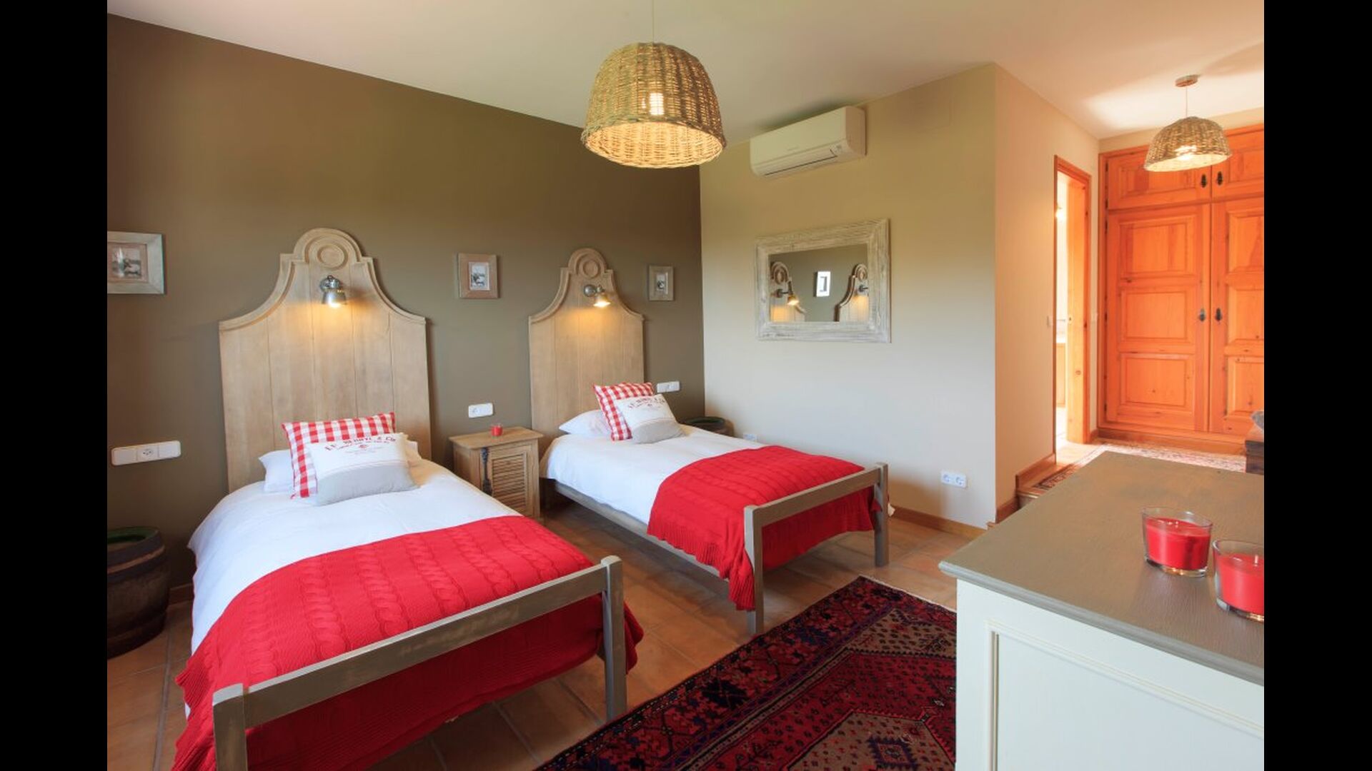 The Red Mountain Suite er en suite på 35m2 med to enkeltsenge fuldt udstyret med TV, badeværelse med bruser og badekar samt garderobe. Det har udsigt over haven, Montnegres vidunderlige naturpark og det rolige og hyggelige terrassehjørne, hvor stenbordet ligger og hviler ved siden af træerne. Det er placeret i den sydlige fløj af øverste etage. Dens indretning minder om de nordiske hyggelige huse, der kombinerer den intense røde farve med træ- og kakitoner, som gennemsyrer hele opholdet med lys og farver.