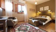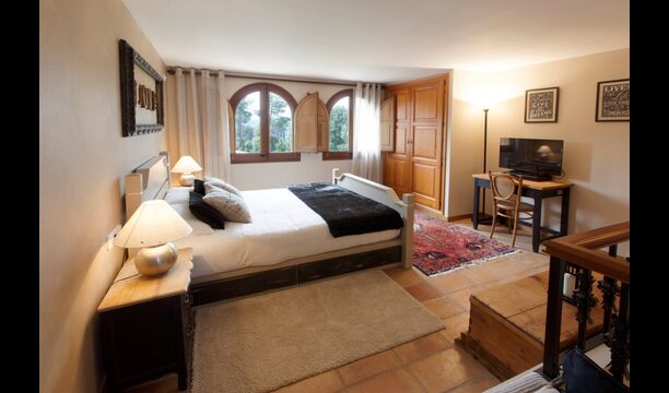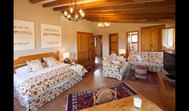 The Vineyard Deluxe Suite er en super Deluxe suite på 80m2 med spektakulær udsigt over poolen, ejendomsvinmarkerne, til byen Blanes og havet og det fantastiske omgivelserne i Montnegre Naturpark. Den ligger i husets nordfløj på øverste etage. Det har en king size seng på 2m gange 2m, en stue med TV og DVD, et påklædningsværelse, et badeværelse med bruser og et bord med to stole til at nyde morgenmaden, hvis det er nødvendigt med familien. Dette kan tilberedes i det lille eksklusive tekøkken, der ligger ved siden af dette eksklusive ophold. Den er udstyret med køleskab, brødrister, kedel og kopper og underkopper. Indretningen er meget provencalsk med pastelfarver og unikke stykker antikt træ.