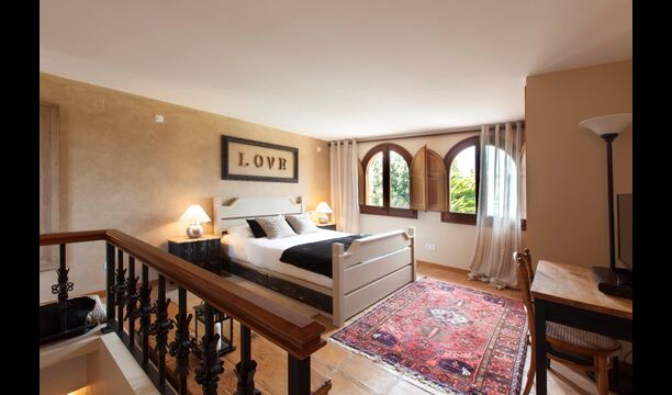 The Romantic Attic Suite er en helt speciel og romantisk suite på 40m2 med dobbeltseng placeret på husets øverste etage udstyret med TV og DVD samt garderobe. Det har et stort badeværelse med bruser og badekar med en spektakulær udsigt over ejendommen, naturparken Montnegre og byen Blanes og havet. Ydermere har værelset en fantastisk udsigt over ejendommen fra hovedindgangen til huset, hvor centrum for attraktionen er de fantastiske oliven- og palmetræer og en smuk fyrreskov. Indretningen er en kombination af neutrale og sorte farver, som giver den en unik personlighed og gør opholdet til et meget romantisk og meget hyggeligt hjørne. Ordet “Kærlighed” lavet af ægte træ dominerer rummet og giver det en helt specielberør.