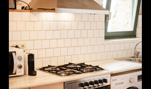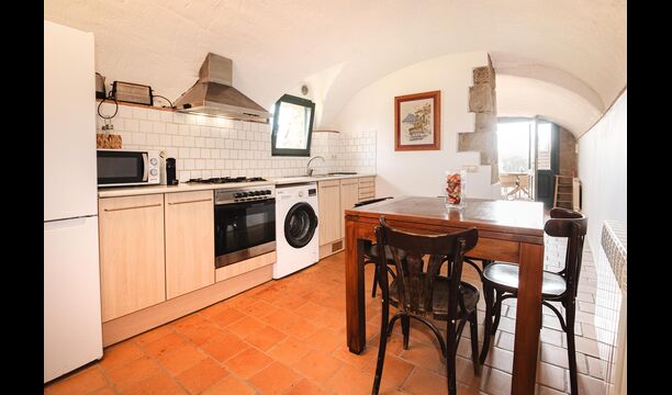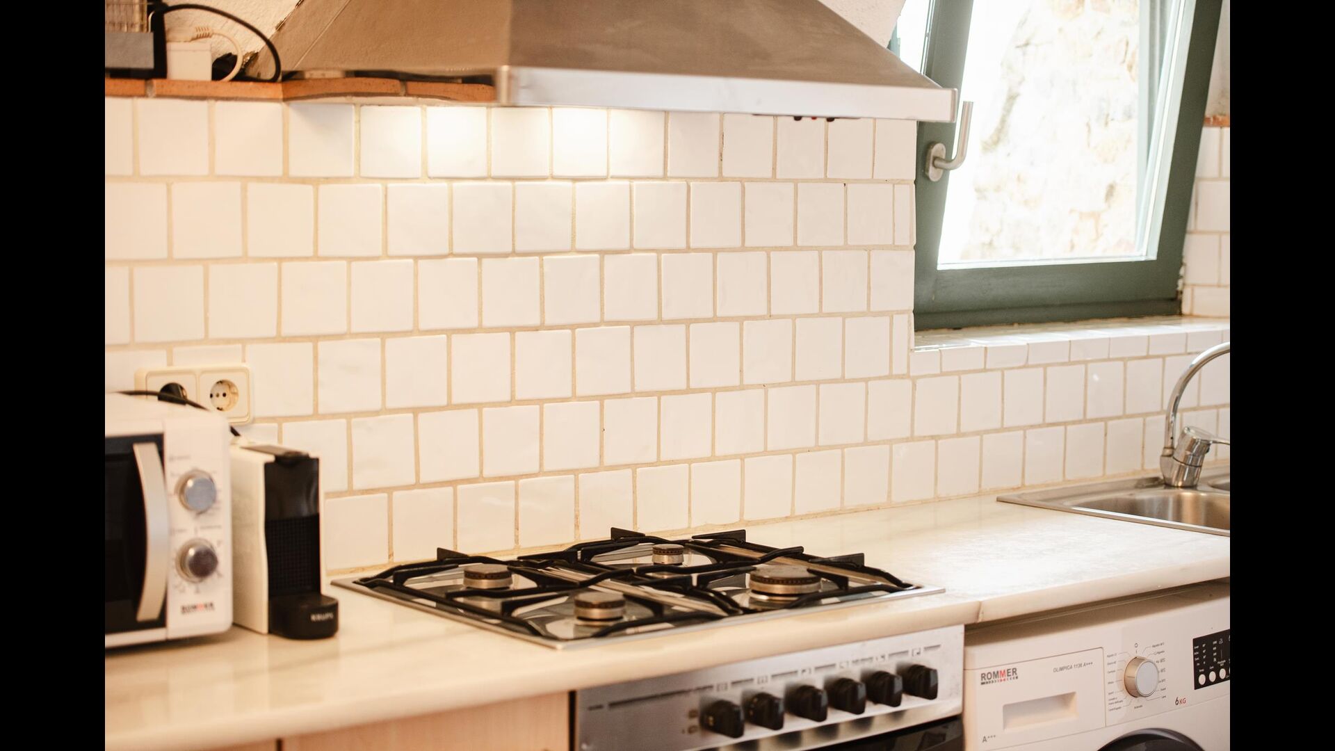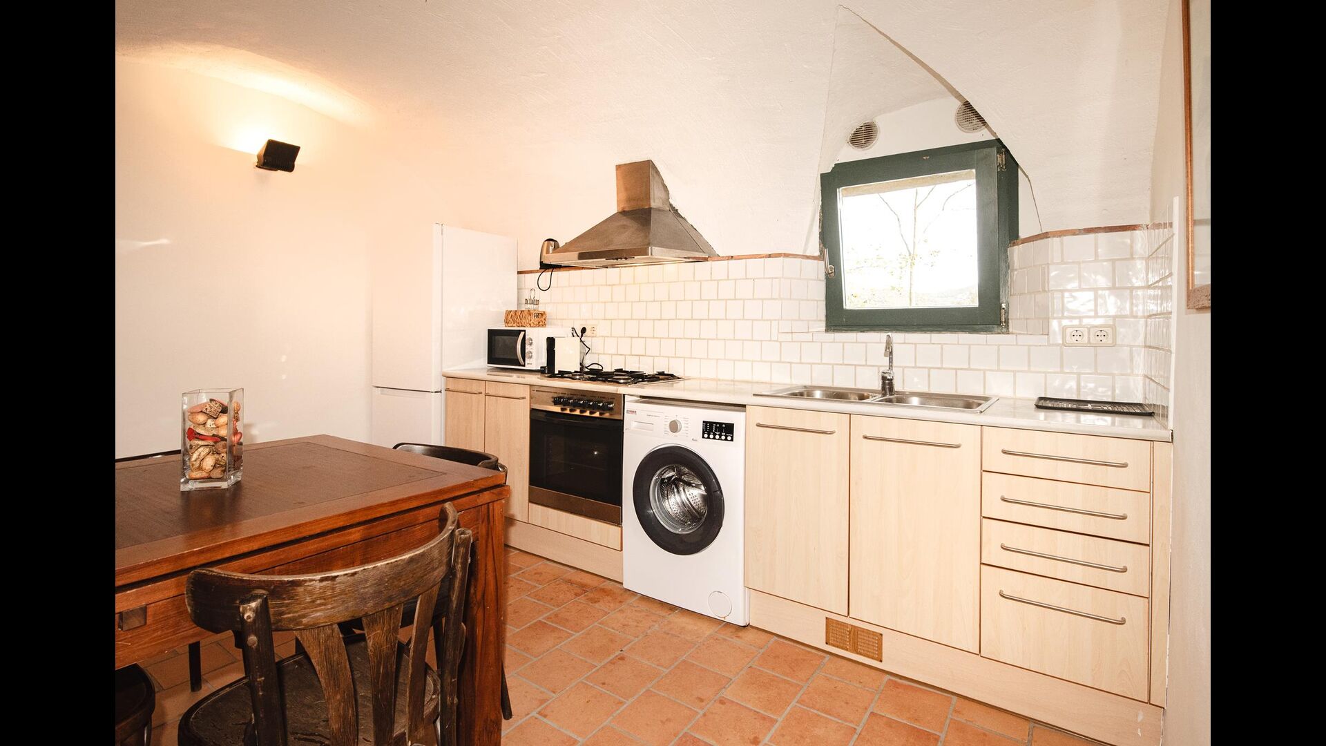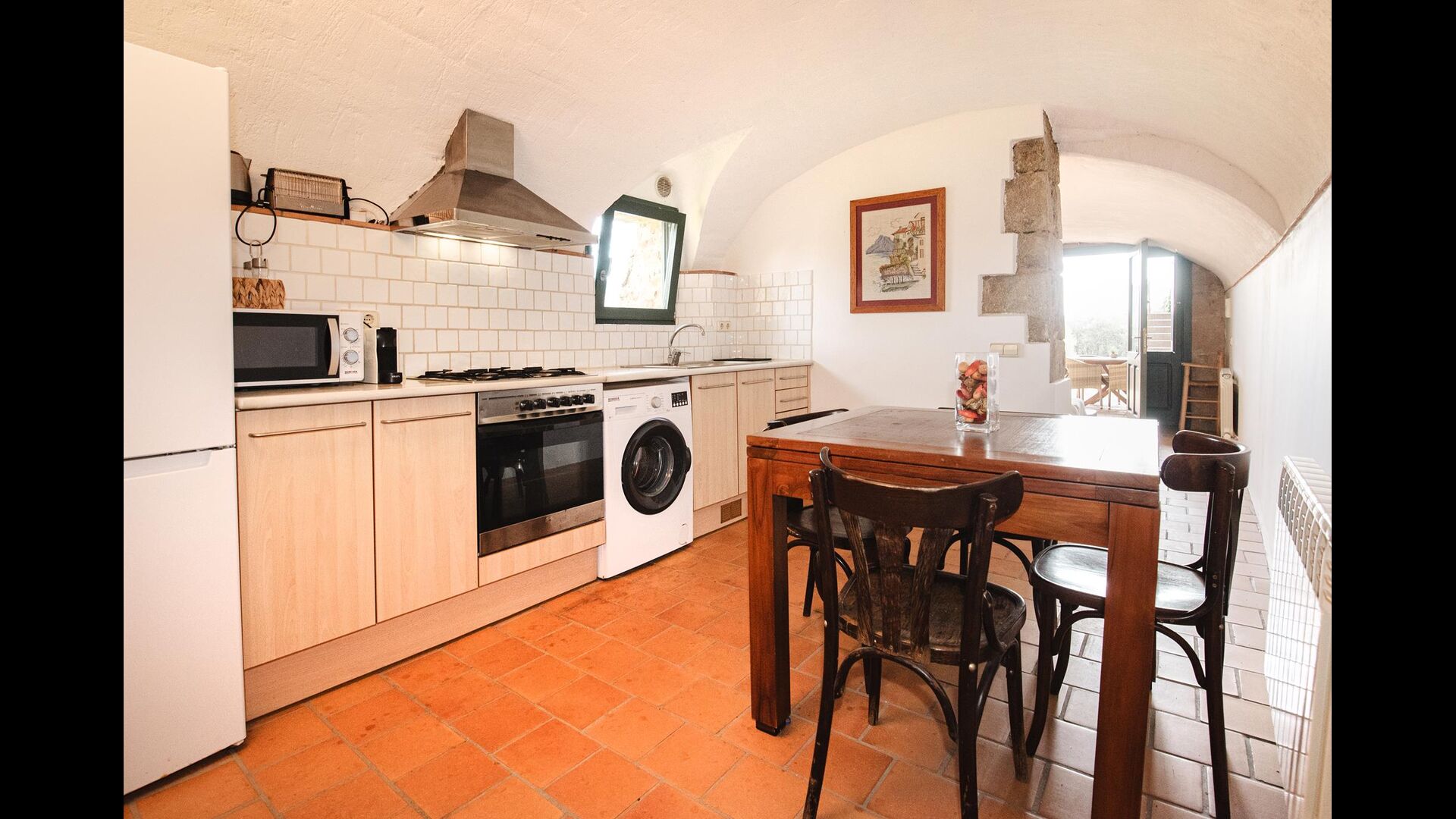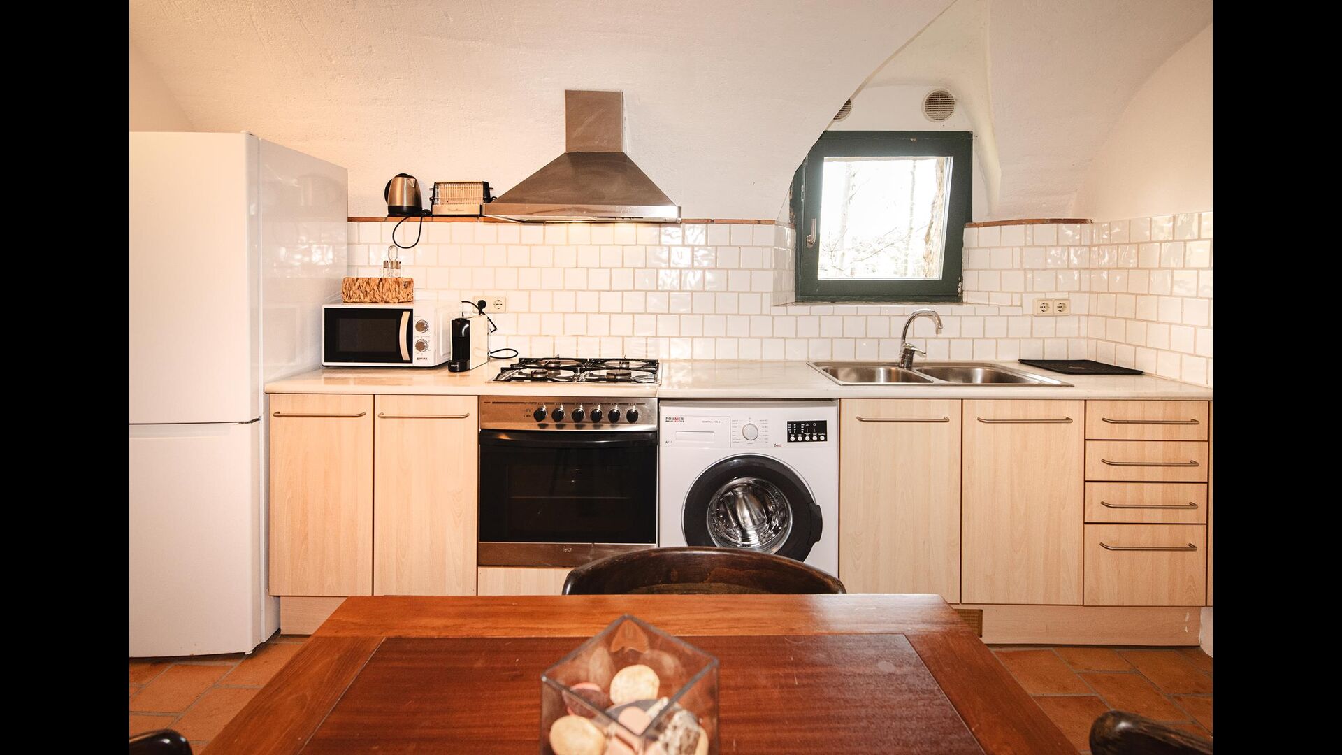 Køkkenet er meget veludstyret. Her er der vaskemaskine, oven, komfur, køleskab, fryser, mikrobølgeovn, brødrist og spisebord, hvis det skulle vise sig at blive for dårligt vejr til at spise ude på terrassen – hvilket dog er meget usandsynligt, da Catalonien har usædvanligt mange soldage om året.
