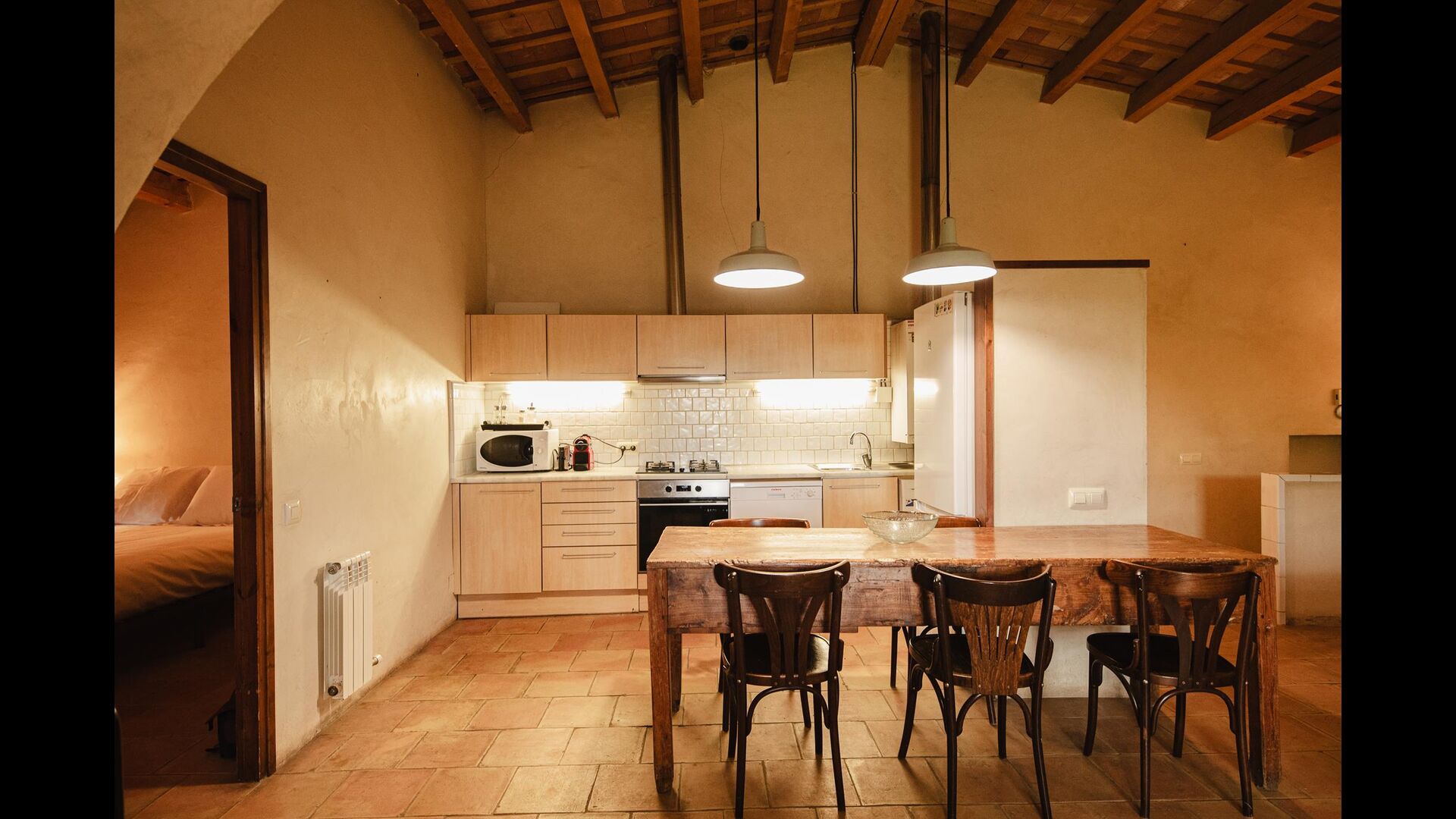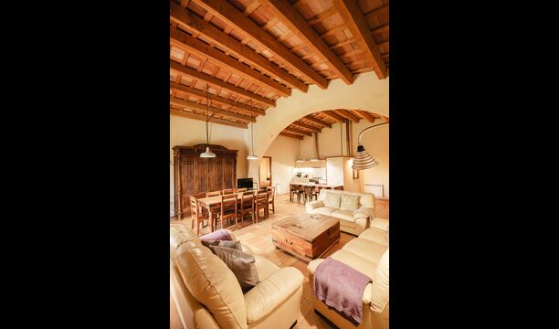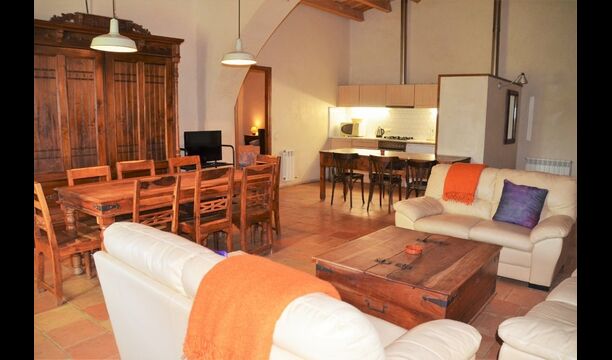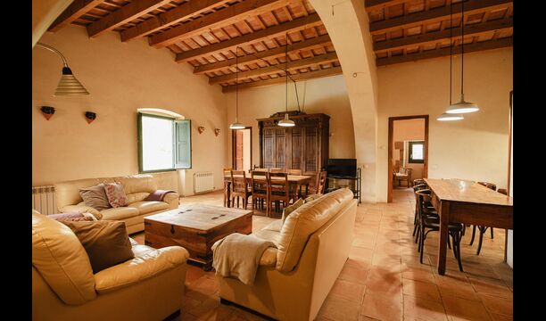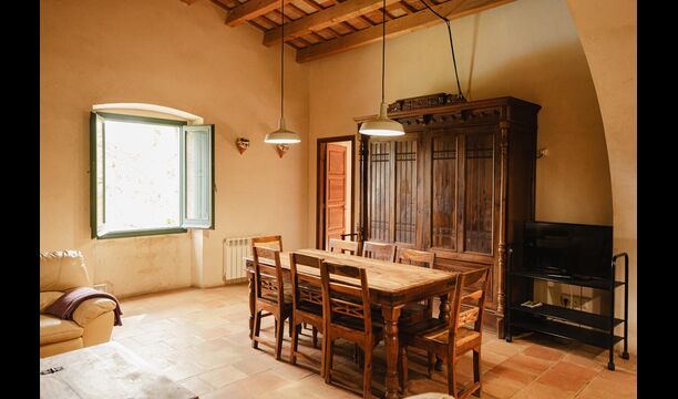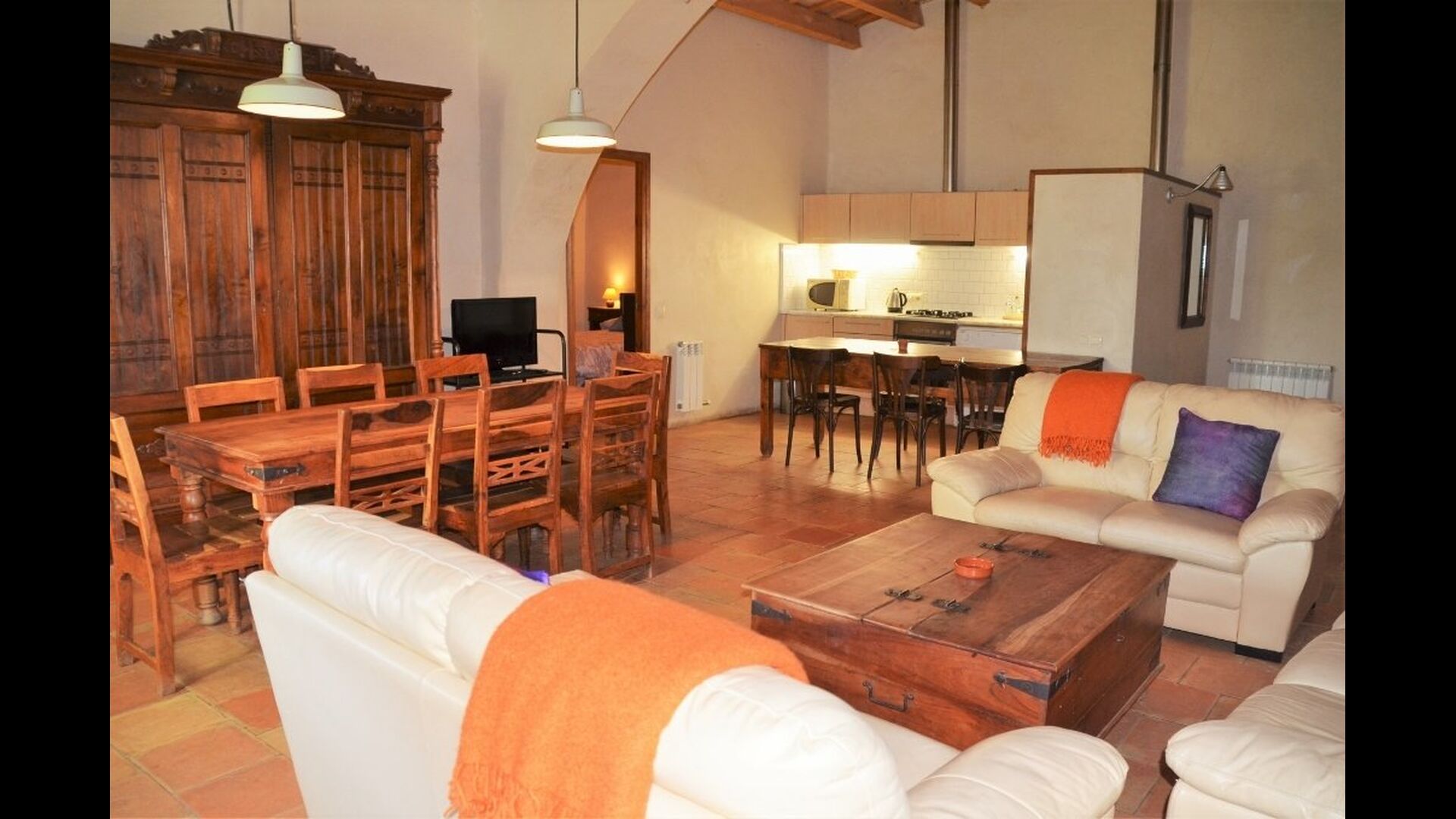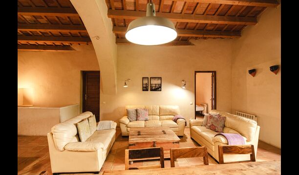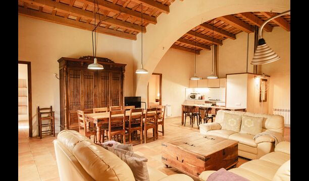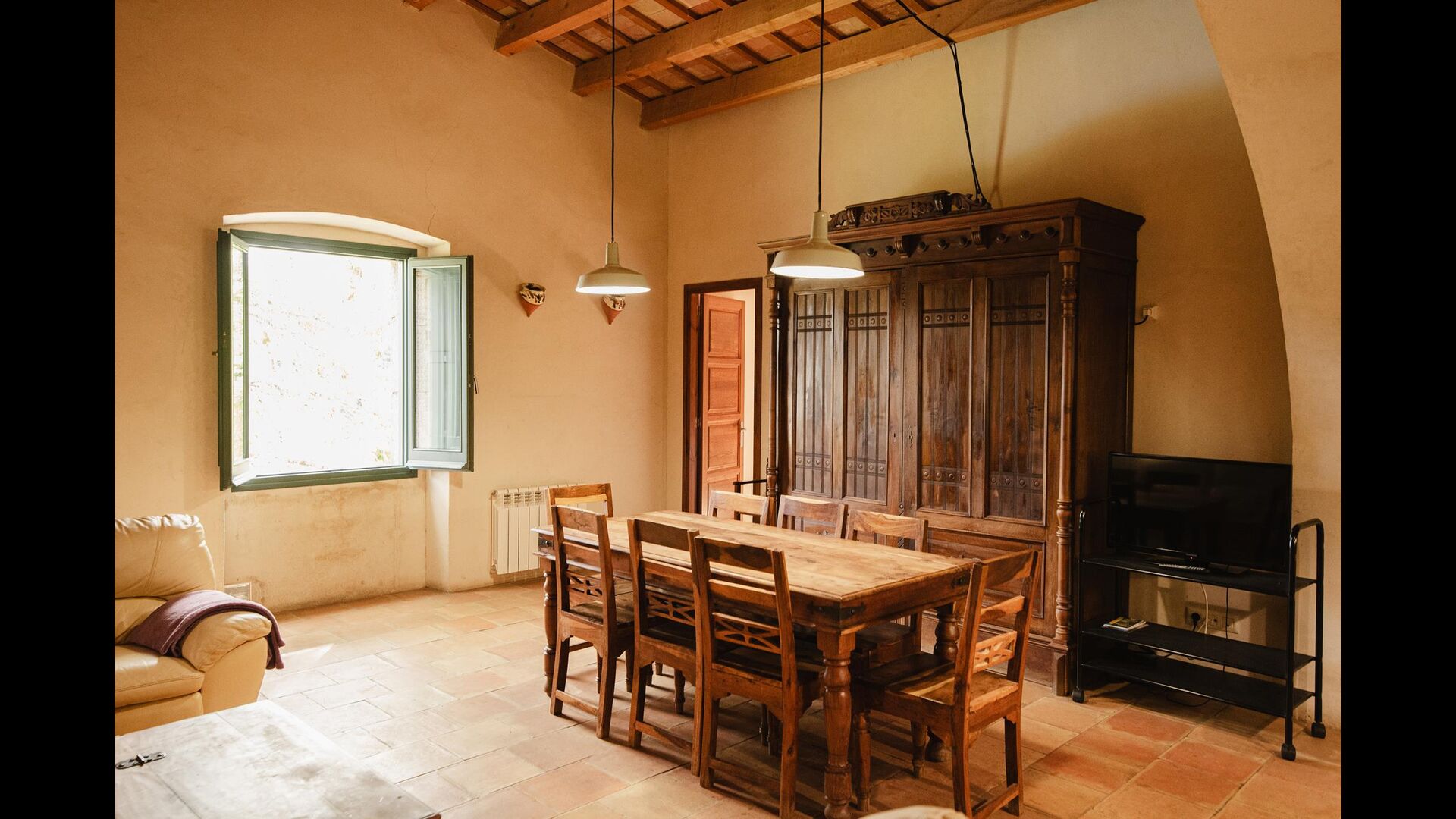 Lejligheden til 7 personer ligger på 1. etage i hovedbygningen. Man går igennem et fælles aktivitetsrum, før man når til La Sala. Her bliver man mødt af et stort opholdsrum, der fungere som en stue og er smukt indrettet i traditionel catalansk stil med moderne træk. I stuen finder man to flotte spiseborde samt tre sofaer, et sofabord og et fjernsyn, så der selvfølgelig også er god mulighed for at slappe af. Ud over disse siddearrangementer finder man diverse malerier og vægdekorationer, som giver en rar stemning. Det fuldt udstyrede køkken er forbundet med opholdsstuen og er inklusivt vaskemaskine og opvaskemaskine.