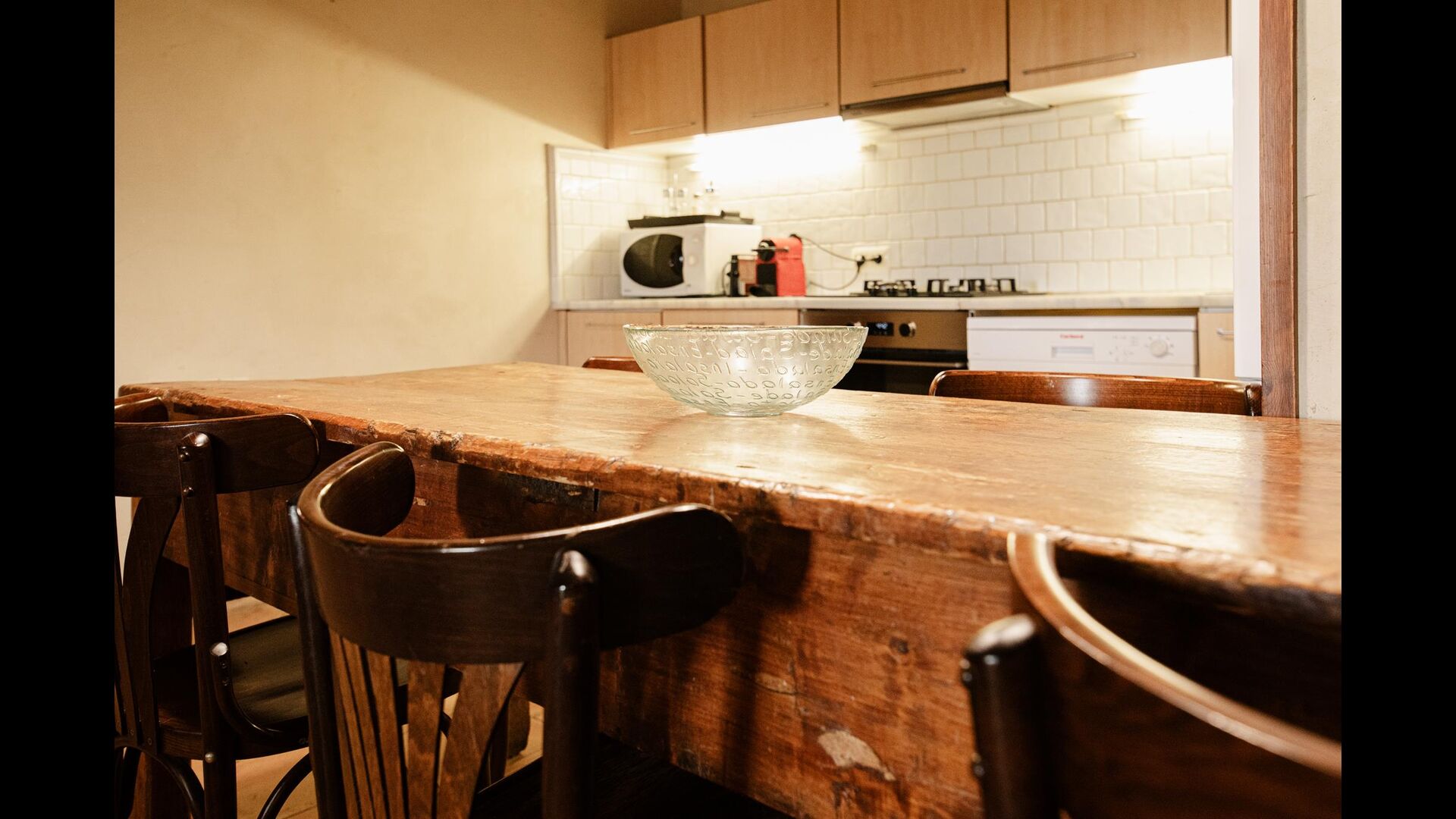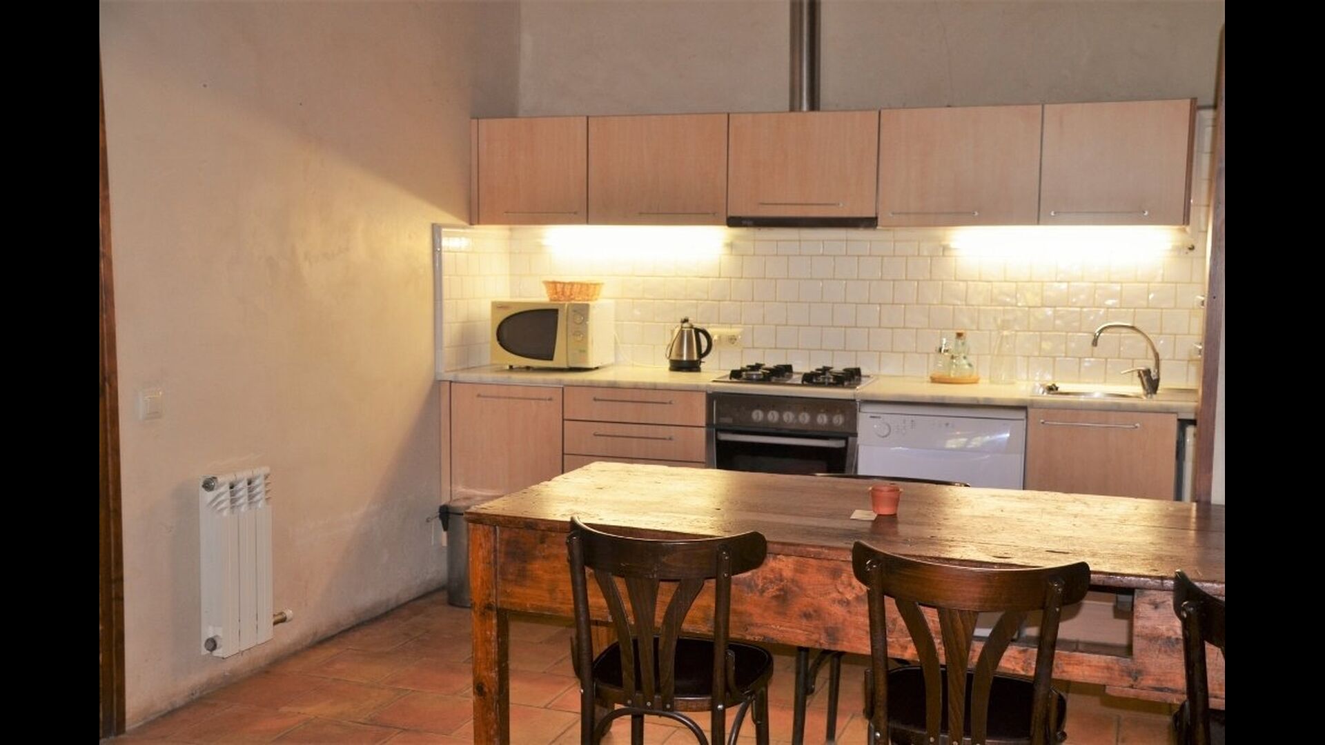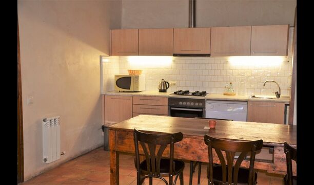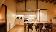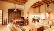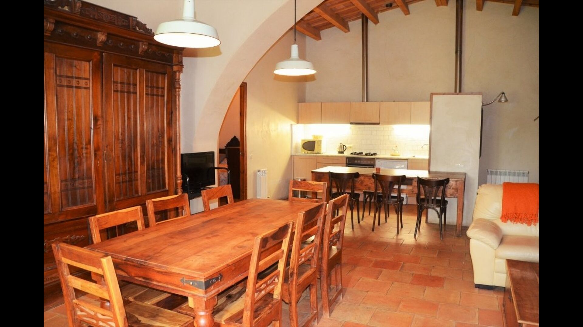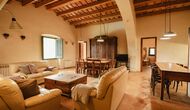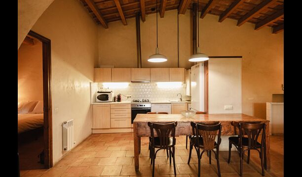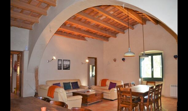 Lejligheden til 7 personer ligger på 1. etage i hovedbygningen. Man går igennem et fælles aktivitetsrum, før man når til La Sala. Her bliver man mødt af et stort opholdsrum, der fungere som en stue og er smukt indrettet i traditionel catalansk stil med moderne træk. I stuen finder man to flotte spiseborde samt tre sofaer, et sofabord og et fjernsyn, så der selvfølgelig også er god mulighed for at slappe af. Ud over disse siddearrangementer finder man diverse malerier og vægdekorationer, som giver en rar stemning. Det fuldt udstyrede køkken er forbundet med opholdsstuen og er inklusivt vaskemaskine og opvaskemaskine.