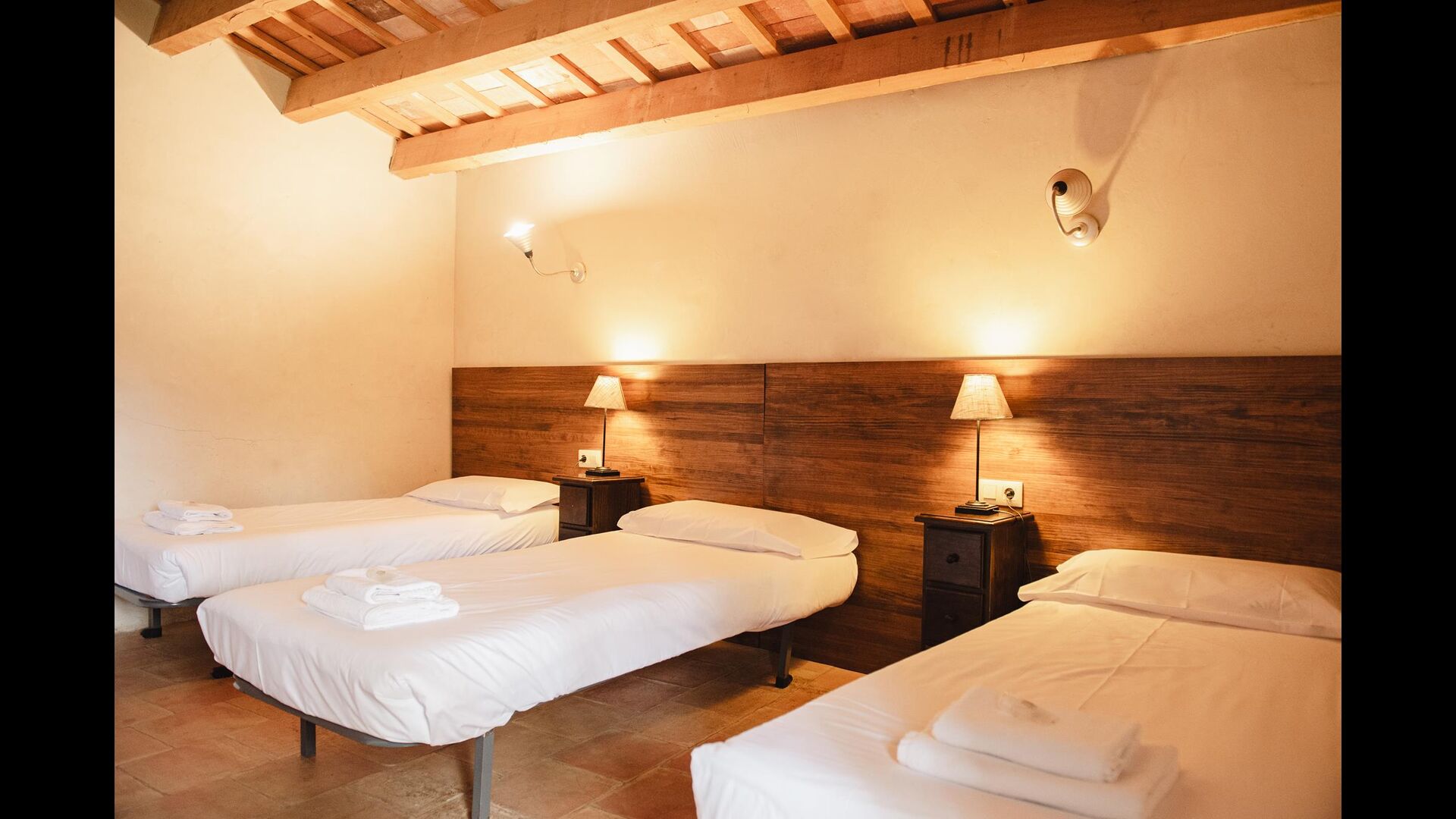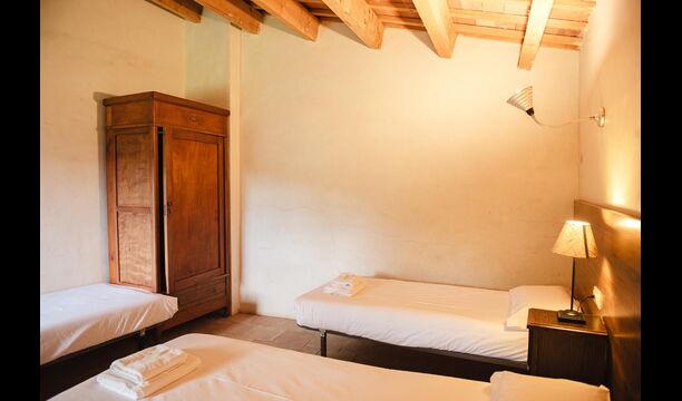La Sala har 2 dobbeltværelser med 2 store, dejlige dobbeltsenge og endvidere 1 værelse til 3 personer fordelt på 3 enkeltsenge. Værelserne fortsætter desuden den autentiske og yderst komfortable stil. Der er derudover to badeværelse, det ene med brusebad, det andet med et lækkert karbad, der lige tillader lidt ekstra afslapning.