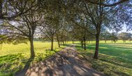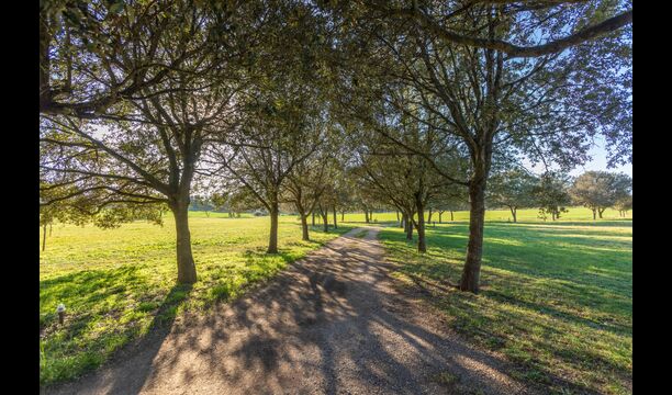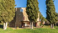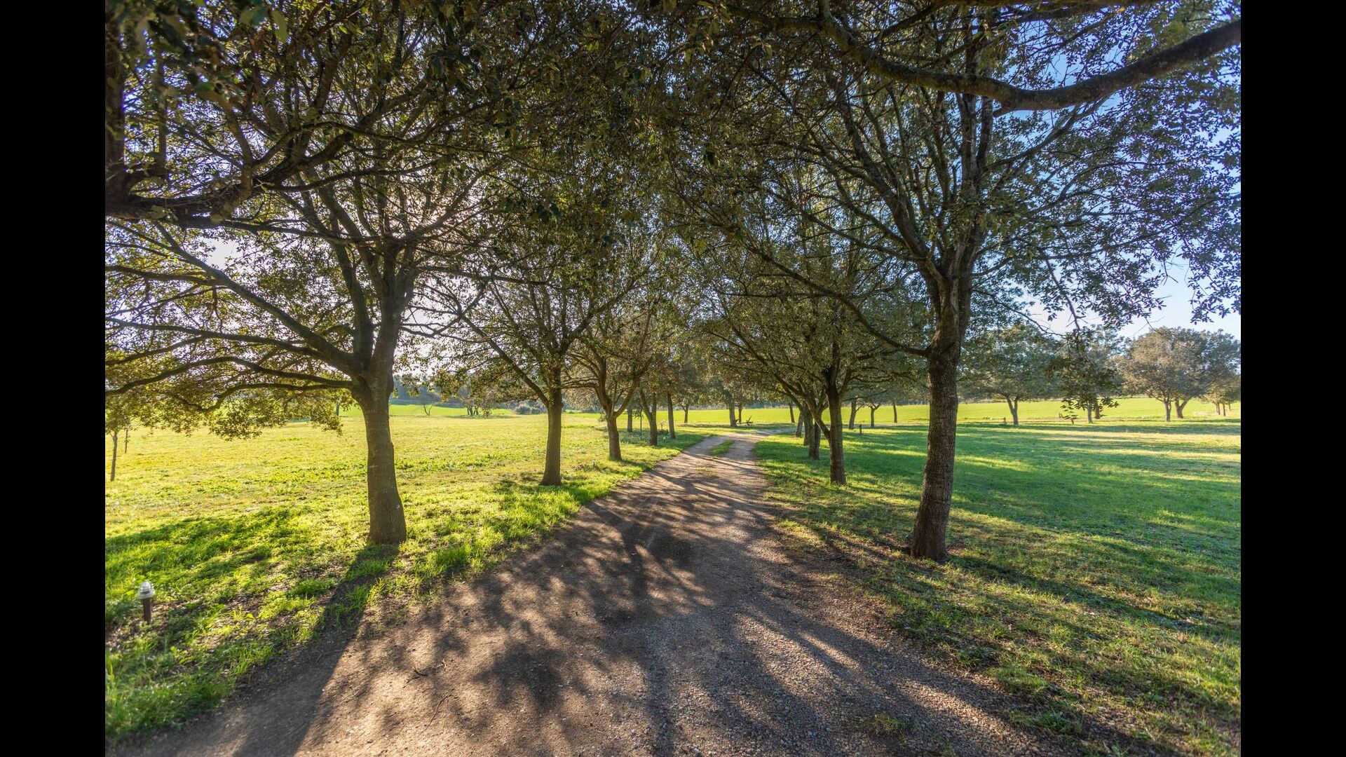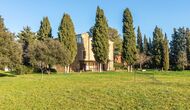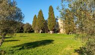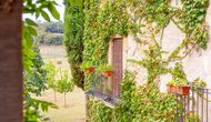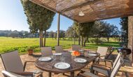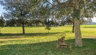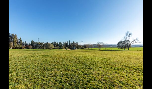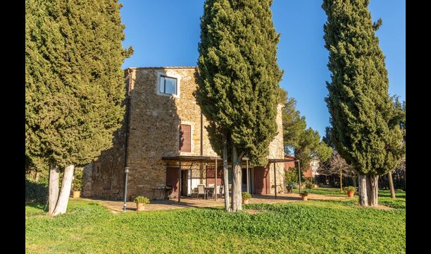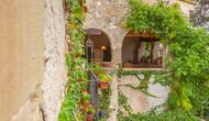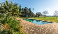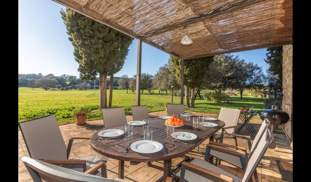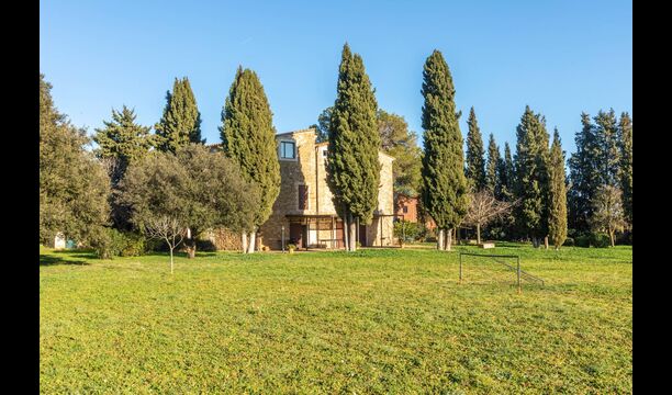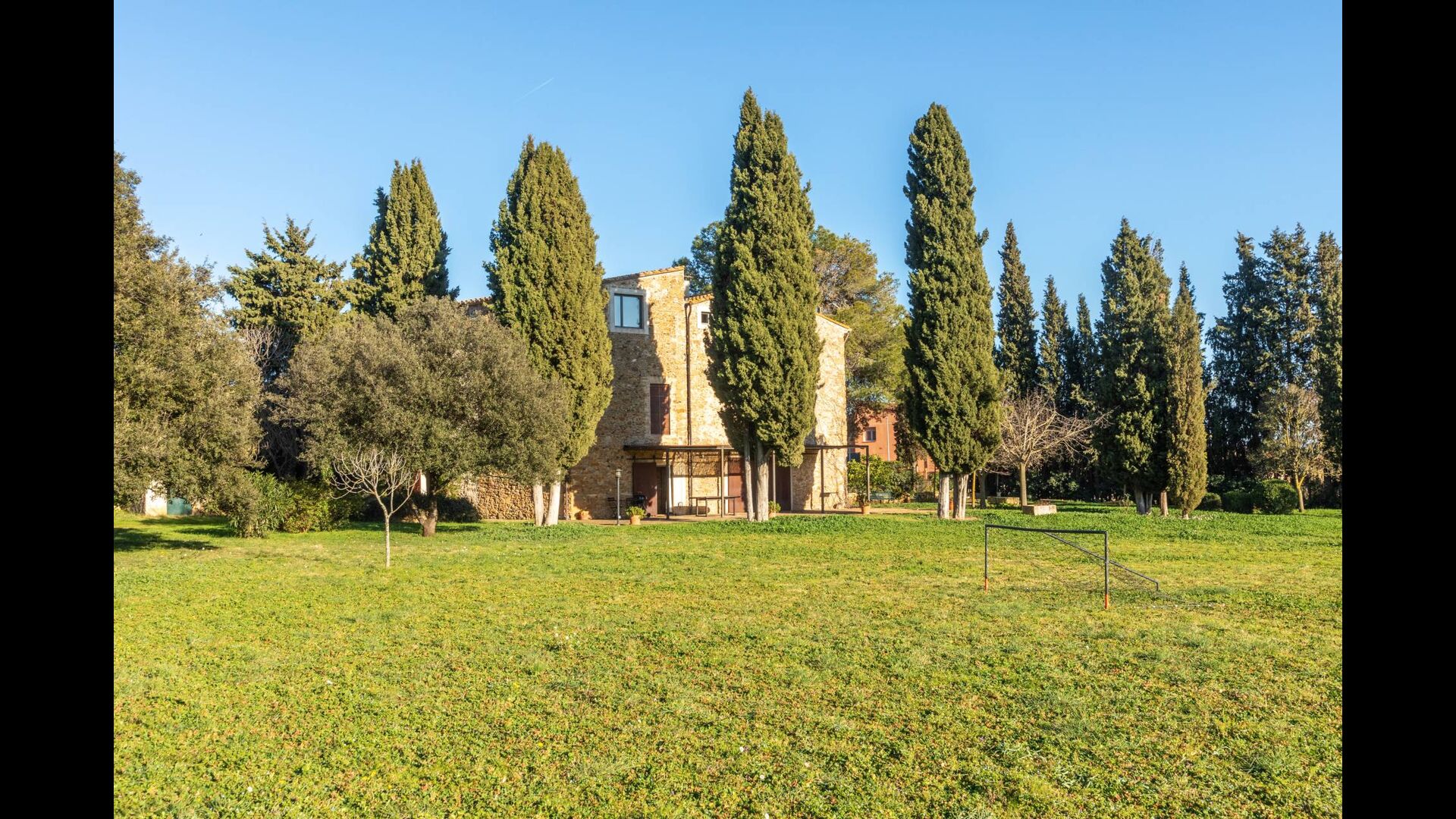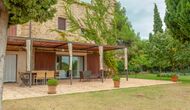 Ejendommen nås via en træallé, der fører frem til masiaen, omgivet af 30.000 m² privat grund og anlagte haver.