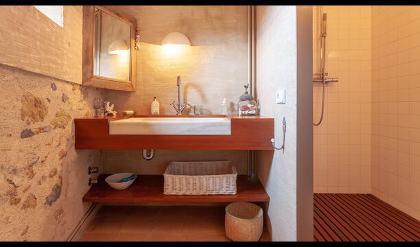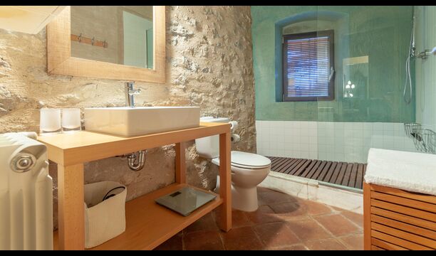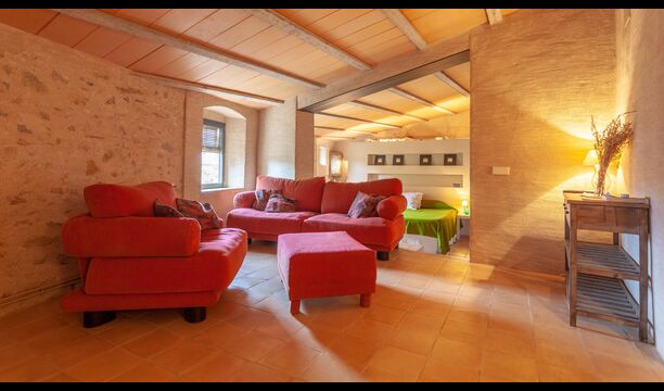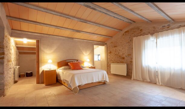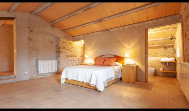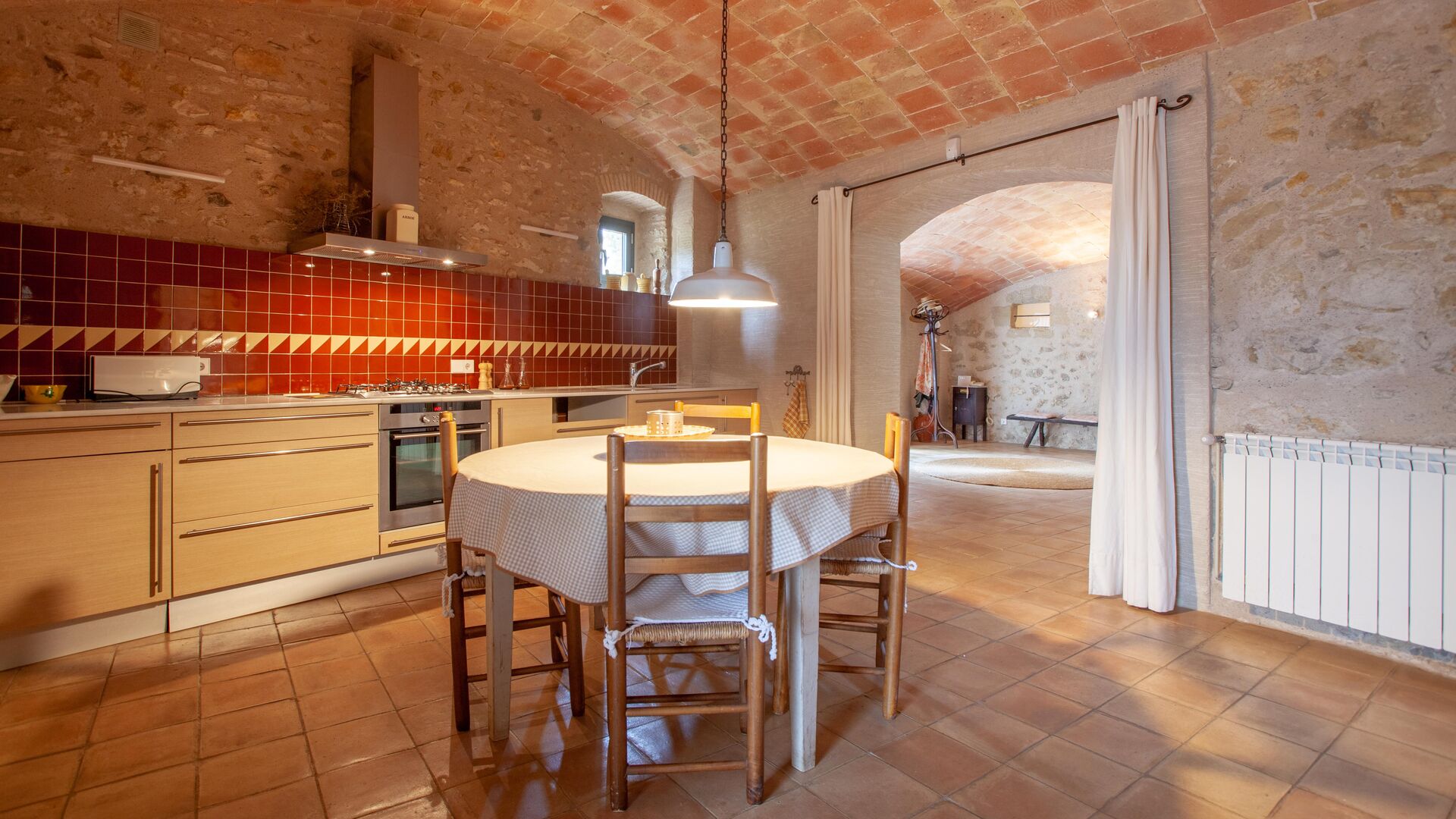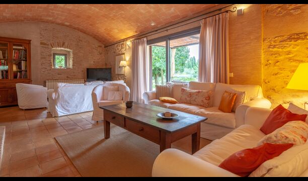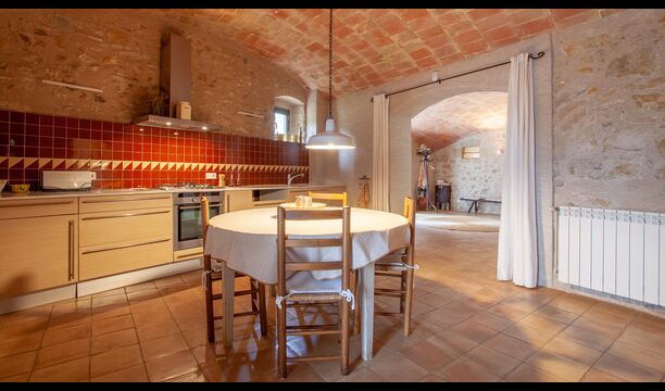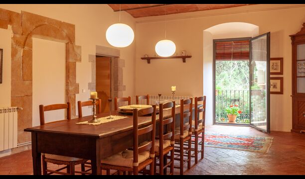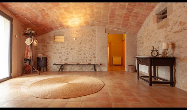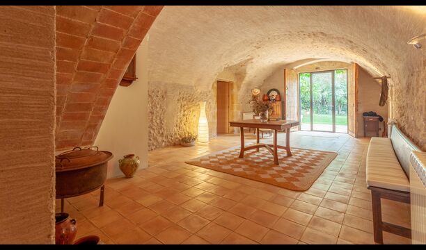 Ejendommen bevarer den autentiske karakter af traditionel landlig arkitektur – med elementer som den karakteristiske catalanske hvælving – samtidig med at den tilbyder alle moderne bekvemmeligheder på en stor og velholdt privat ejendom, der sikrer fuld ro og privatliv.
