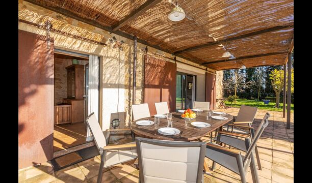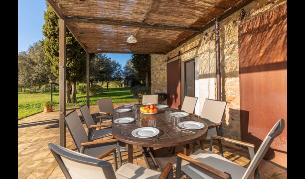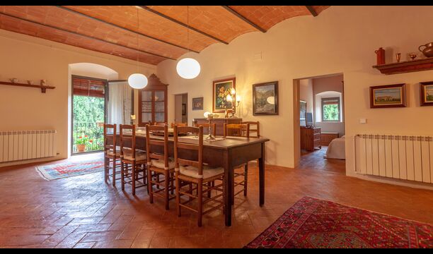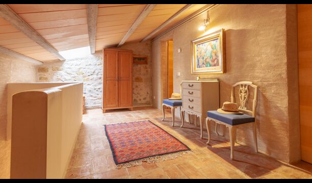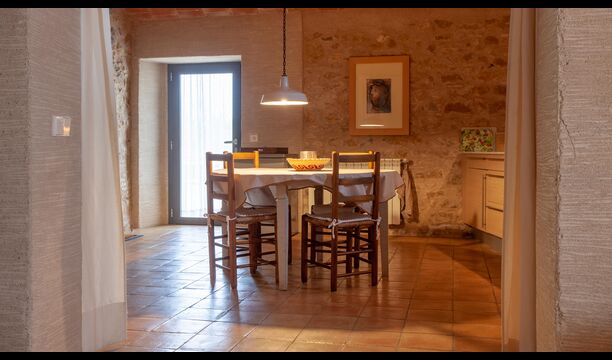 Stor åben opholds- og spiseafdeling, der forbinder alle værelser på denne etage. Det originale køkken fra masiaen er blevet renoveret og fuldt udstyret og har adgang til en overdækket terrasse med smuk udsigt over hele ejendommen.