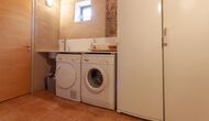 Entré med catalansk hvælving, rummelig stue med pejs og adgang til overdækket terrasse, fuldt udstyret separat køkken med adgang til terrasse, gæstetoilet, vaskerum med vaskemaskine, tørretumbler og tørrestativ samt et fleksibelt aktivitets- eller legerum med adgang til en møbleret udendørs veranda.