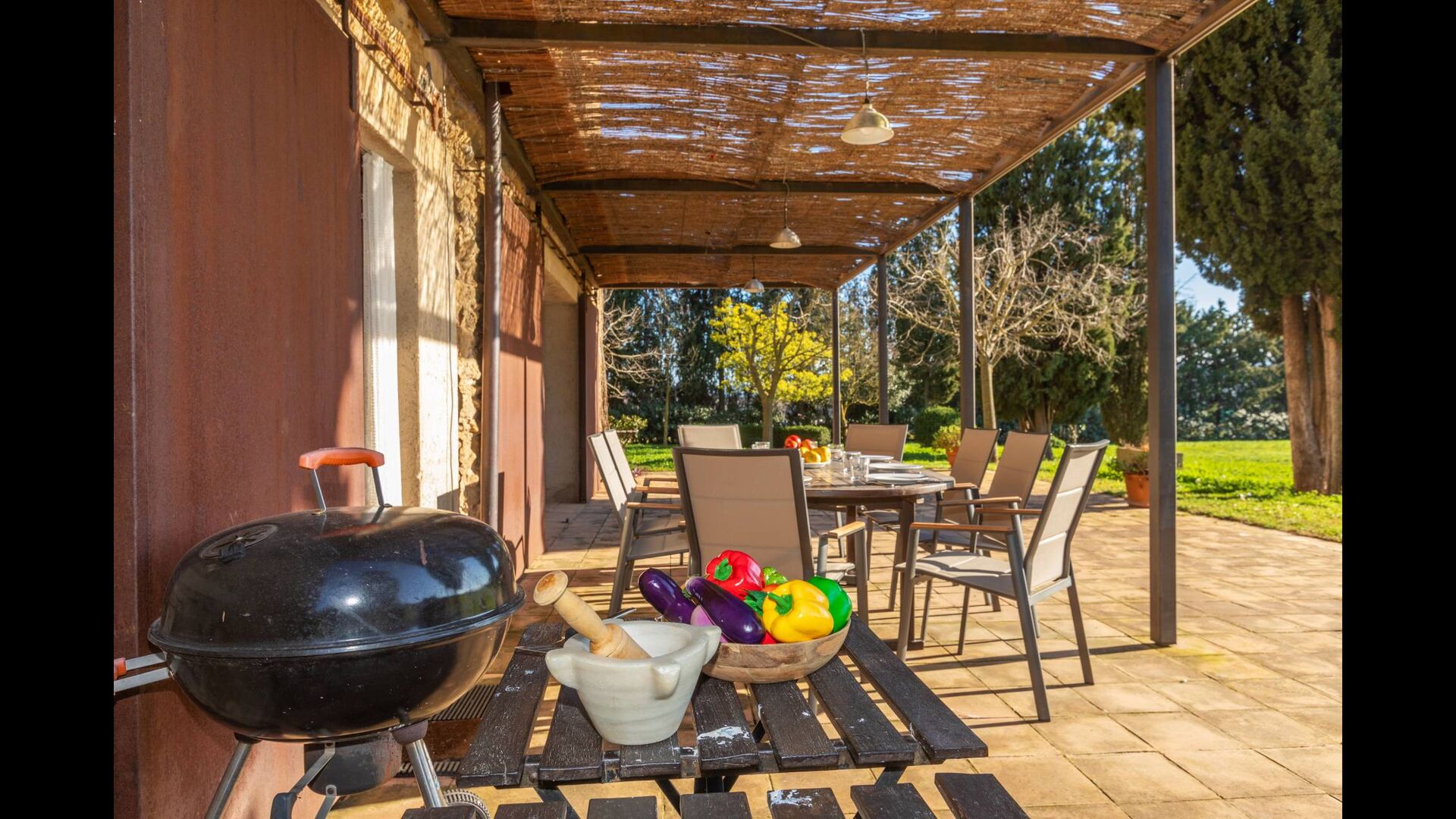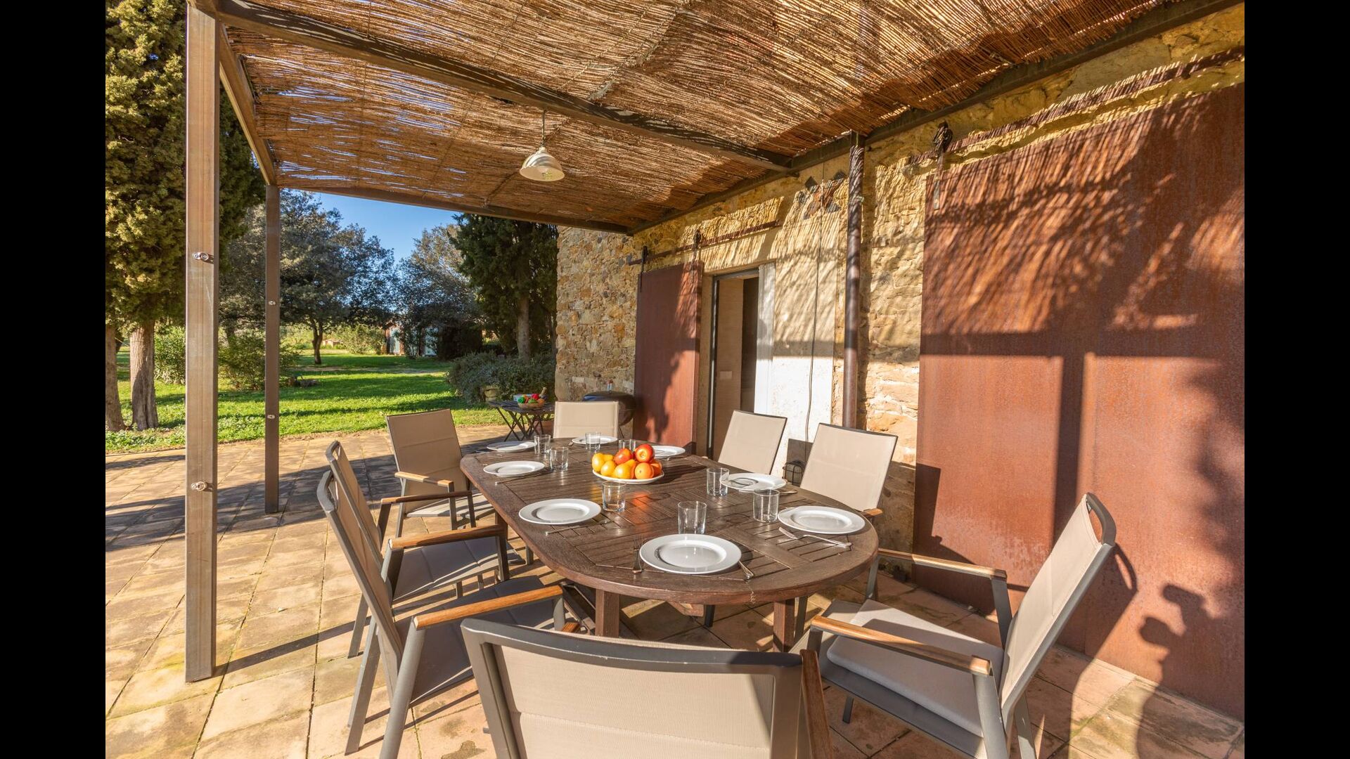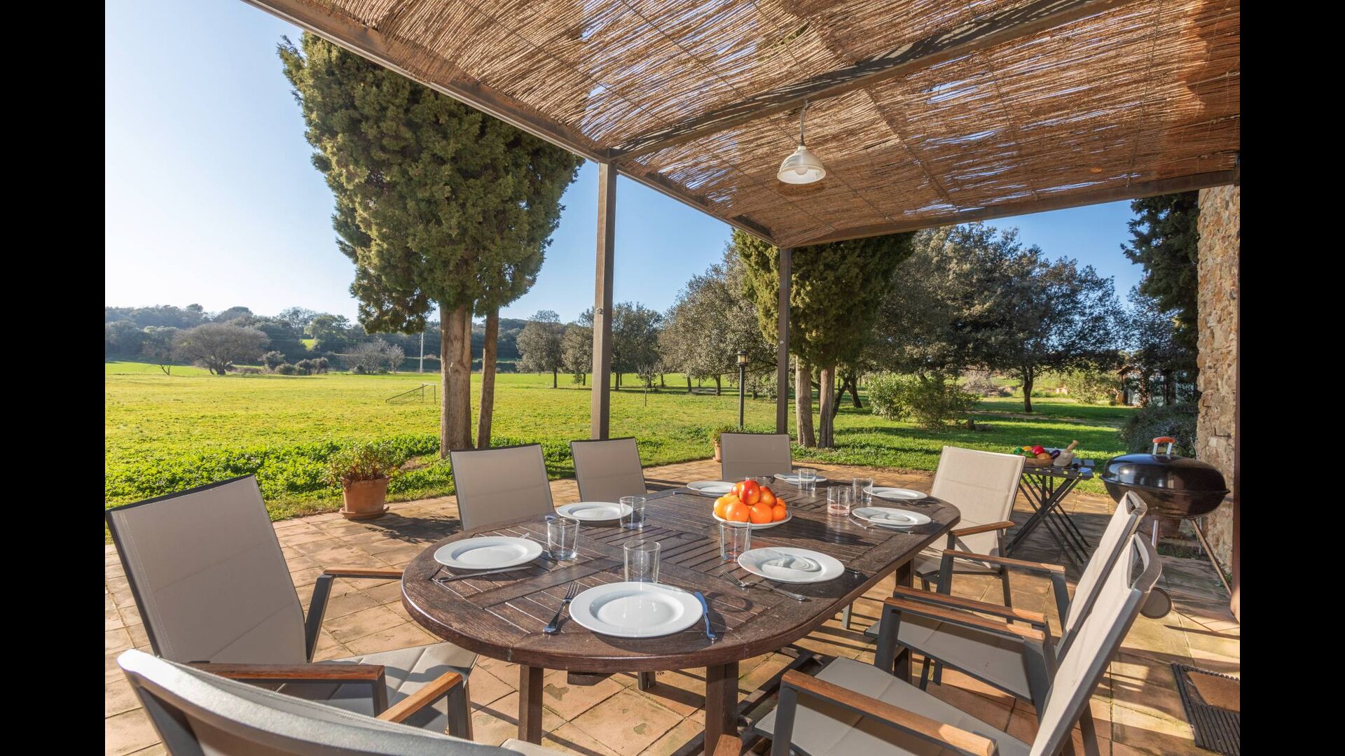 Udendørs finder man en privat swimmingpool samt flere verandaer og terrasser, der skaber perfekte rammer for afslapning, måltider i det fri og udsigt over det åbne landskab i Empordà.