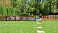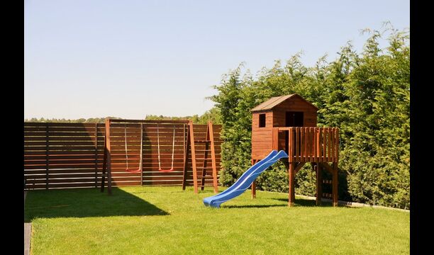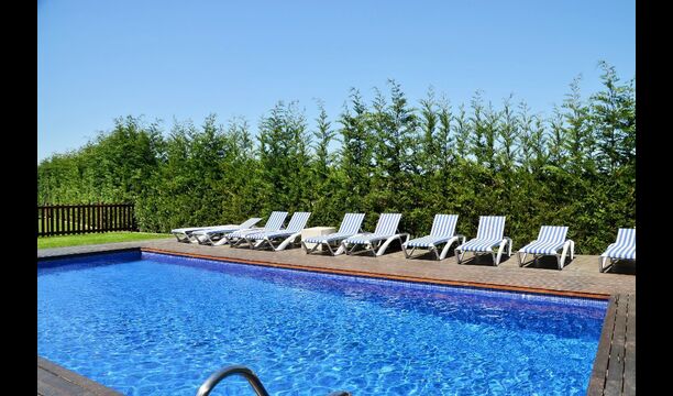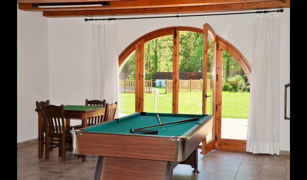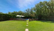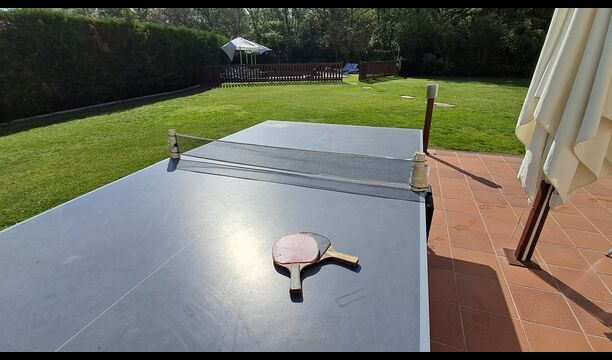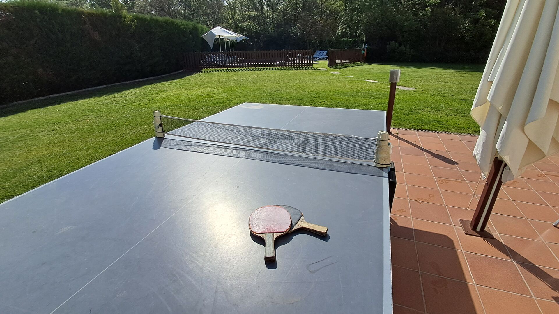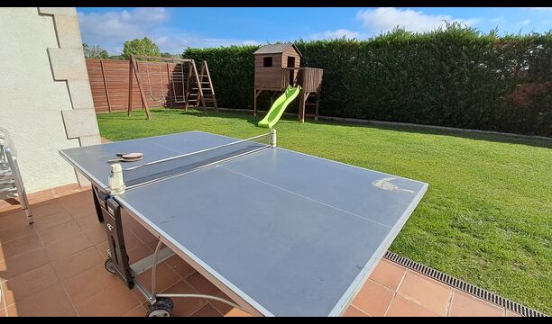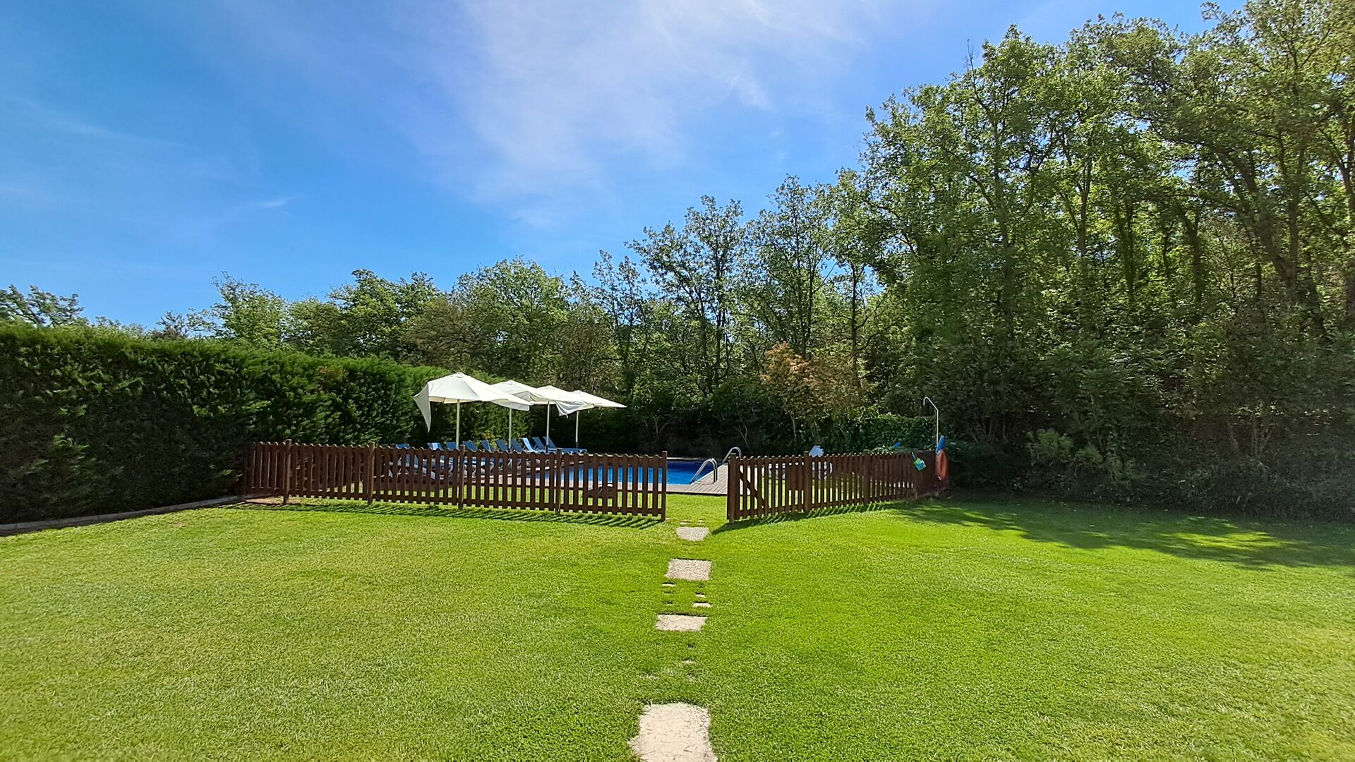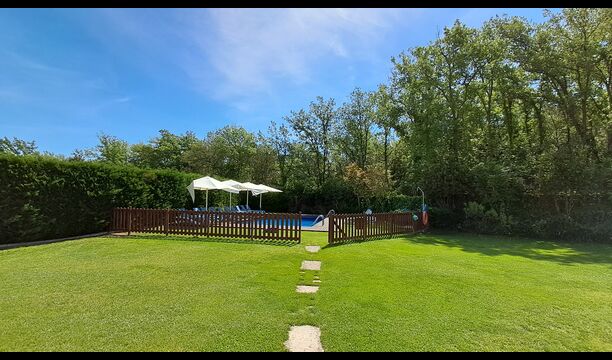 Husets har en stor, lækker have og en flot græsplæne, hvor der er mange muligheder for de yngre (og ældre) i feriegruppen. Der er først og fremmest en vidunderlig swimmingpool på 50m2, hvor alle kan slappe af og køle ned. Her er der også liggestole. Dette område er indhegnet af sikkerhedshensyn og kan være en lettelse, hvis man har helt små børn med på ferie. Derudover er der bordtennis, fodboldmål og legeplads.