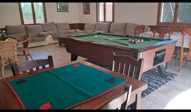 The equipment and kitchen equipment met our expectations. We took full advantage of the covered terrace where we took all our meals. The barbecue, the gas stove to make a big dish were very useful to feed the whole group. We were almost twenty and we never felt cramped. The air conditioning of the rooms was greatly appreciated during the hot weather. The owner has always responded very quickly to our questions and has repairs carried out with diligence. The spacious swimming pool, very well maintained, has delighted young and old alike. We have adored! We will come back with pleasure!