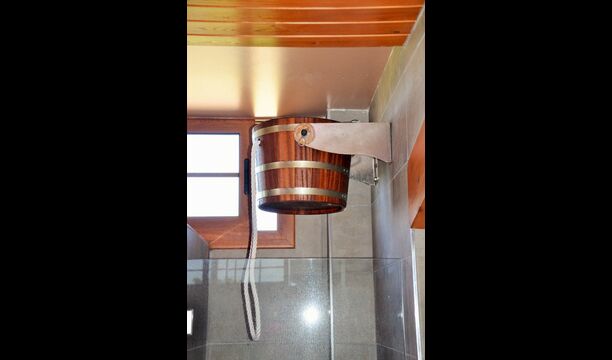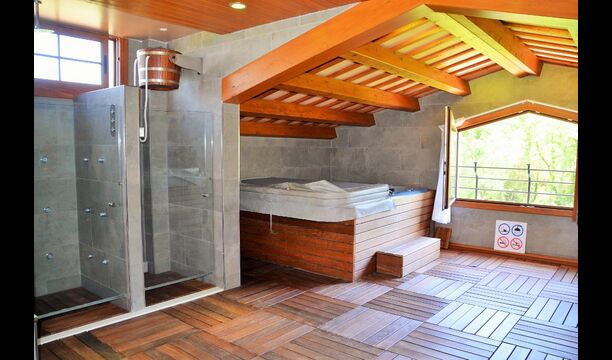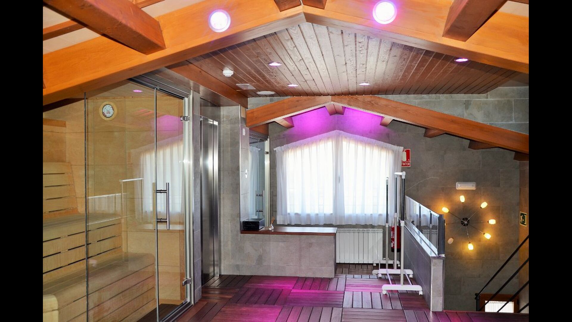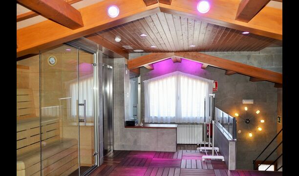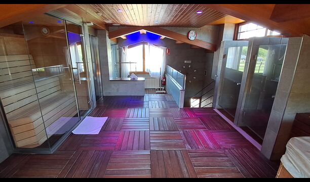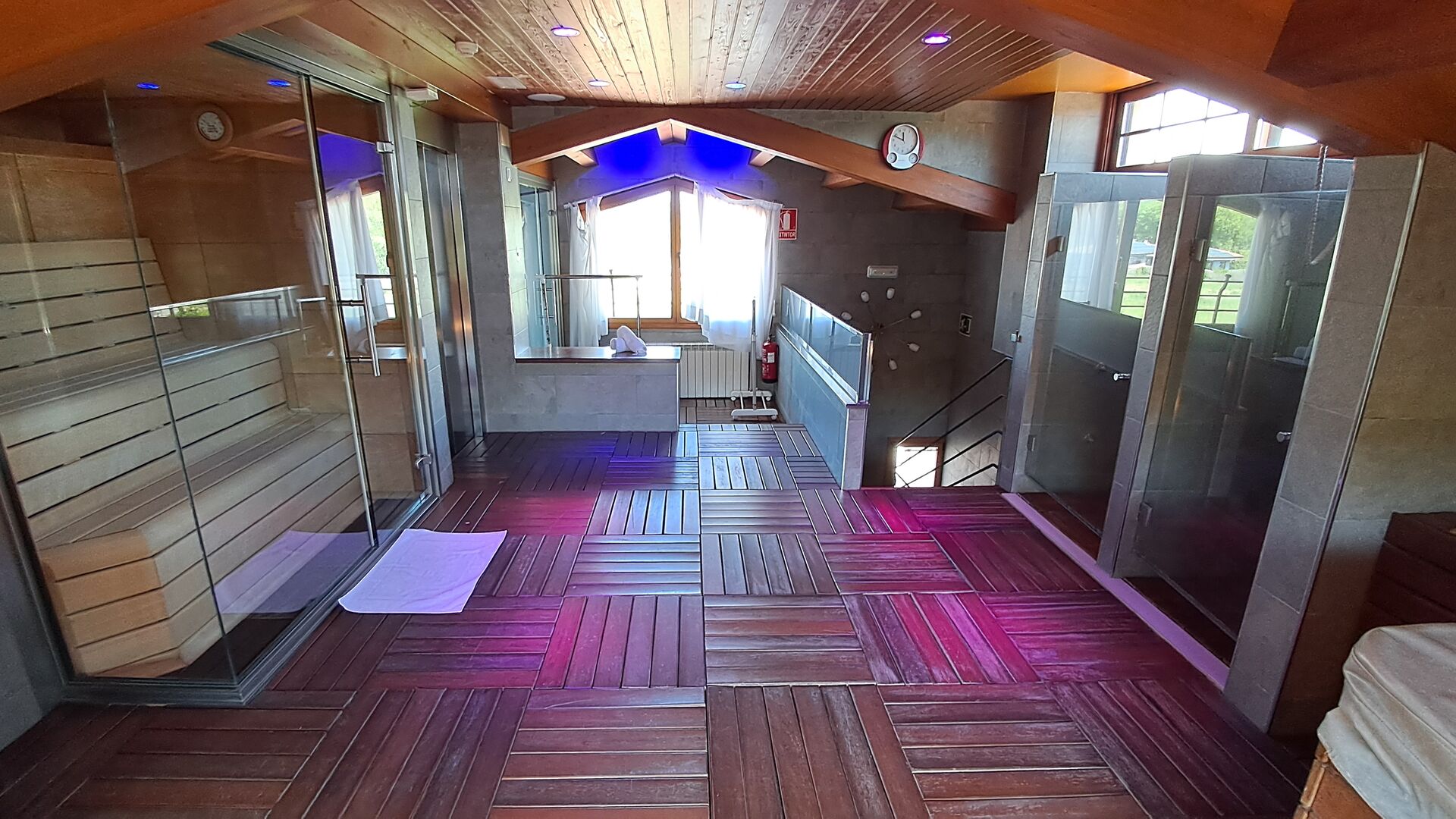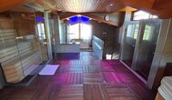 På husets anden etage har ejerne bygget et gennemført wellnessområde. Hvis man er kommet for at slappe af, så har man i hvert fald fundet stedet. Her er der to spapools, koldtvandsbad, hydromassage-brusebade og to forskellige saunaer – en med eukalyptusaroma og en normal. Elevatoren kører hele vejen herop, og med masser af forskelligt, farvet lys og mulighed for at afspille musik, er der lagt op til en speciel oplevelse.