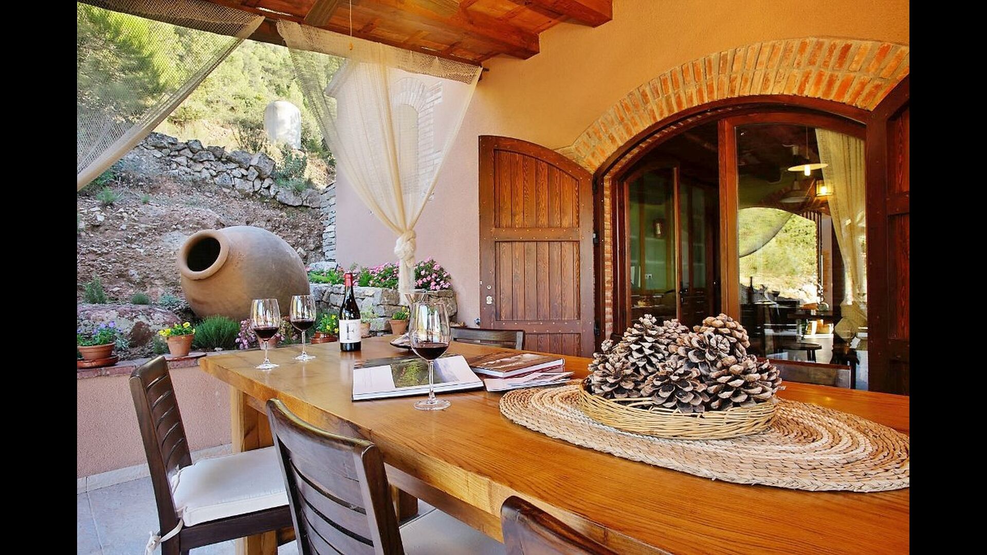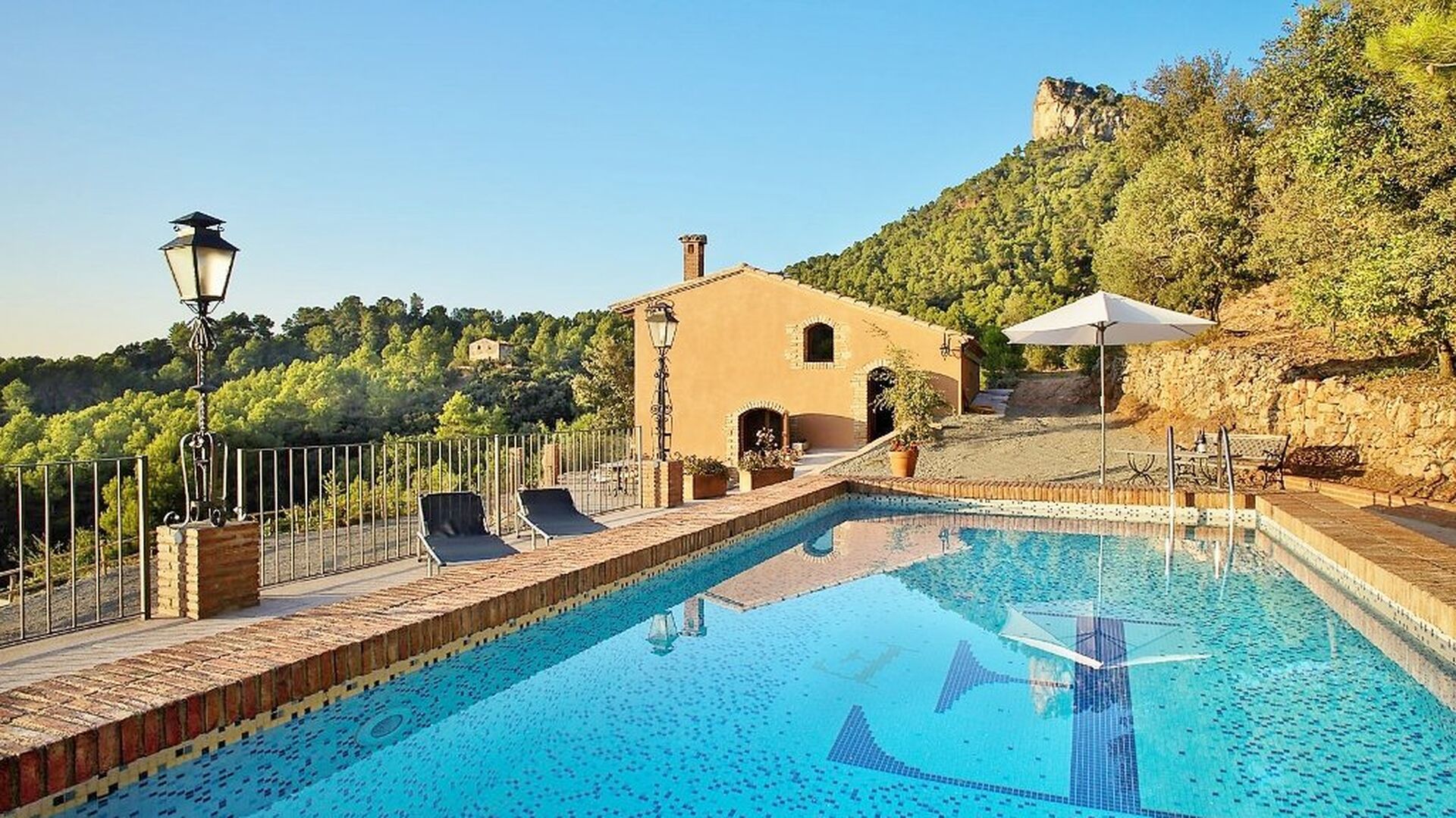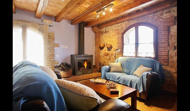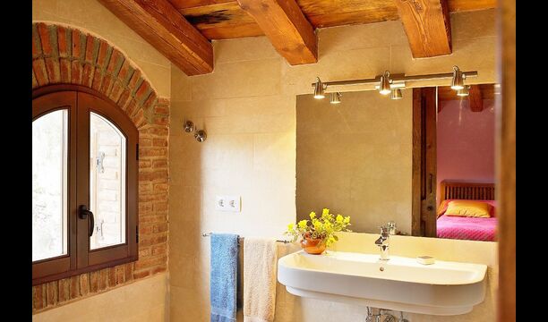Can de Fontana rummer både komfort og autenticitet. Det komfortable kommer til udtryk i faciliteterne: Først og fremmest er der en 32 m2 stor swimmingpool med en vidunderlig udsigt over dalen. Her er det oplagt at køle af eller lege i vandet, mens solen varmer landskabet grundigt op. Der er også liggestole ved poolområdet – disse kan placeres under eller uden for parasollen alt efter hvor meget sol og varme, i ønsker. Dernæst ligger der mellem poolområdet og huset en terrasse med et rundt spisebord, hvor aftensmaden og den lune aftensol kan nydes med et glas vin – som i har mulighed for at købe af husejerne, der dyrker deres egen vin, og som de sælger til 3-stjernede Michelin-restauranter i Barcelona.