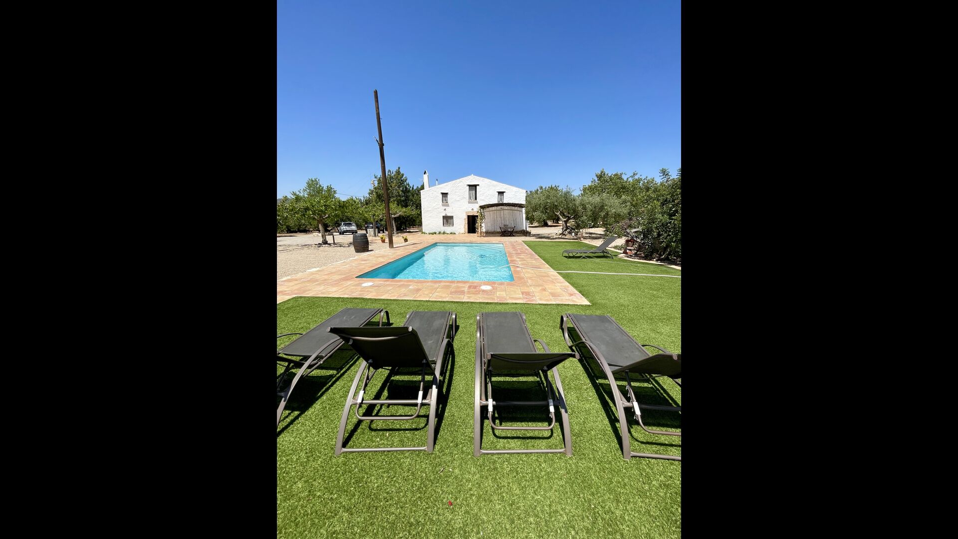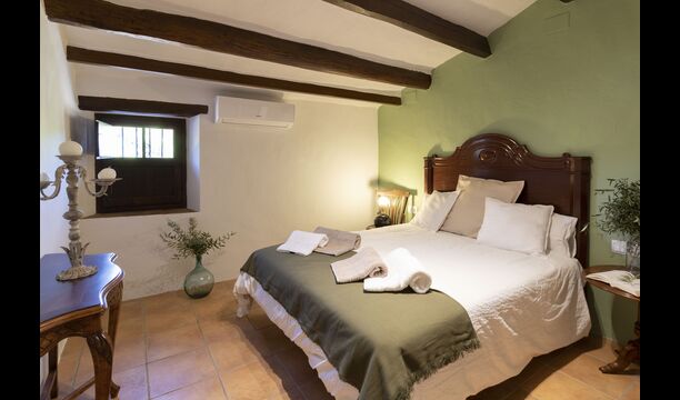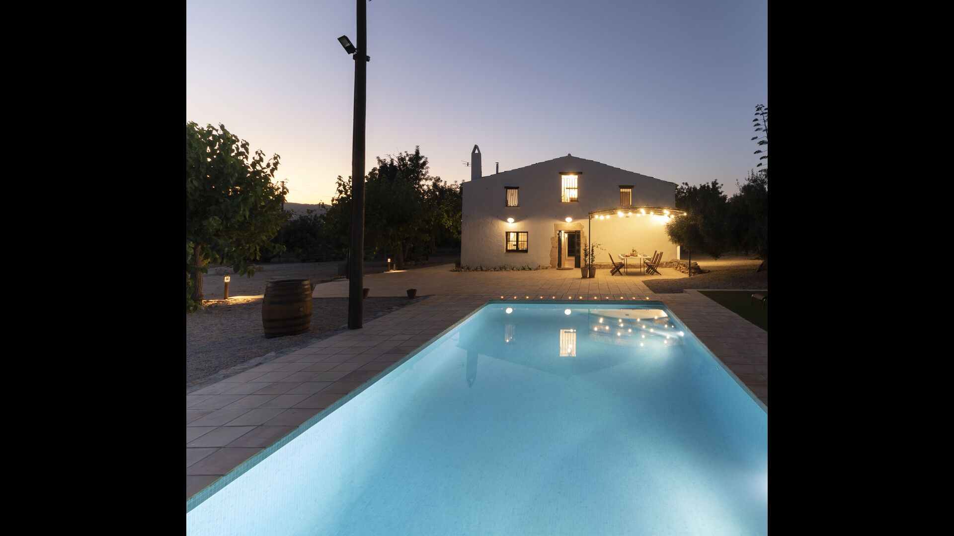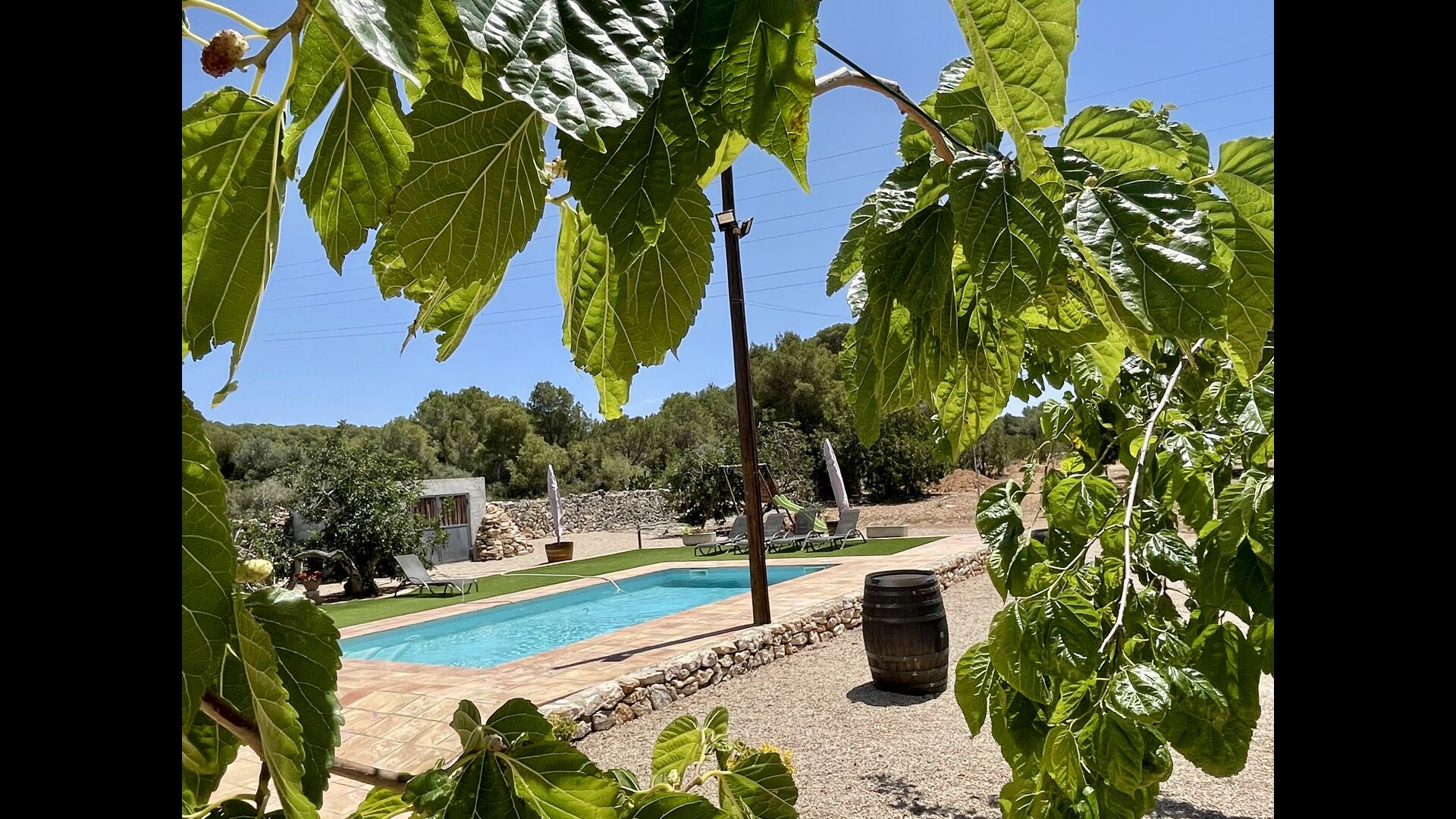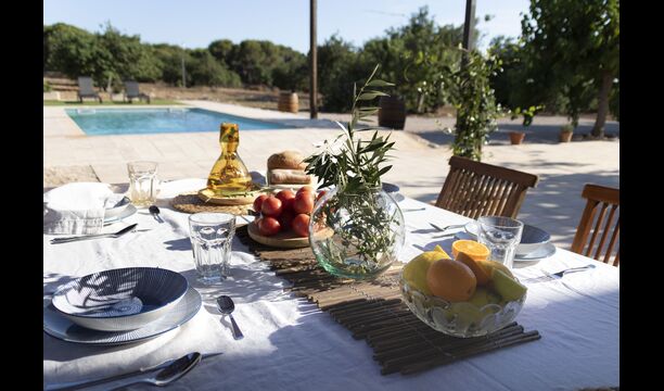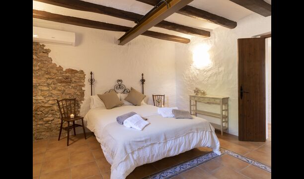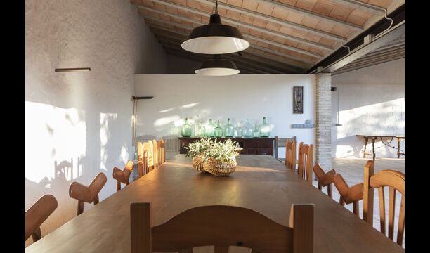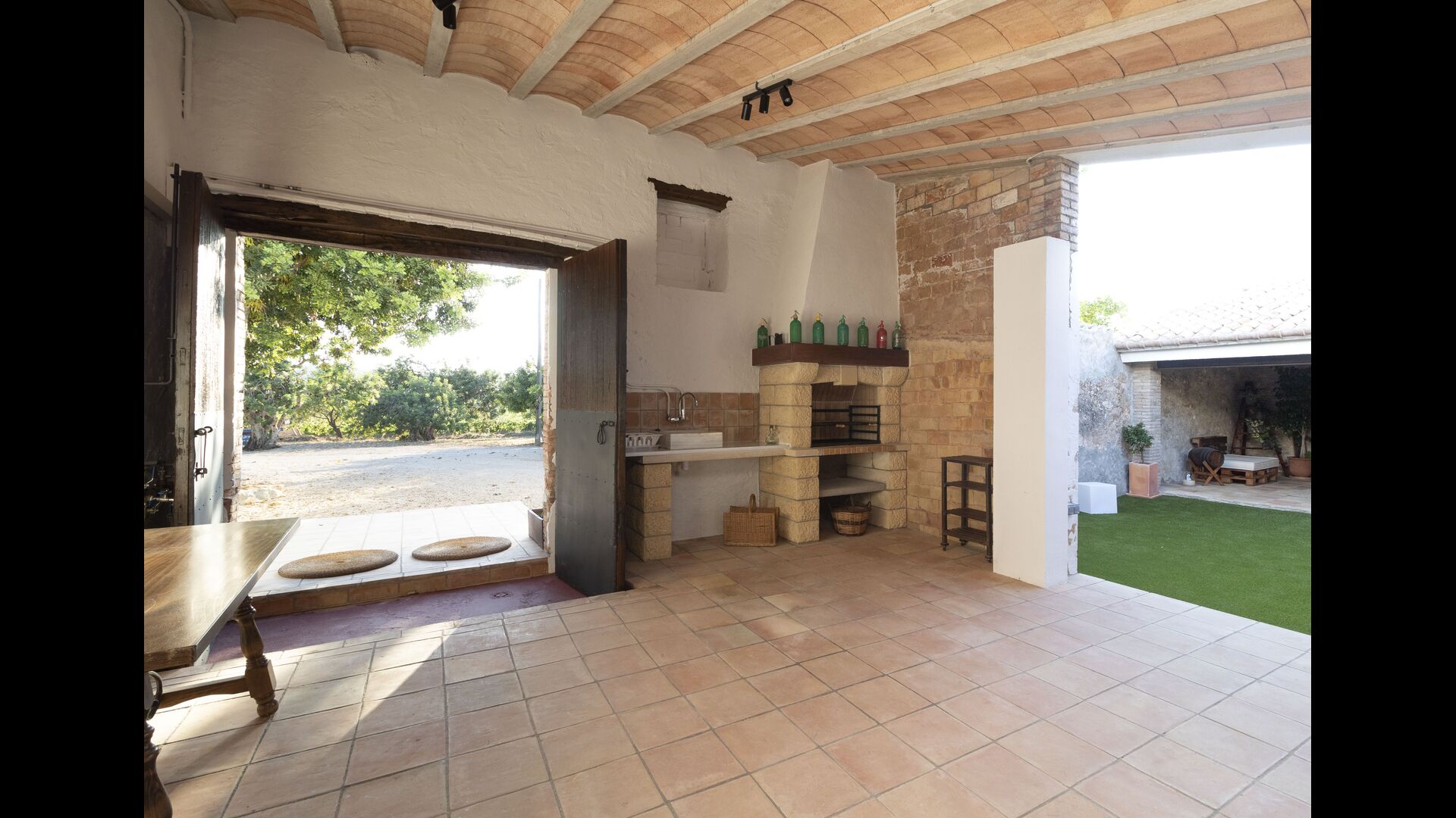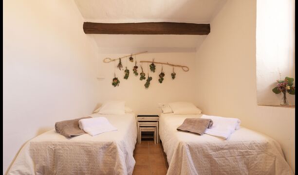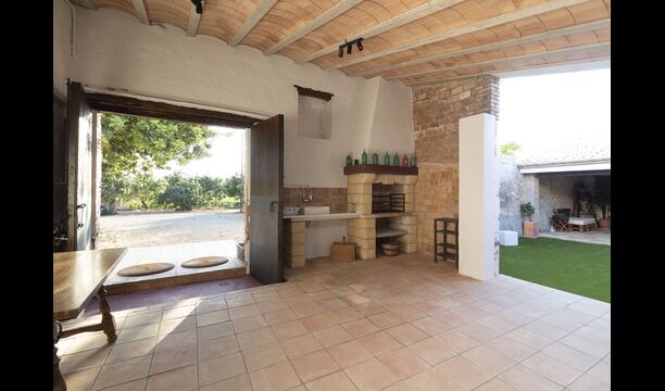 Ved siden af hovedindgangen har huset også en delvist overdækket udendørsterrasse, perfekt til morgenmad og aftensmad ved det blidt klukkende vand i poolen, som i sig selv er ret stor og kommer med nogle liggestole. Uanset om du køler ned i poolen, slapper af i liggestolene eller nyder noget tapas på den udendørsterrassen, vil du være i stand til at se ud på det vidunderlige Catalanske landskab . En del af grunden til, at Casa Moma er så vidunderligt isoleret, er de 6 hektarer af skov og johannesbrødtræer og 3 hektarer af vinmarker og olivenlunde som omgiver ejendommen.