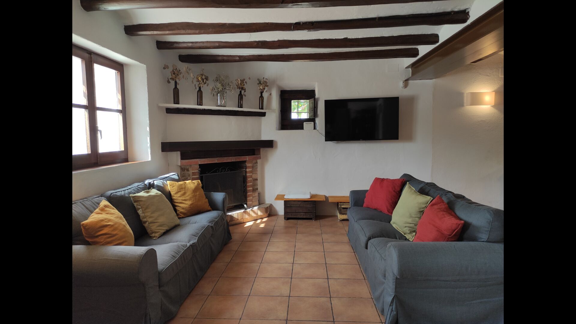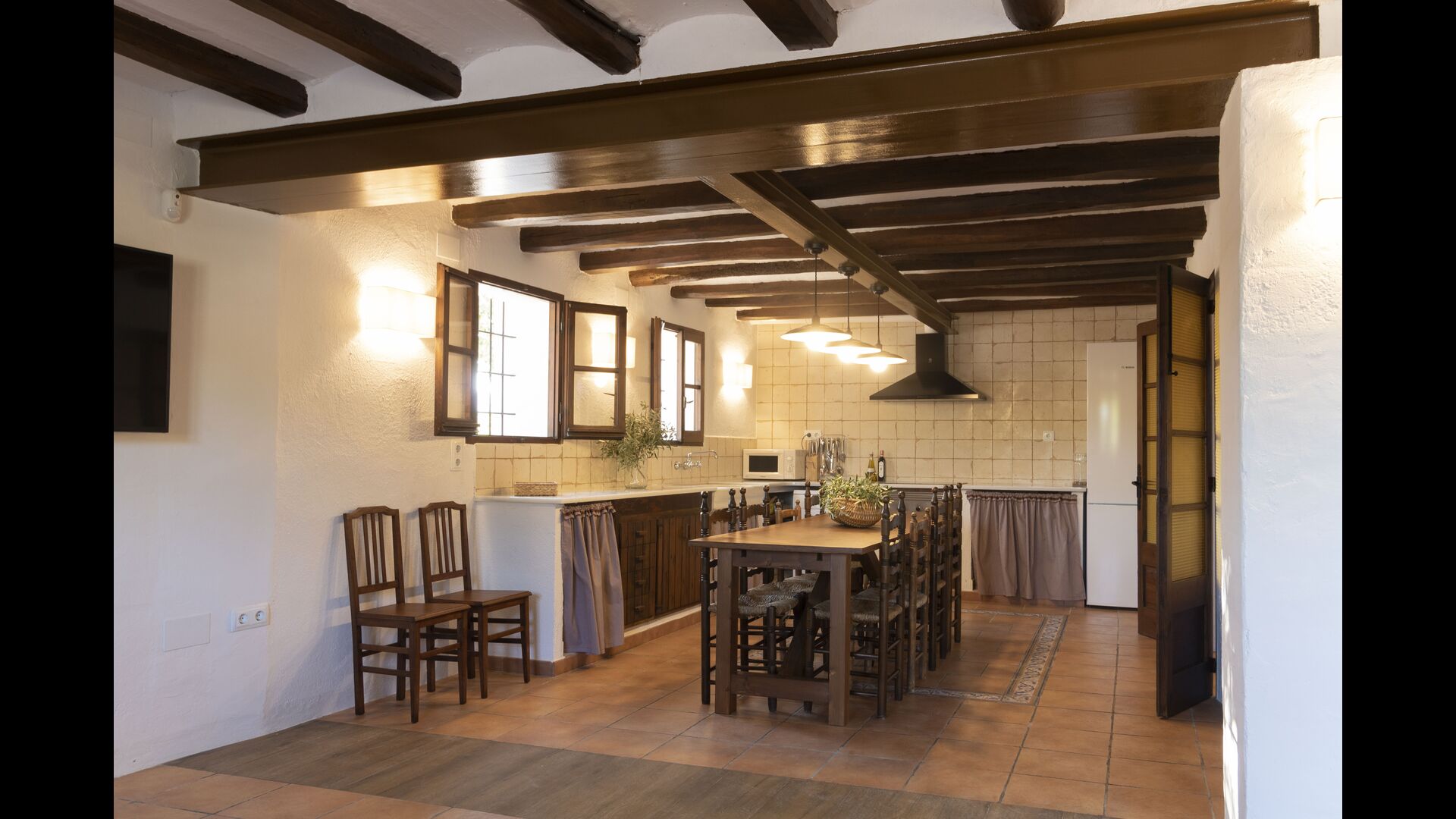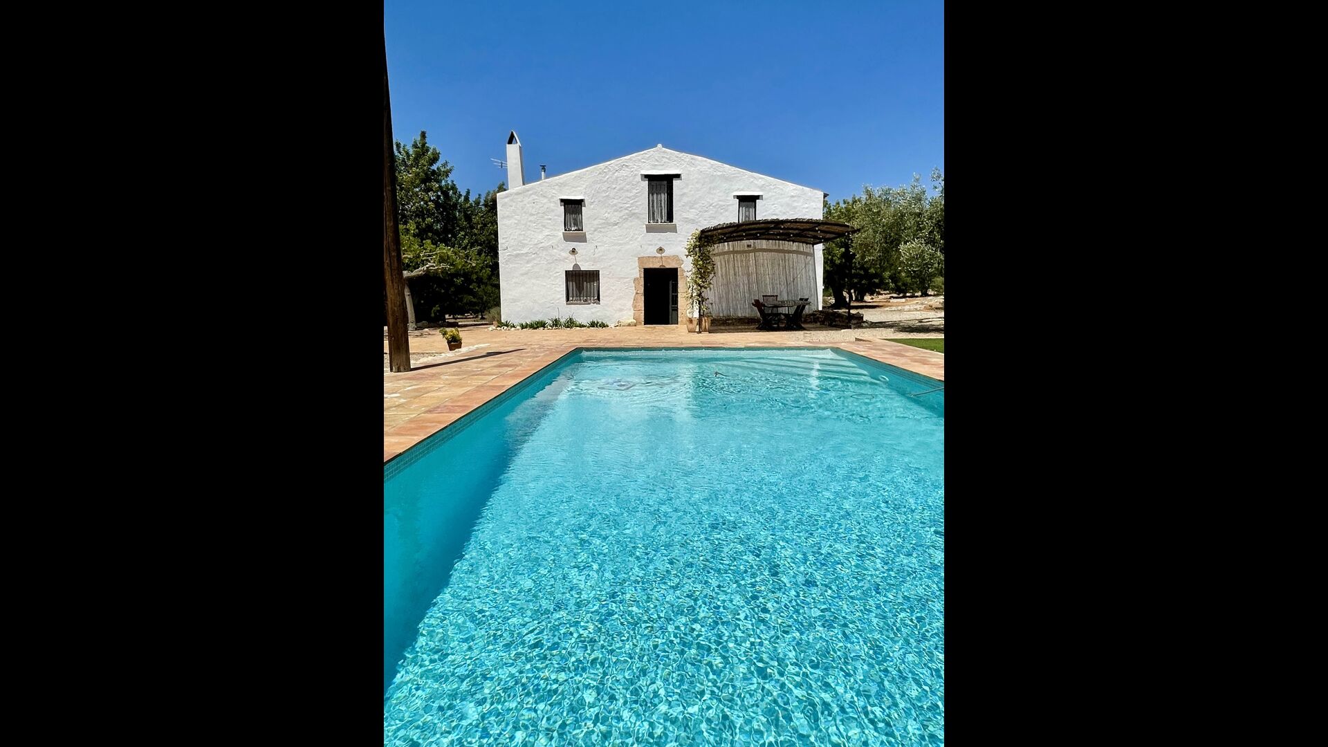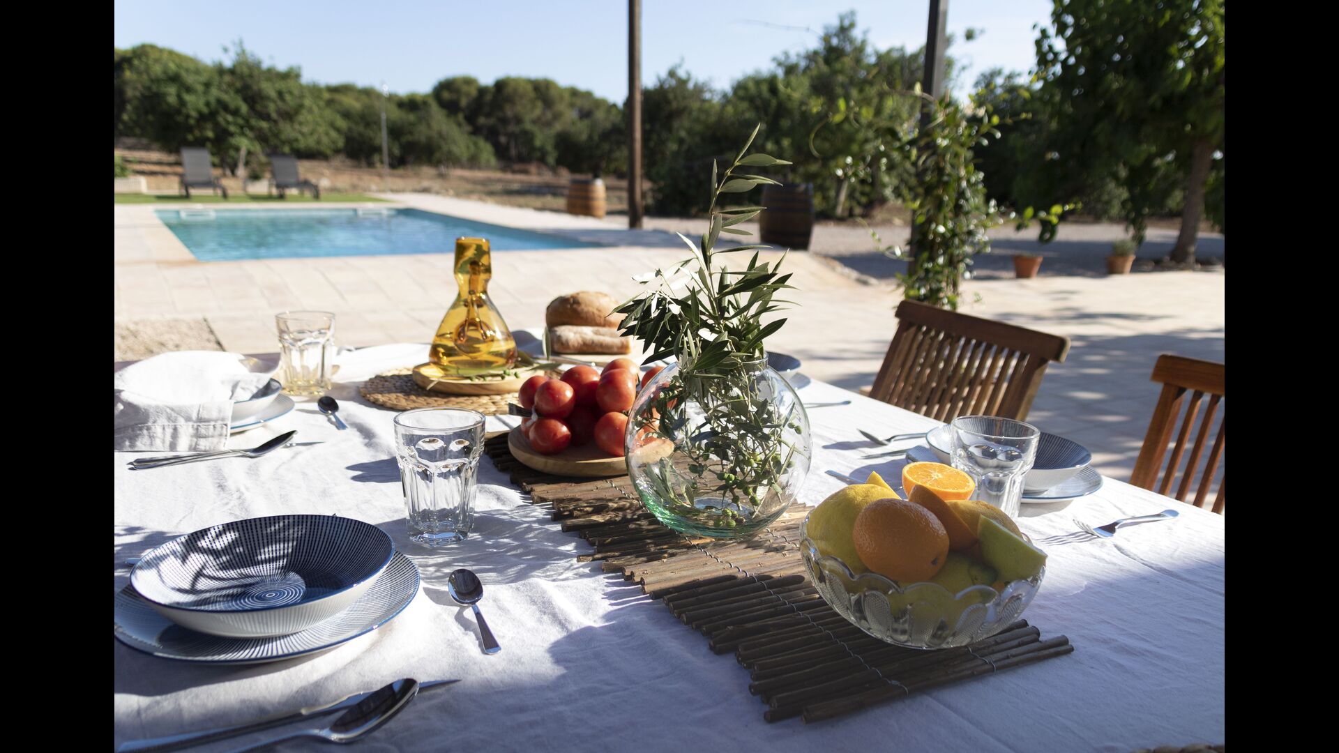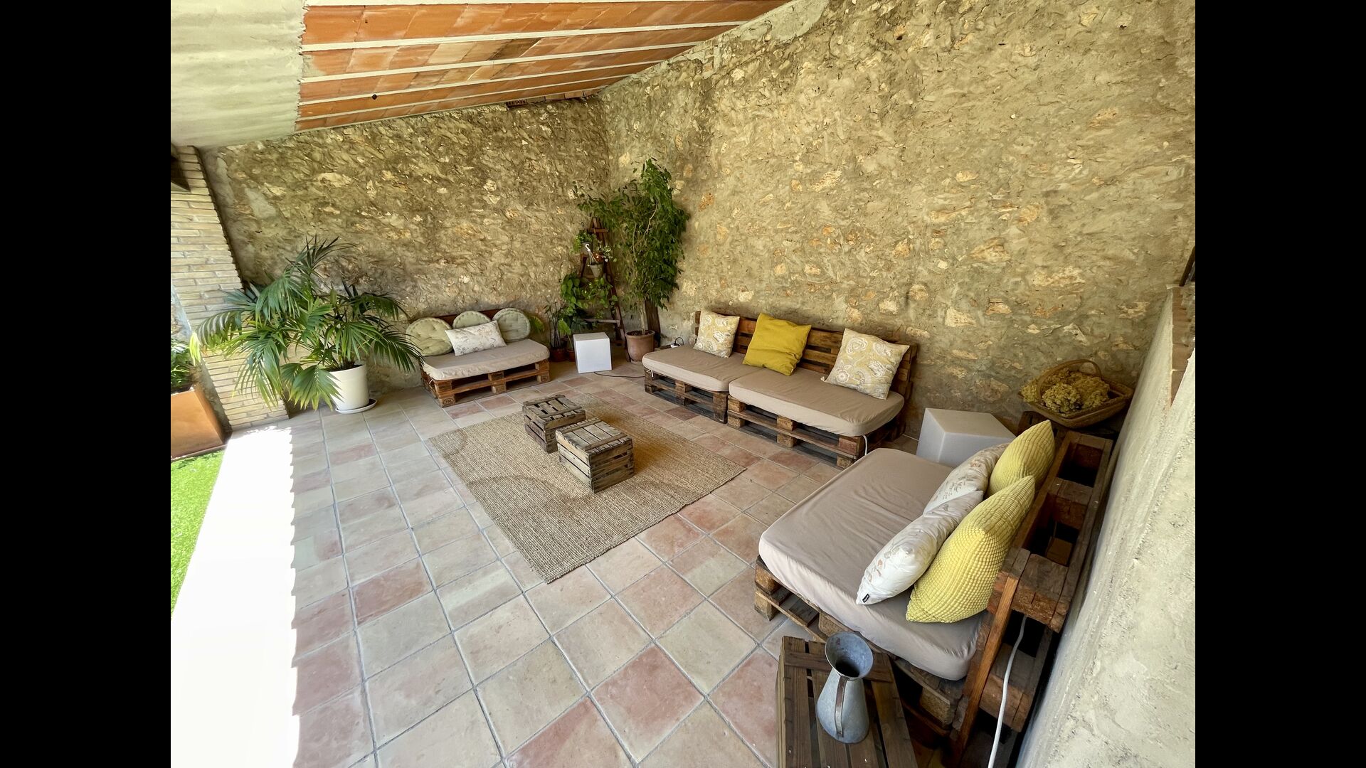 Ved siden af hovedindgangen har huset også en delvist overdækket udendørsterrasse, perfekt til morgenmad og aftensmad ved det blidt klukkende vand i poolen, som i sig selv er ret stor og kommer med nogle liggestole. Uanset om du køler ned i poolen, slapper af i liggestolene eller nyder noget tapas på den udendørsterrassen, vil du være i stand til at se ud på det vidunderlige Catalanske landskab . En del af grunden til, at Casa Moma er så vidunderligt isoleret, er de 6 hektarer af skov og johannesbrødtræer og 3 hektarer af vinmarker og olivenlunde som omgiver ejendommen.