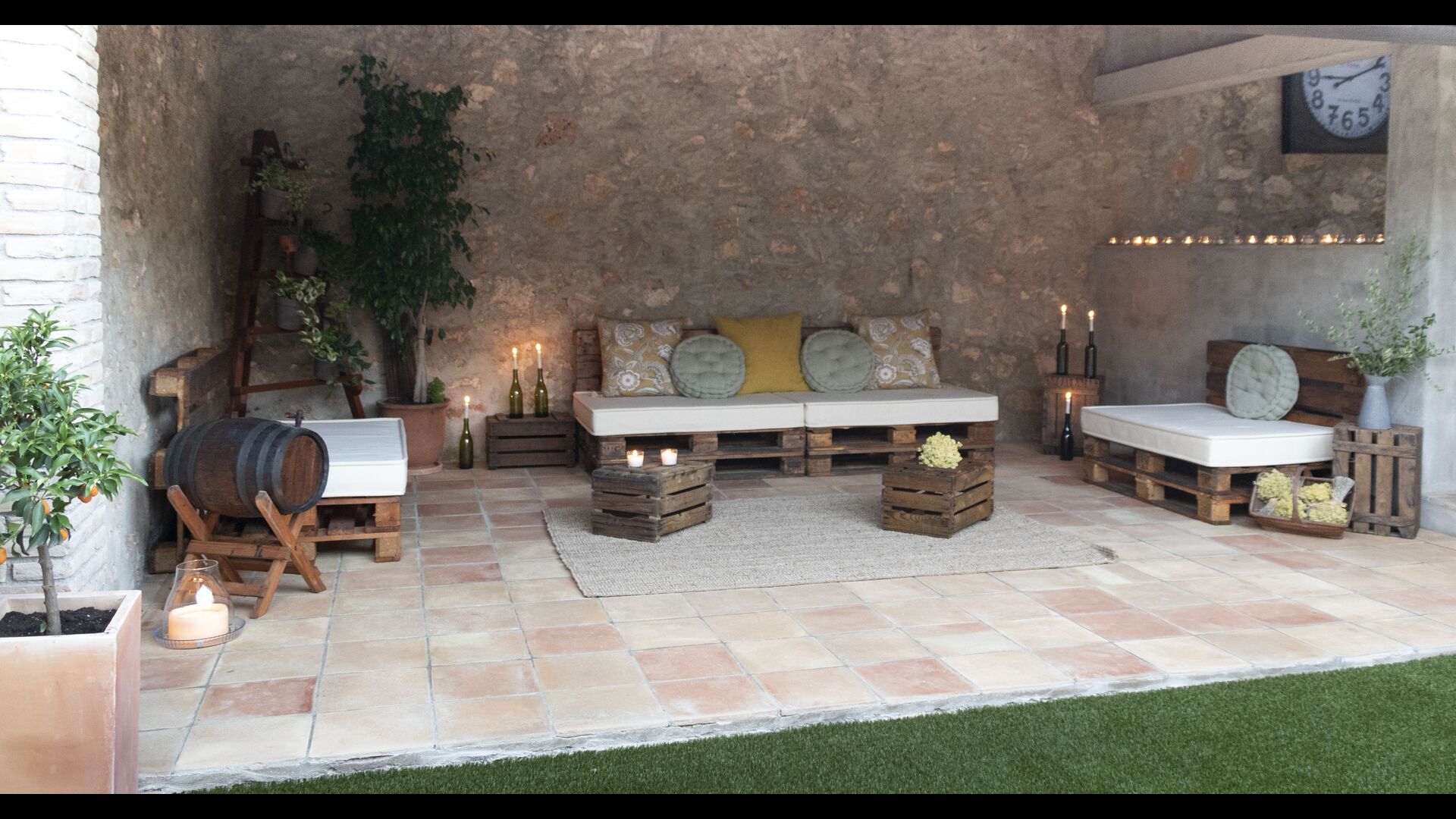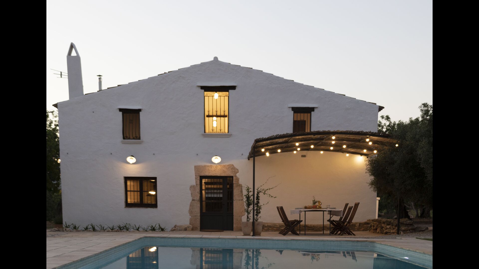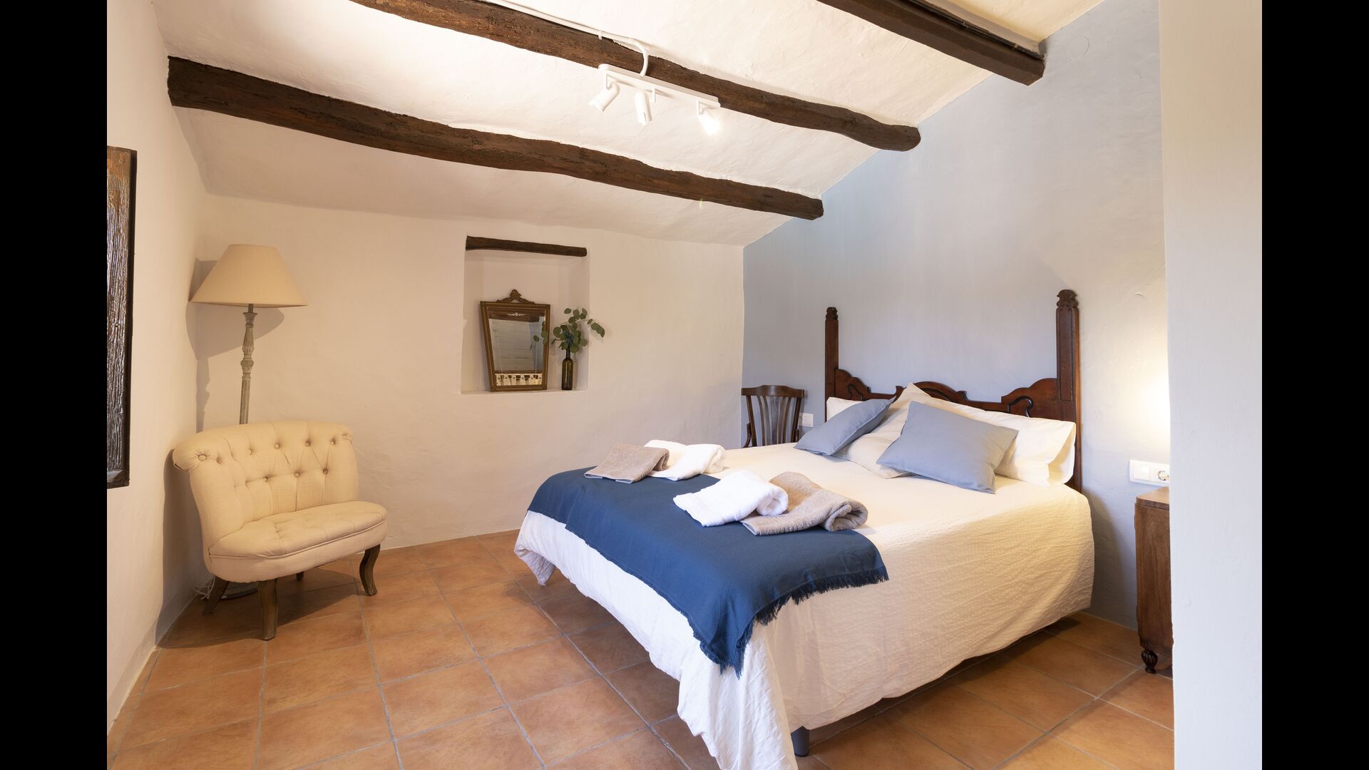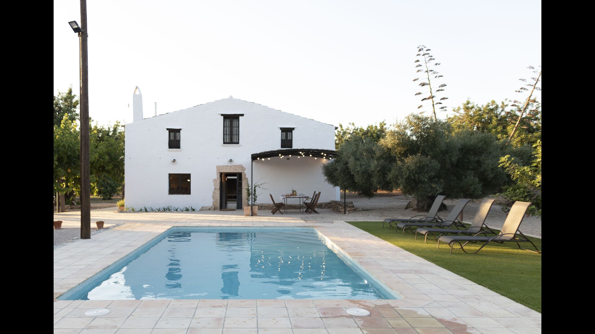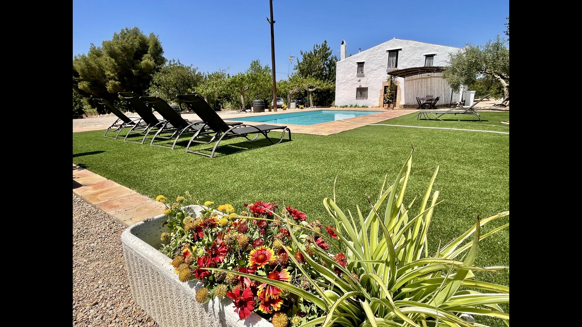 Ved siden af hovedindgangen har huset også en delvist overdækket udendørsterrasse, perfekt til morgenmad og aftensmad ved det blidt klukkende vand i poolen, som i sig selv er ret stor og kommer med nogle liggestole. Uanset om du køler ned i poolen, slapper af i liggestolene eller nyder noget tapas på den udendørsterrassen, vil du være i stand til at se ud på det vidunderlige Catalanske landskab . En del af grunden til, at Casa Moma er så vidunderligt isoleret, er de 6 hektarer af skov og johannesbrødtræer og 3 hektarer af vinmarker og olivenlunde som omgiver ejendommen.