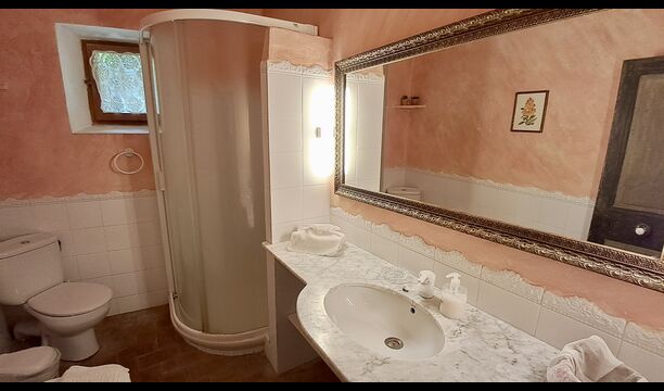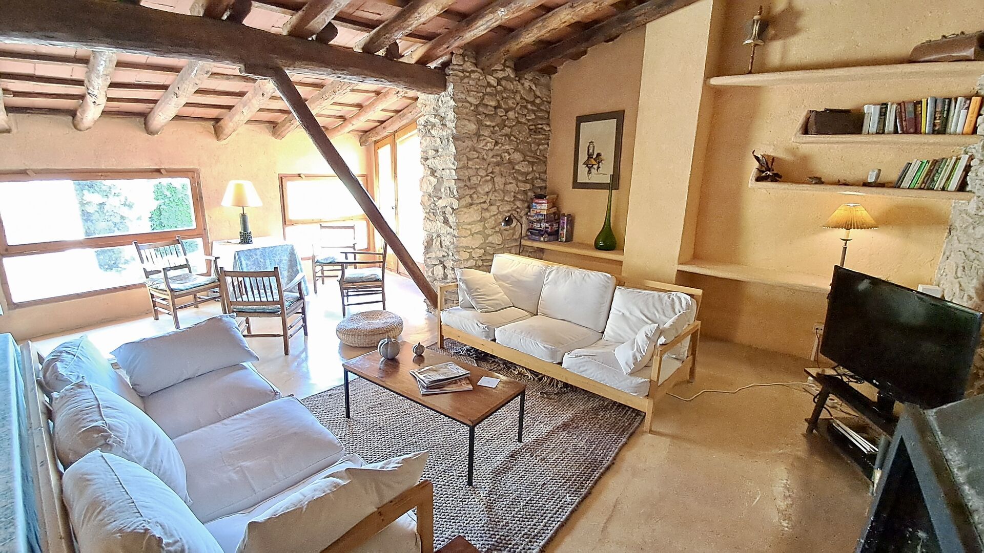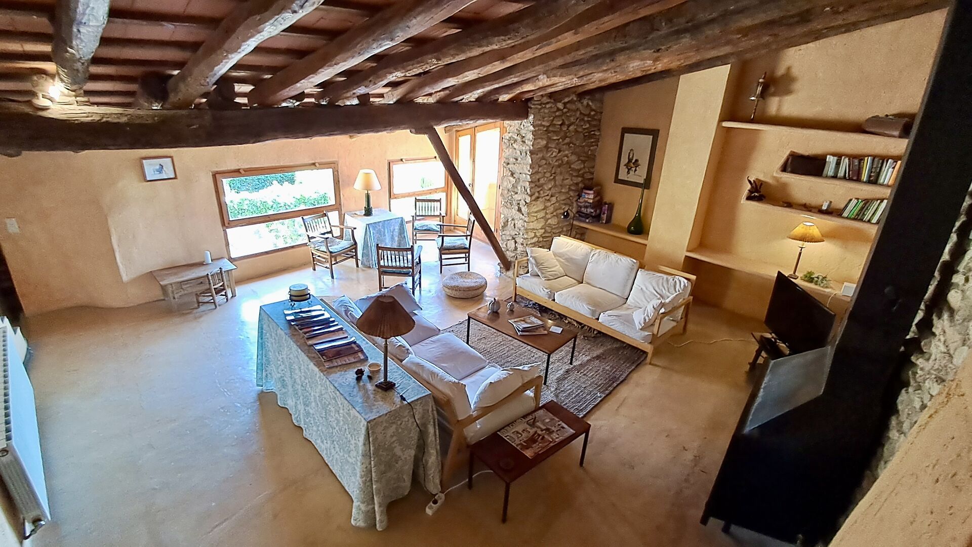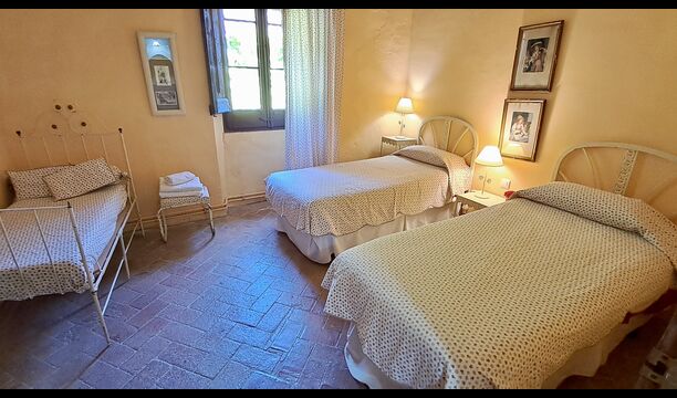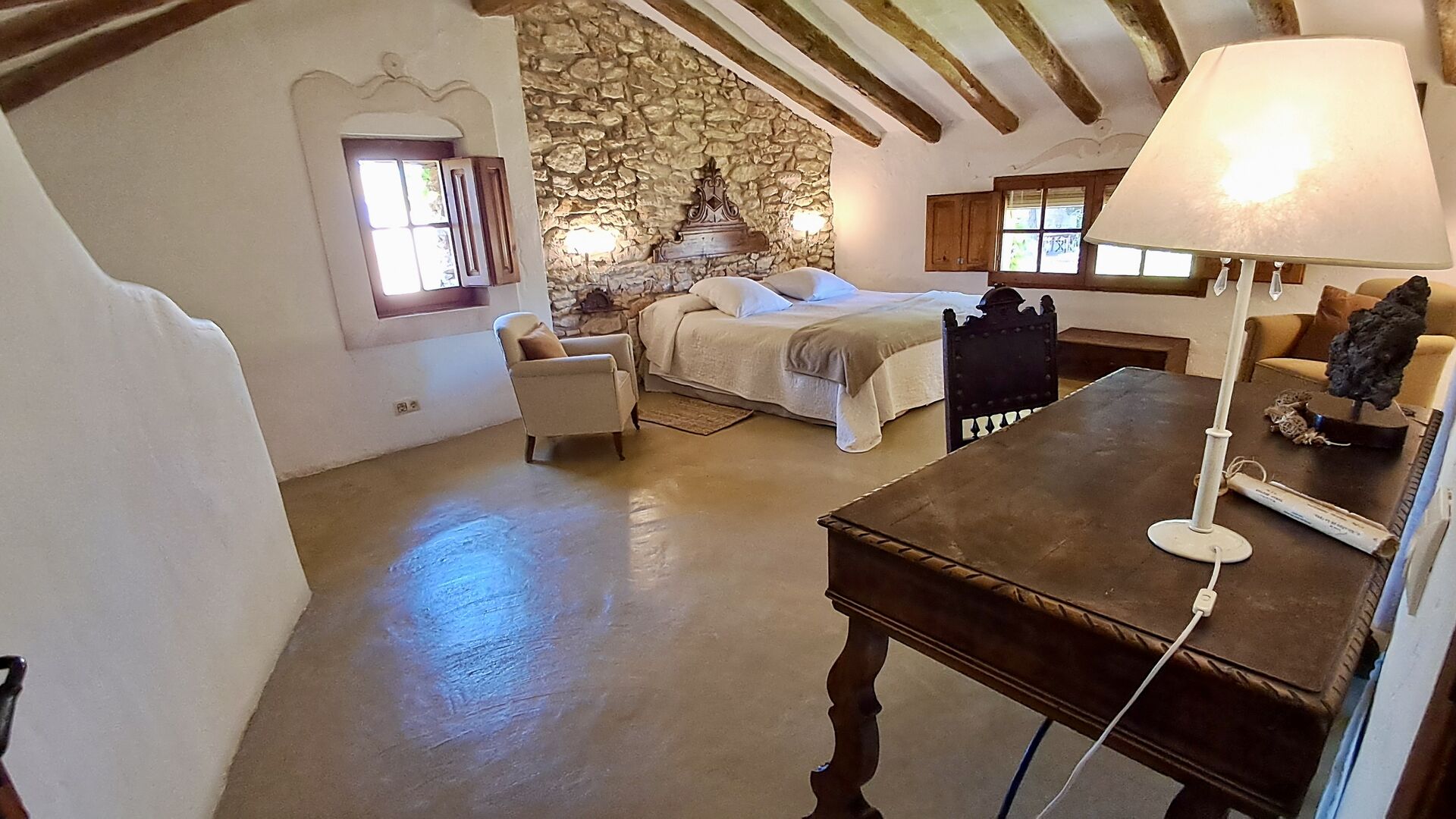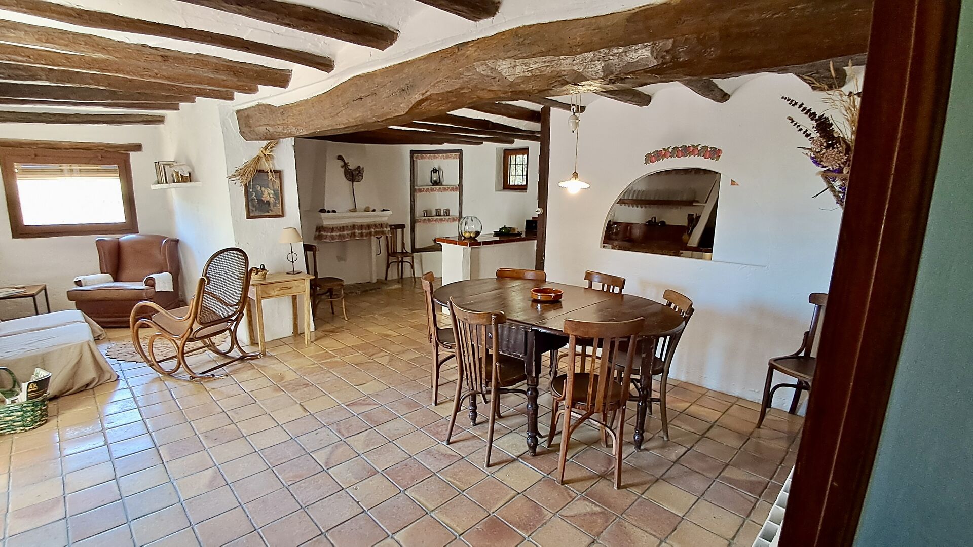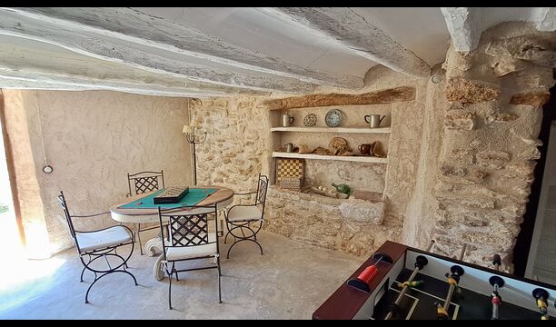 Huset er hele 300 m2 stort og er på alle måder et virkelig behageligt sted at holde sin ferie. Møblerne og indretningen er af højeste kvalitet og der er højt til loftet. Selvom huset fornylig er blevet restaureret, er det sket med stor respekt for husets historie, som stadig skinder tydeligt igennem. Der er virkelig mange smukke detaljer – f.eks. de flotte tagbjælker. På den anden side af gaden (hvor der ikke køre biler) er det store delte poolområde, med en swimming pool på hele 10 x 4.5 m, et område med skygge, og liggestole, hvor man kan slappe af i solen mens man holder øje med børnene i poolen.