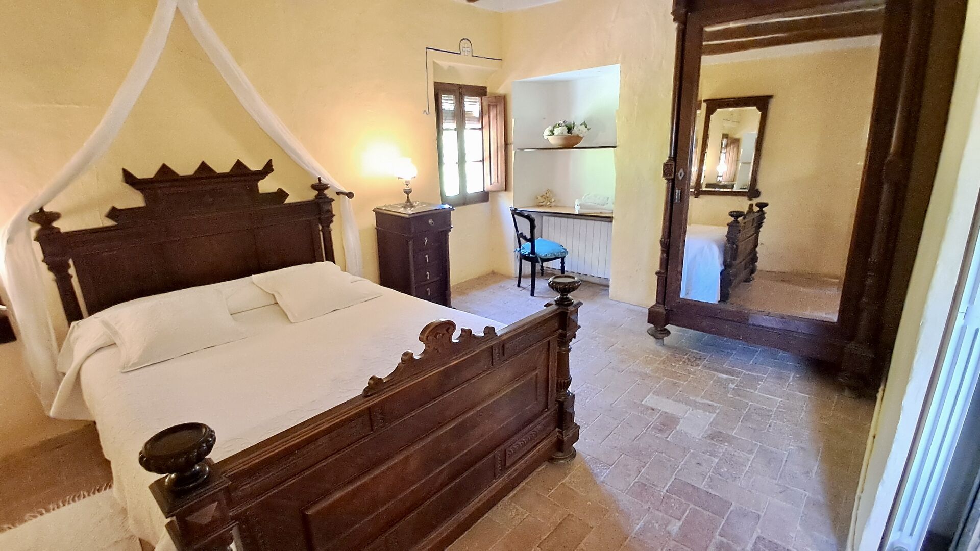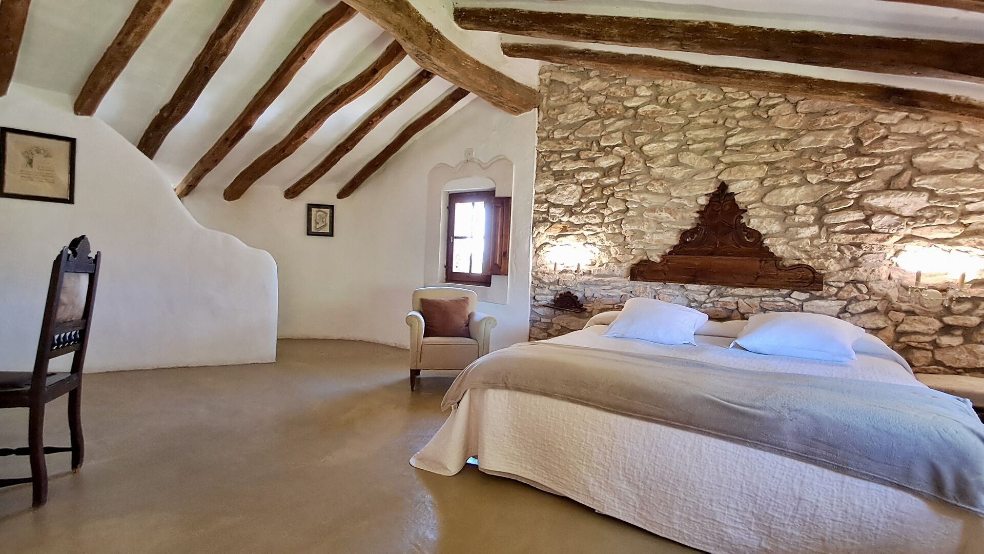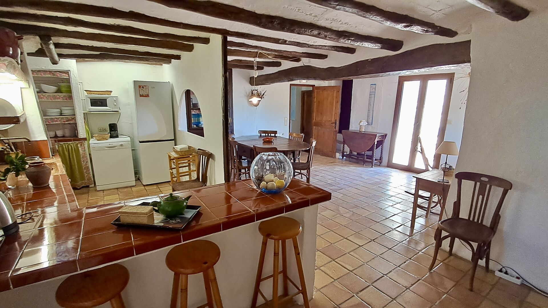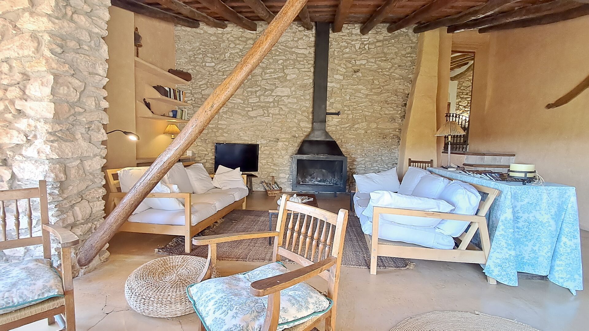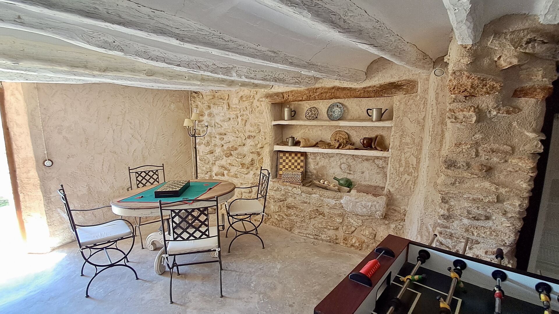 Huset er hele 300 m2 stort og er på alle måder et virkelig behageligt sted at holde sin ferie. Møblerne og indretningen er af højeste kvalitet og der er højt til loftet. Selvom huset fornylig er blevet restaureret, er det sket med stor respekt for husets historie, som stadig skinder tydeligt igennem. Der er virkelig mange smukke detaljer – f.eks. de flotte tagbjælker. På den anden side af gaden (hvor der ikke køre biler) er det store delte poolområde, med en swimming pool på hele 10 x 4.5 m, et område med skygge, og liggestole, hvor man kan slappe af i solen mens man holder øje med børnene i poolen.