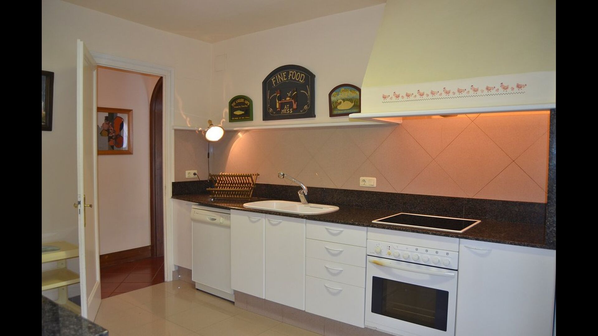 På første etage er der endvidere et veludstyret køkken med komfur, keramiske kogeplader, opvaskemaskine, vaskemaskine, kaffemaskine, brødrister, mikroovn, køkkenredskaber, fryser og køleskab.