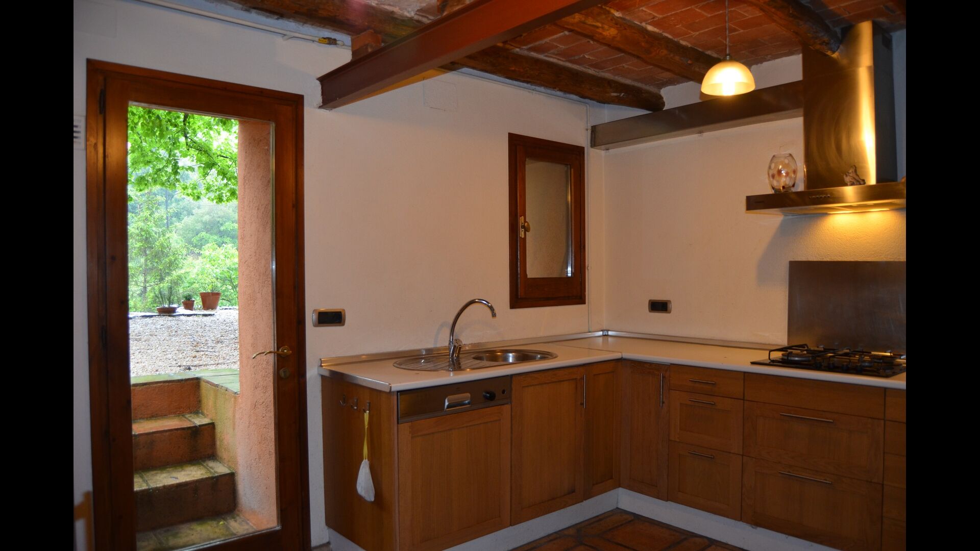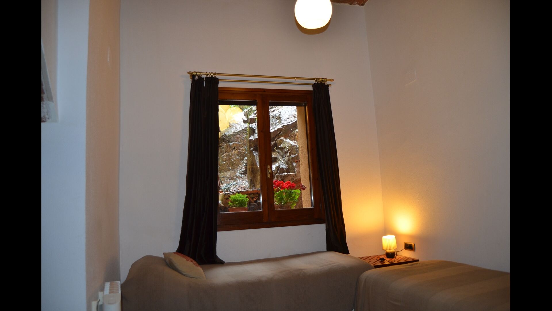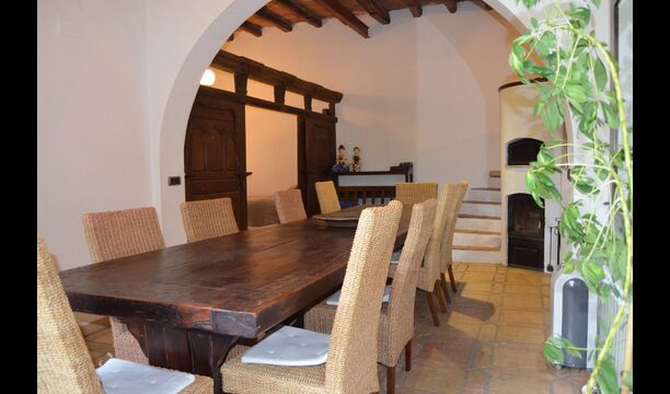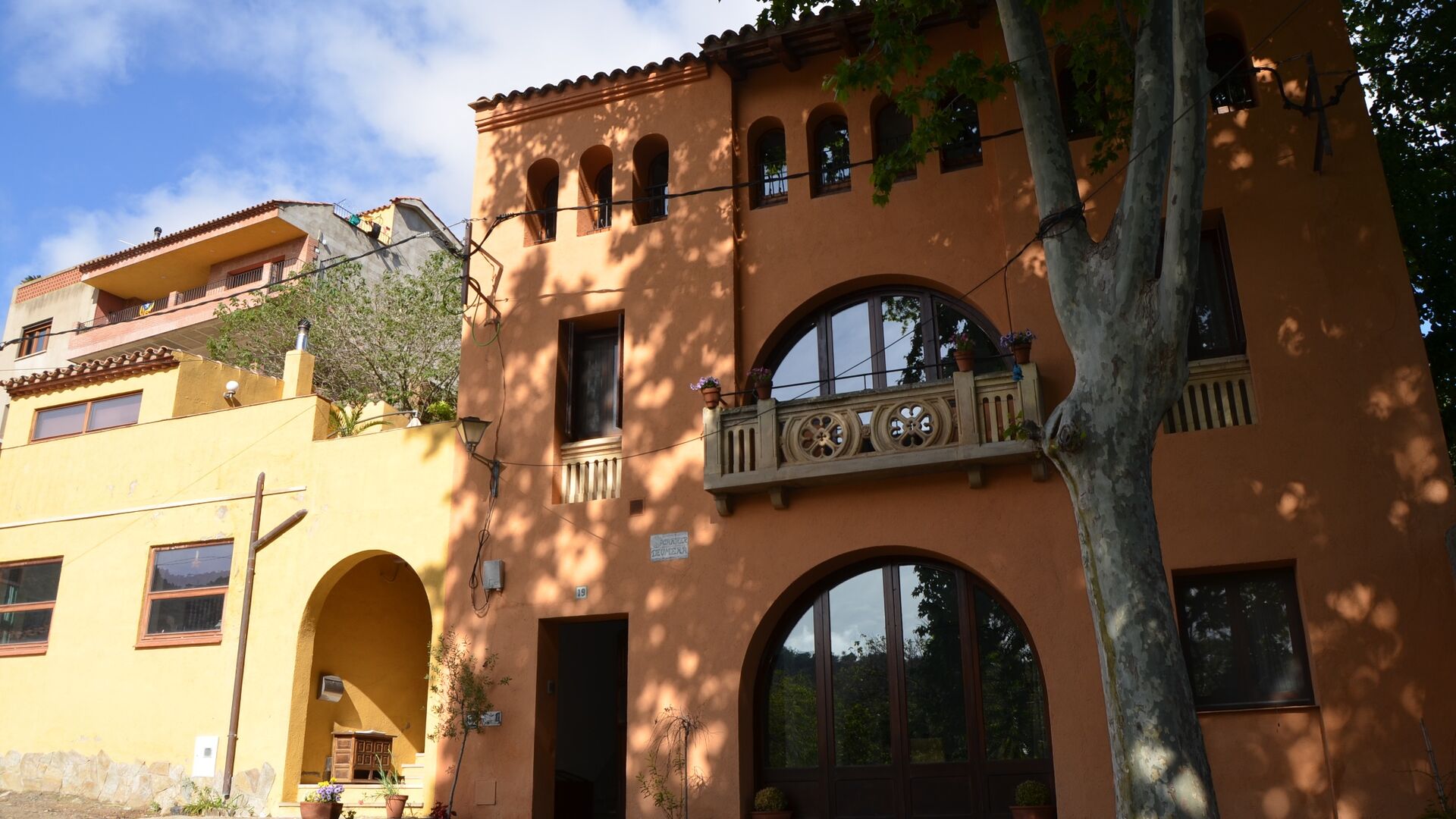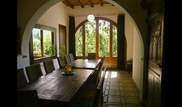 På trods af at huset er et byhus, beliggende som sidste hus i byen, giver huset gode muligheder for at tilbringe ferien udendørs i den dejlige catalanske sommer. Der er også et par fyrretræer som giver skygge, og hvor man kan nyde livet i hængekøjen. Til børnene er der gynger og ruchebane. Nedenfor ligger haven med swimmingpool, hvor man kan blive afkølet og børnene kan lege.