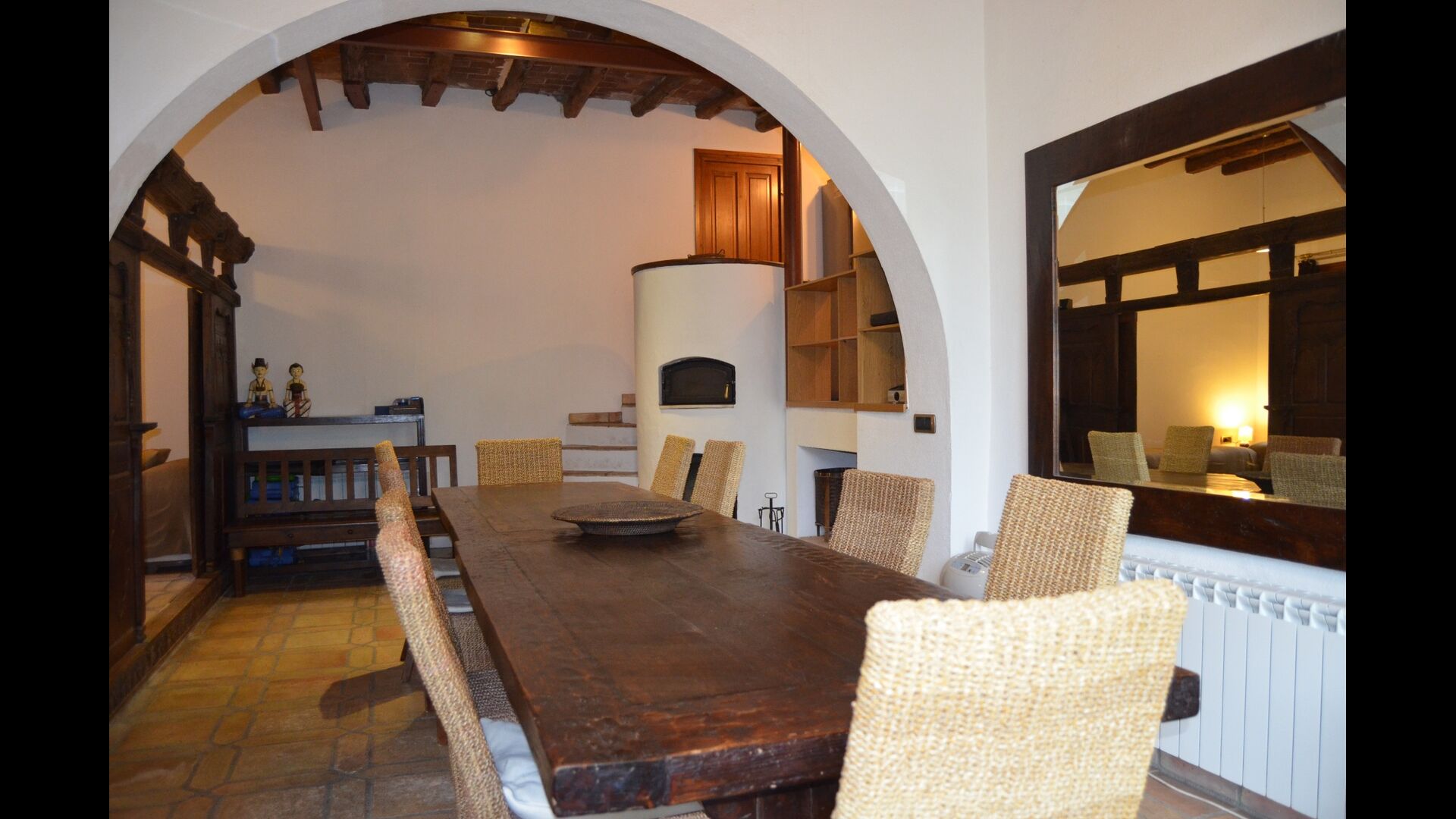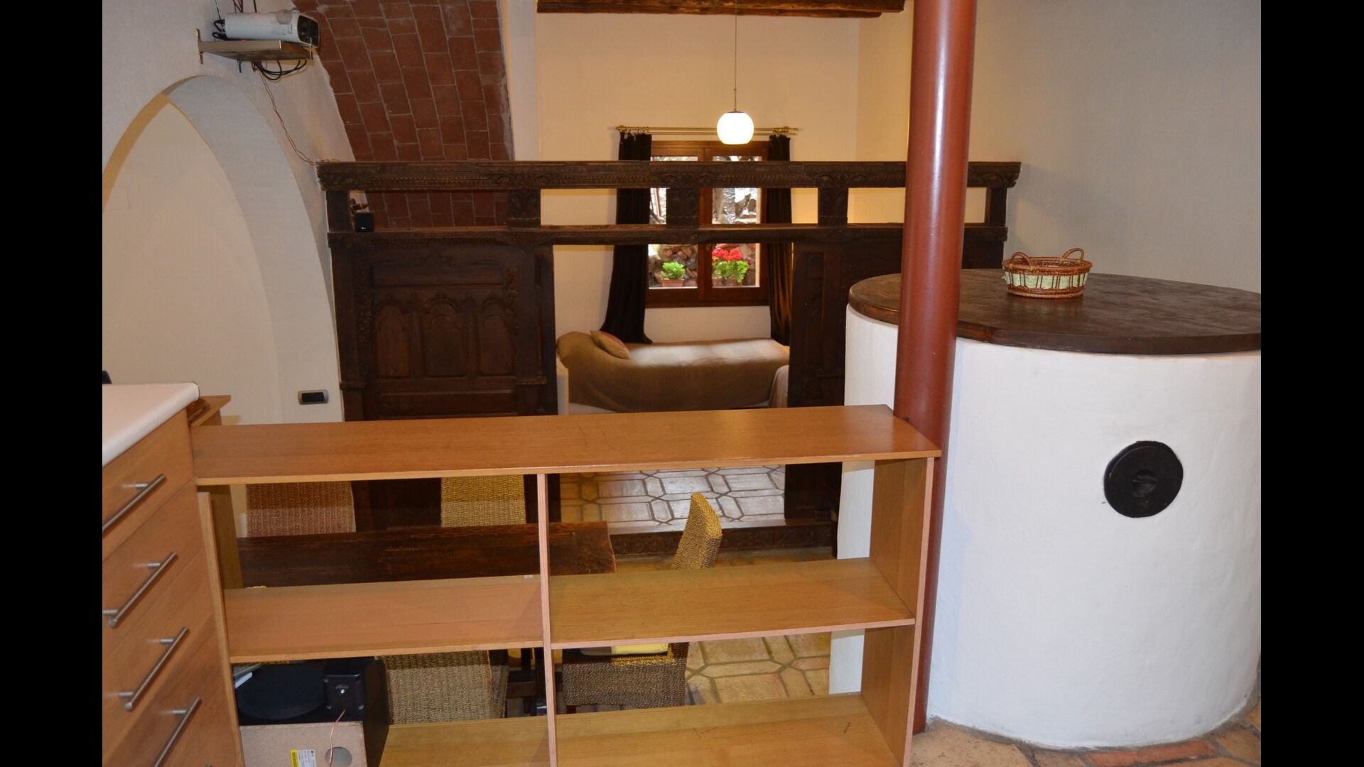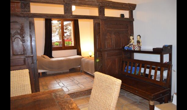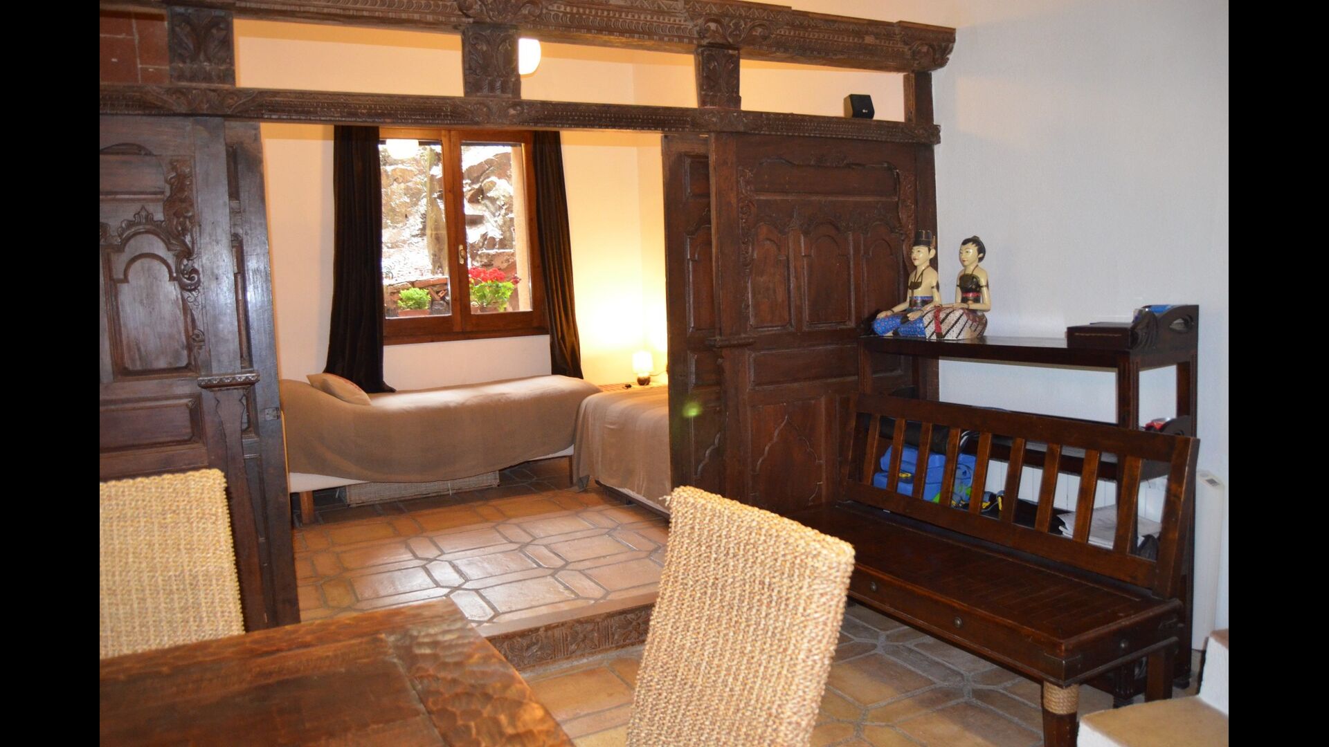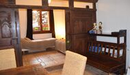 Lejligheden i stueetagen har to dobbeltværelser, et badeværelse og en stor sal til gilder, møder eller mindre konferencer med plads til 15 personer, en masseovn og et åbent køkken med adgang til haven. Et af værelserne er orientalsk inspireret og lukkes med en original skydedør i smukt udskåret træ fra Indonesien.