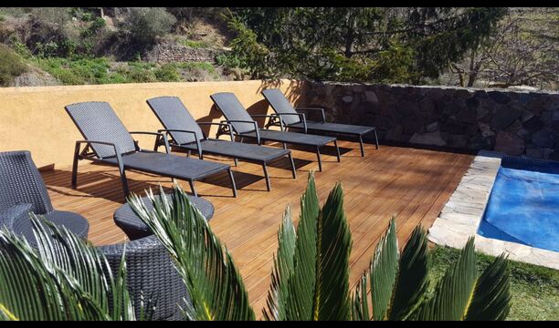 Fællesarealerne er en 220 m² have med swimmingpool (der er desuden landsbyswimmingpoolen 5 minutter væk), fyrretræer med hængekøjer til at slappe af i, to terrasser, én i solen og én i skyggen af det store lindetræ. Der er rutschebaner og gynger til de små.