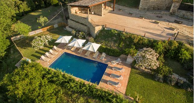Det flotte poolområde i ferieboligen Masia Gravat.