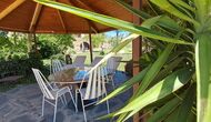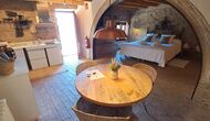 Derudover er der et lille anneks med en futon under et halvpunktsloft. Dette rum er også direkte tilgængeligt fra haven, som tilbyder et intimt udendørsområde til måltider og afslapnin i solen.