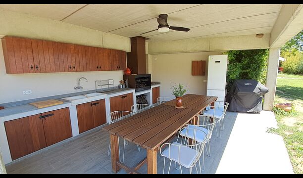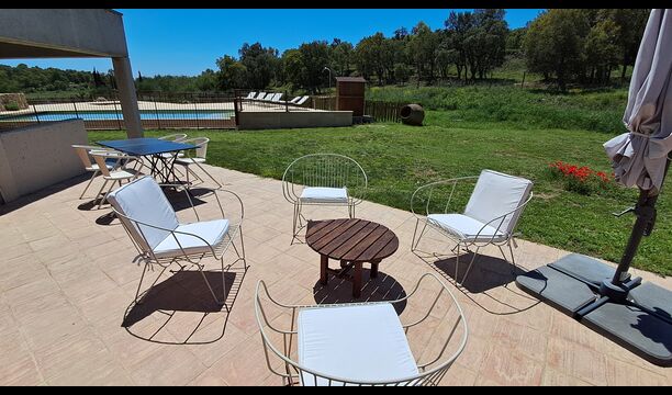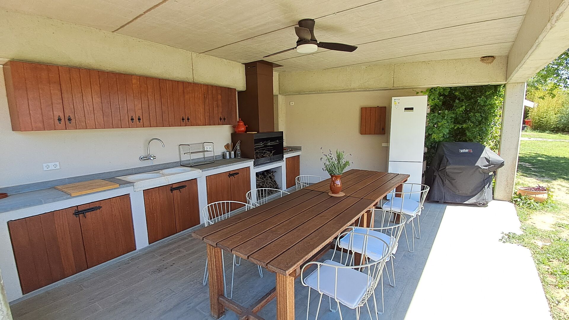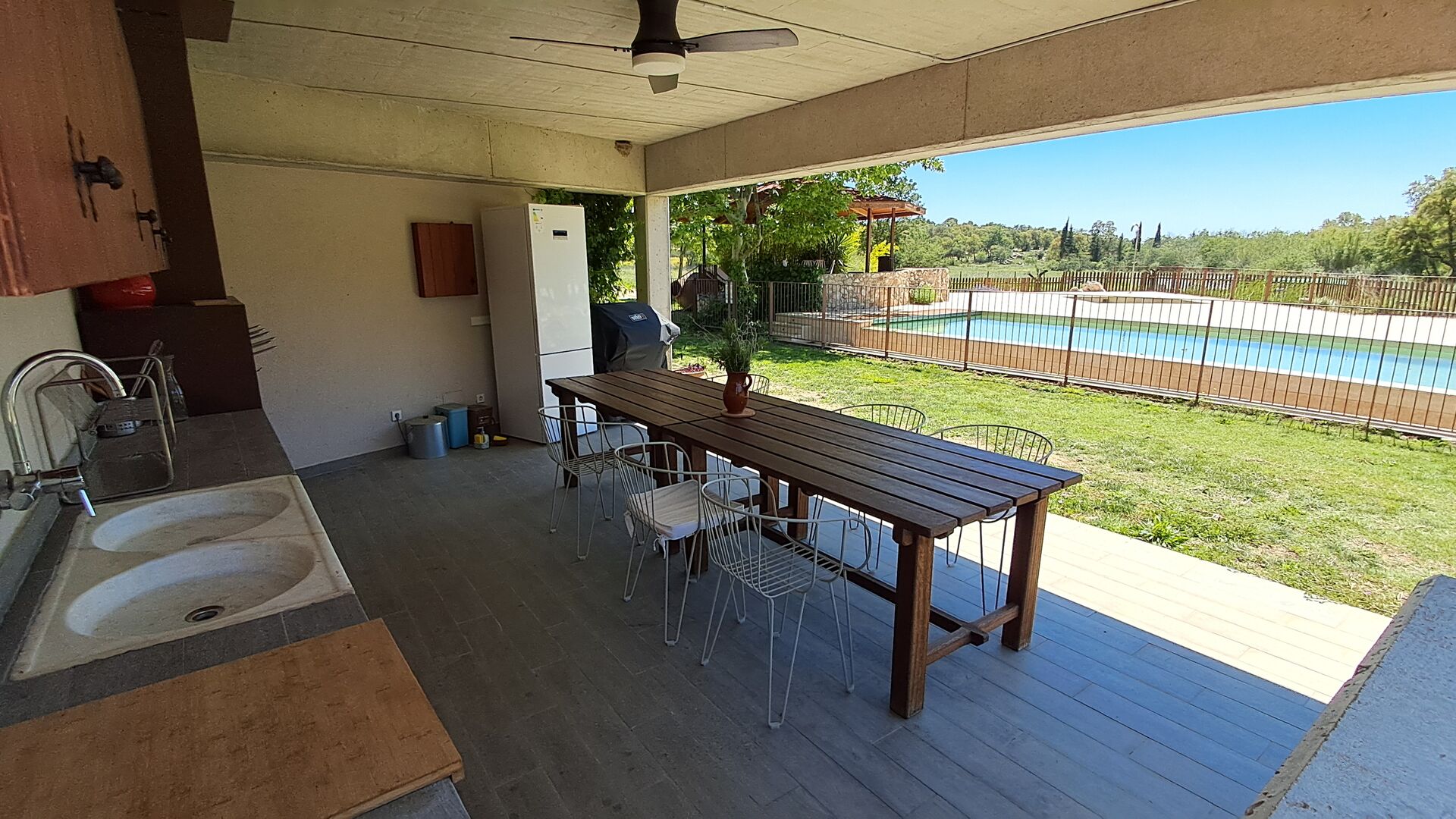 Det naturlige centrum i den varme catalanske sommer er det smukke poolområde. Her finder du swimmingpoolen, på 4 meter x 11 meter, jacuzzien med solarium og et lysthus. To 2 store verandaer med gas- og/eller træ- eller kulgrill. giver skygge og det perfekte sted til udendørs madlavning. Der er også en mindre ekstra veranda. Ejendommen har privat parkering og endda nu med elektriske opladere, så du kan oplade bilen, mens du slapper af ved poolen.