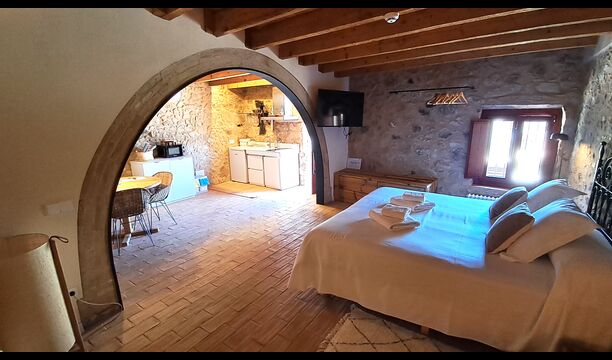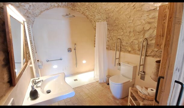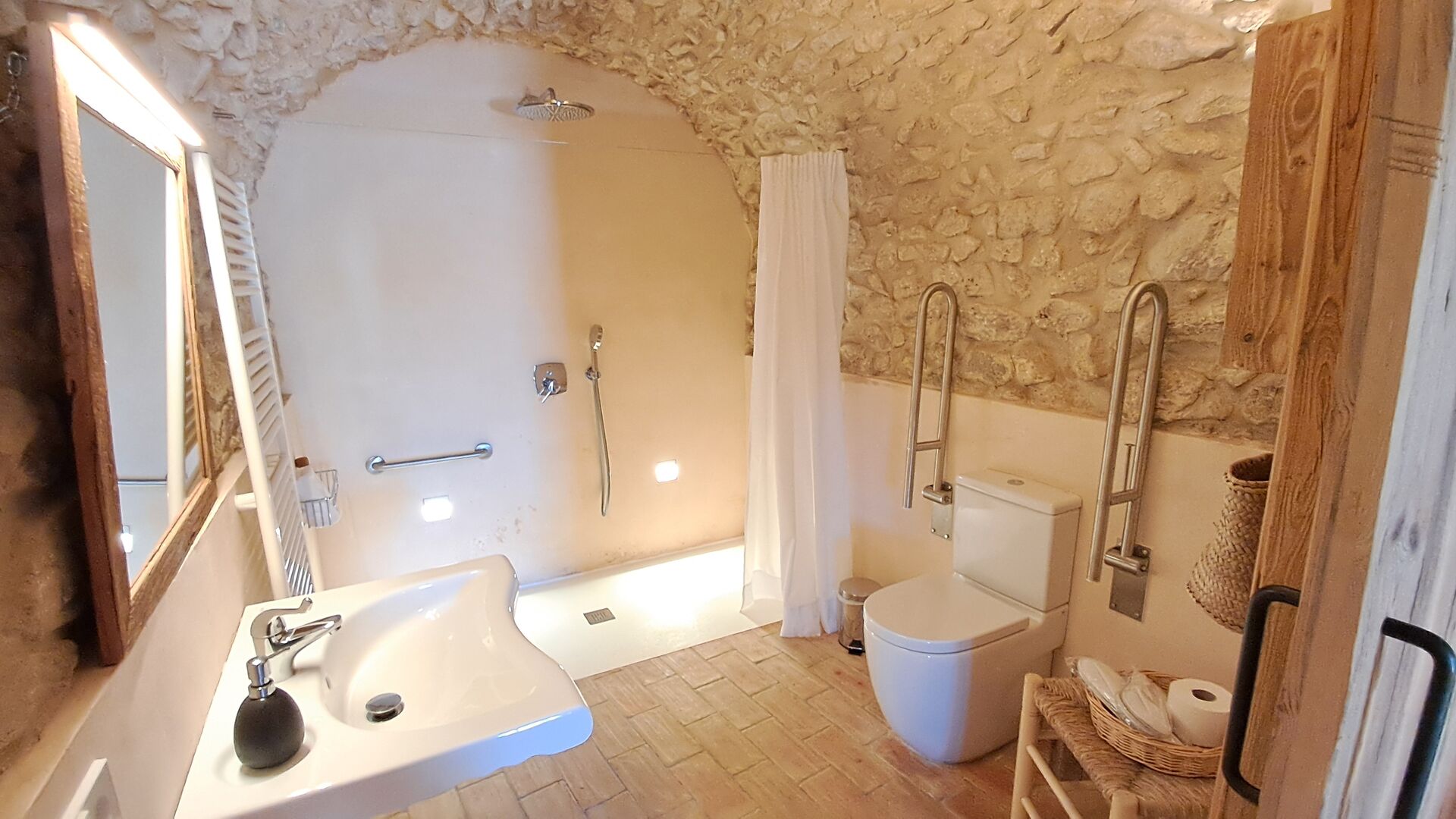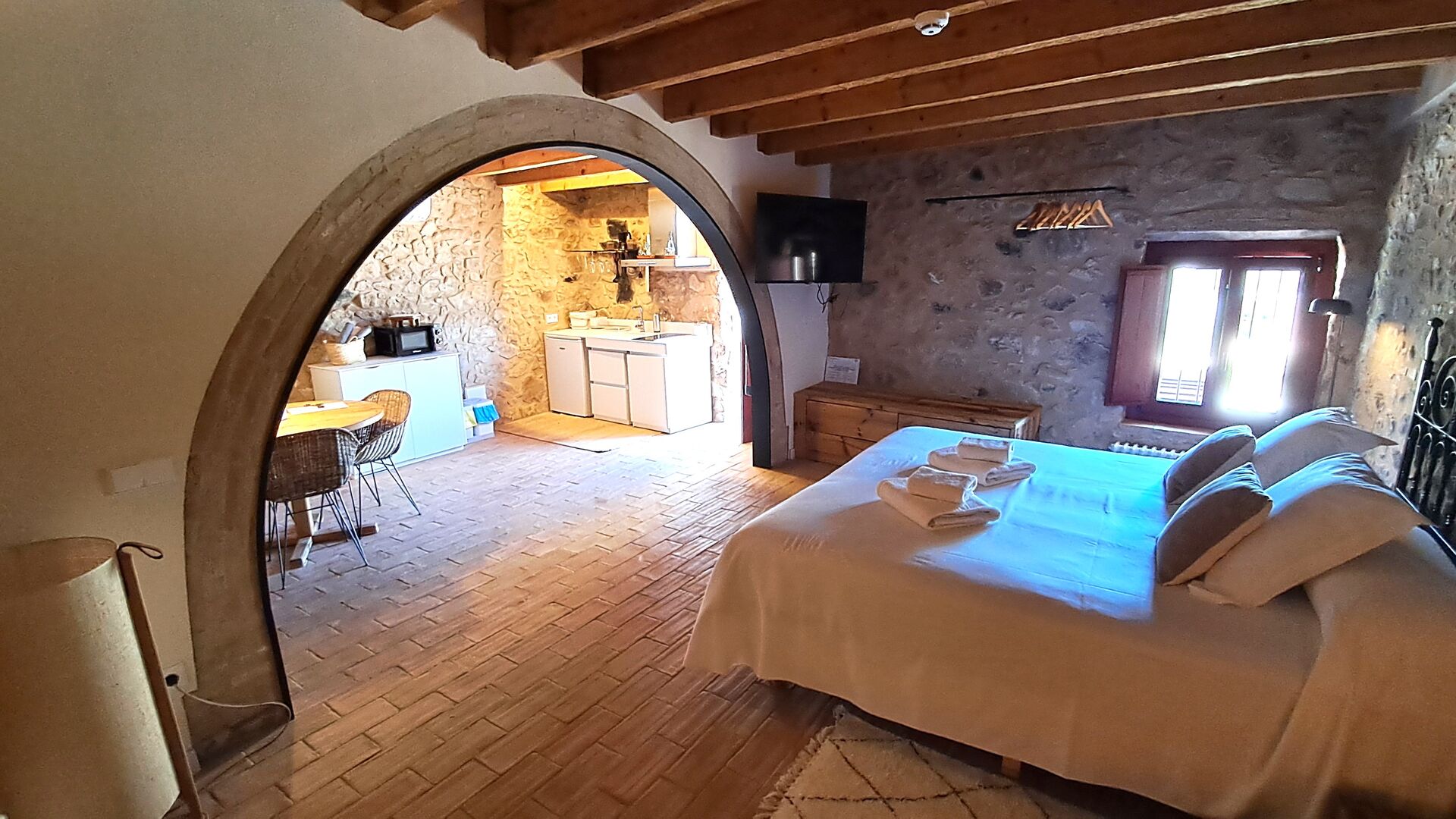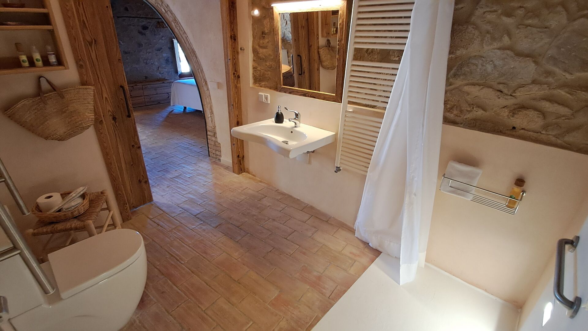 På Can Matins 10.000 m2 store grund finder du lejligheden Llevant, der kan lejes separat, en 45 m2 studielejlighed med smukke rum! Tilgængelig fra haven og entilpasset gæster og besøgende med nedsat mobilitet, det tilbyder mindre rejsegrupper et fremragende sted at bo og slappe af i – uanset ens alder eller mobilitetssituation! Du er sikker på at hygge dig i den vidunderlige region i Catalonien – med en fremragende ferielejlighed i Can Matin – Llevant som din hjemmebase!