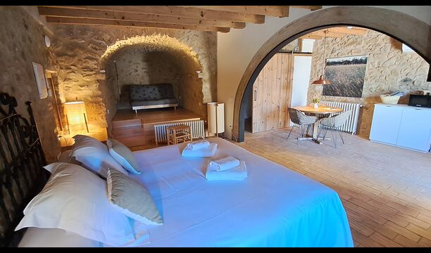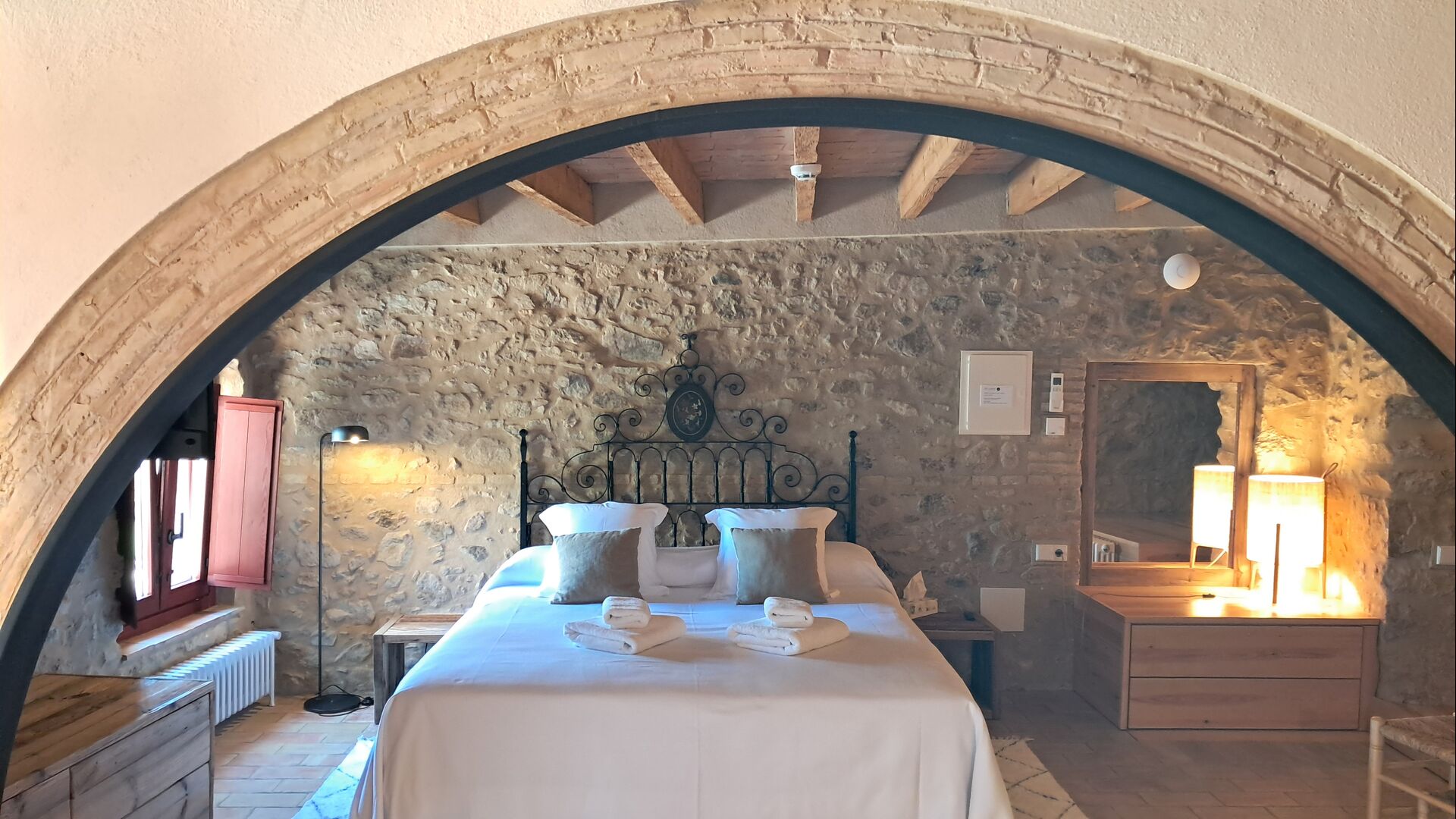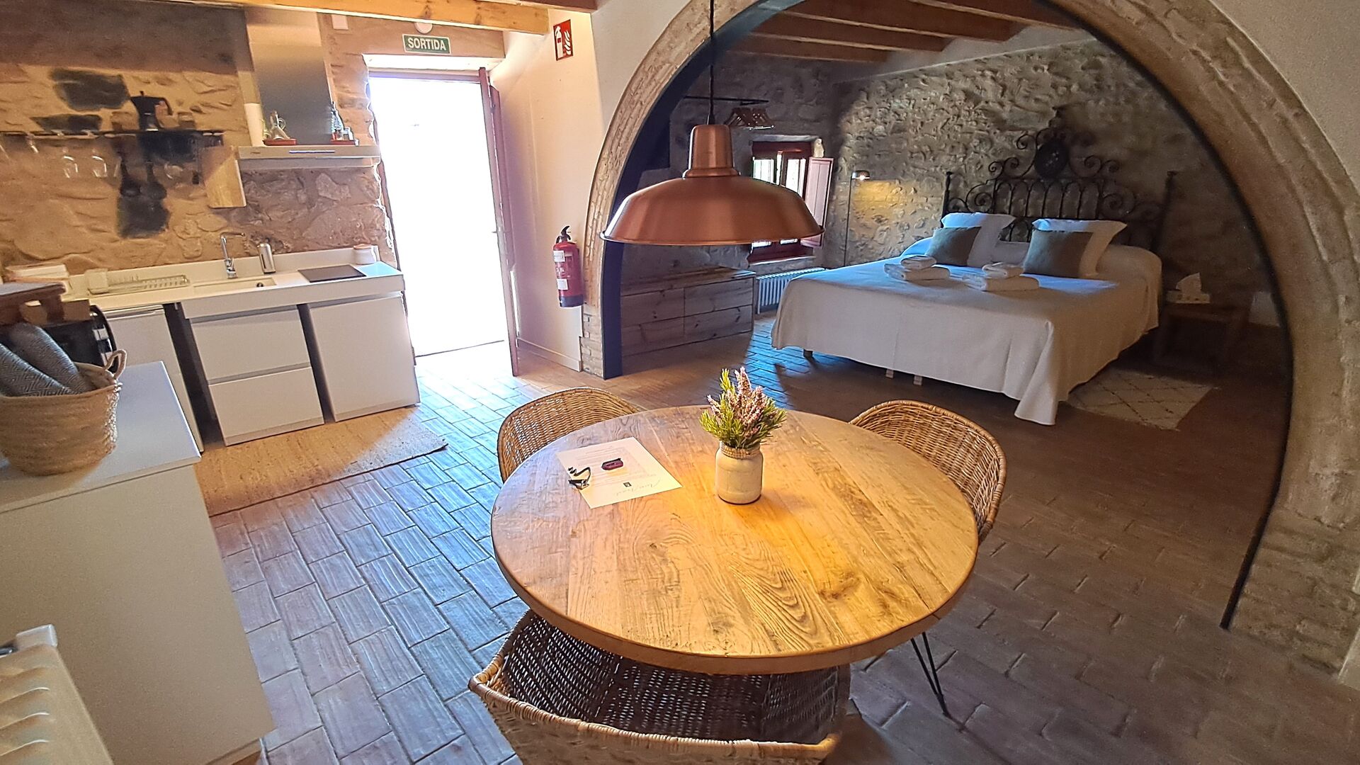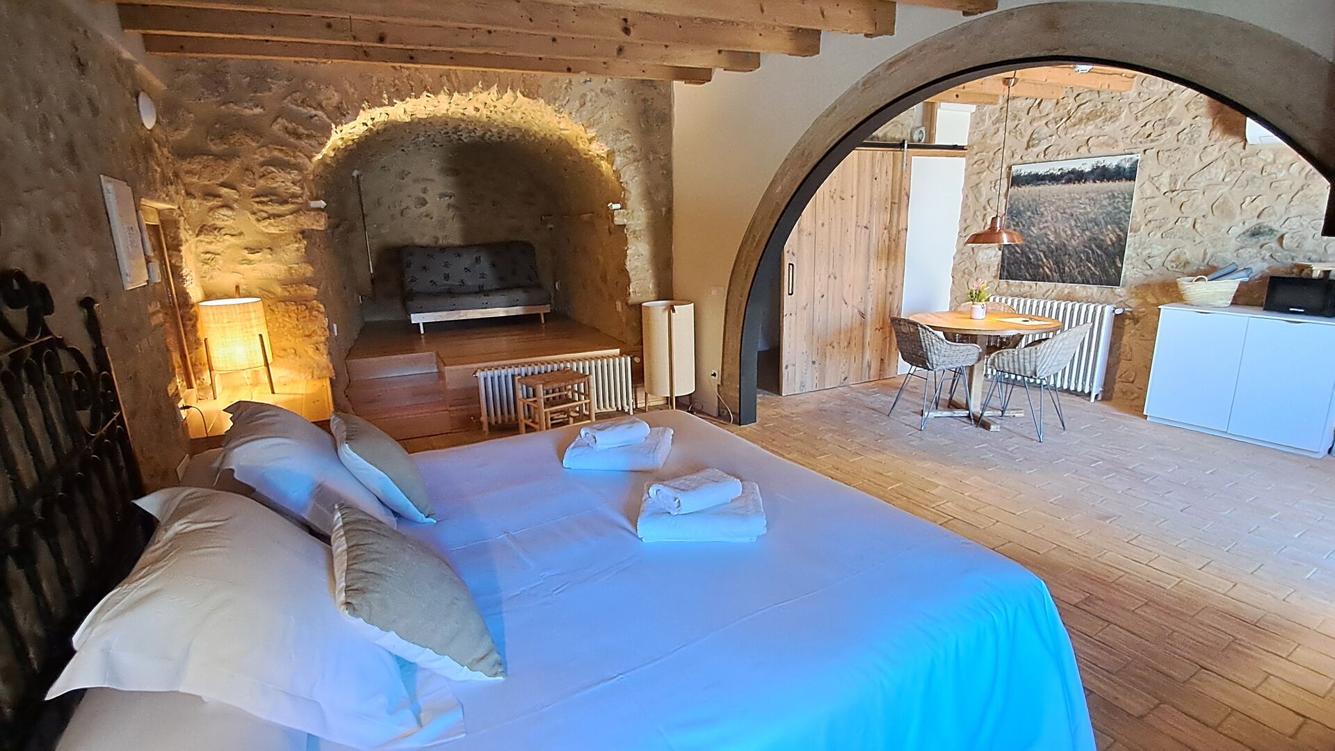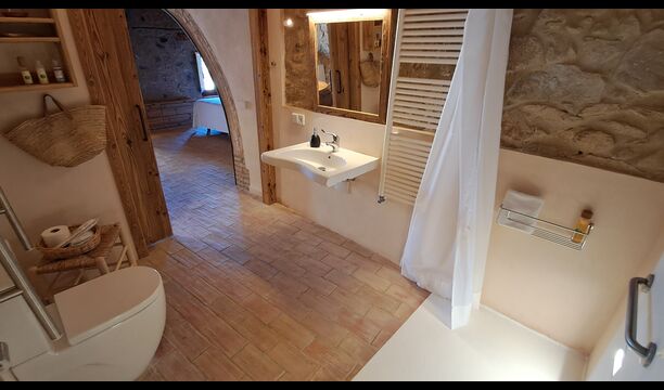 På Can Matins 10.000 m2 store grund finder du lejligheden Llevant, der kan lejes separat, en 45 m2 studielejlighed med smukke rum! Tilgængelig fra haven og entilpasset gæster og besøgende med nedsat mobilitet, det tilbyder mindre rejsegrupper et fremragende sted at bo og slappe af i – uanset ens alder eller mobilitetssituation! Du er sikker på at hygge dig i den vidunderlige region i Catalonien – med en fremragende ferielejlighed i Can Matin – Llevant som din hjemmebase!