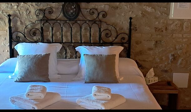 Det unikke træk ved denne lejlighed er, at alt er på et ens, jævnt niveau, hvilket gør det let at navigere rundt i – så der er ingen grund til at bekymre dig om at gå op ad trapper eller navigere rundt omkring mærkelige hjørner og kanter. Badeværelset er tilpasset til også at opfylde dette kriterium..og er meget rummeligt!. Det åbne soveværelse (bestående af to kombinerede enkeltsenge) er tilgængeligt direkte fra køkkenet, og – på væggen ved siden af sengene – er et væghængt tv, så det er nemt at læne sig tilbage og ligge i den eller de komfortable seng(e) og se tv om morgenen eller efter lang en dag ude i landskabet/lokale byer.