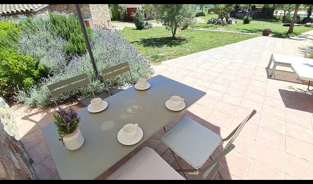 I haven er der mange forskellige rum og hjørner, to store verandaer med grillfaciliteter og også et smukt lysthus i sten og træ, alt sammen ved poolen og jacuzzien, begge saltvand. Du finder også sportsudstyr såsom nogle cykler, ketchere, net, bolde, mål og traditionel catalansk bowling. Det er også værd at nævne de mange ruter til vandring, cykling eller mountainbike, der omgiver Mas.