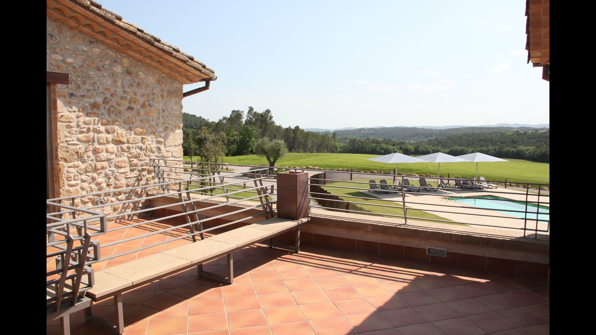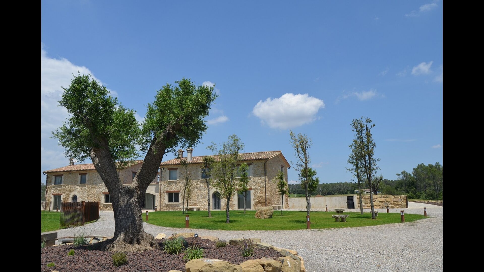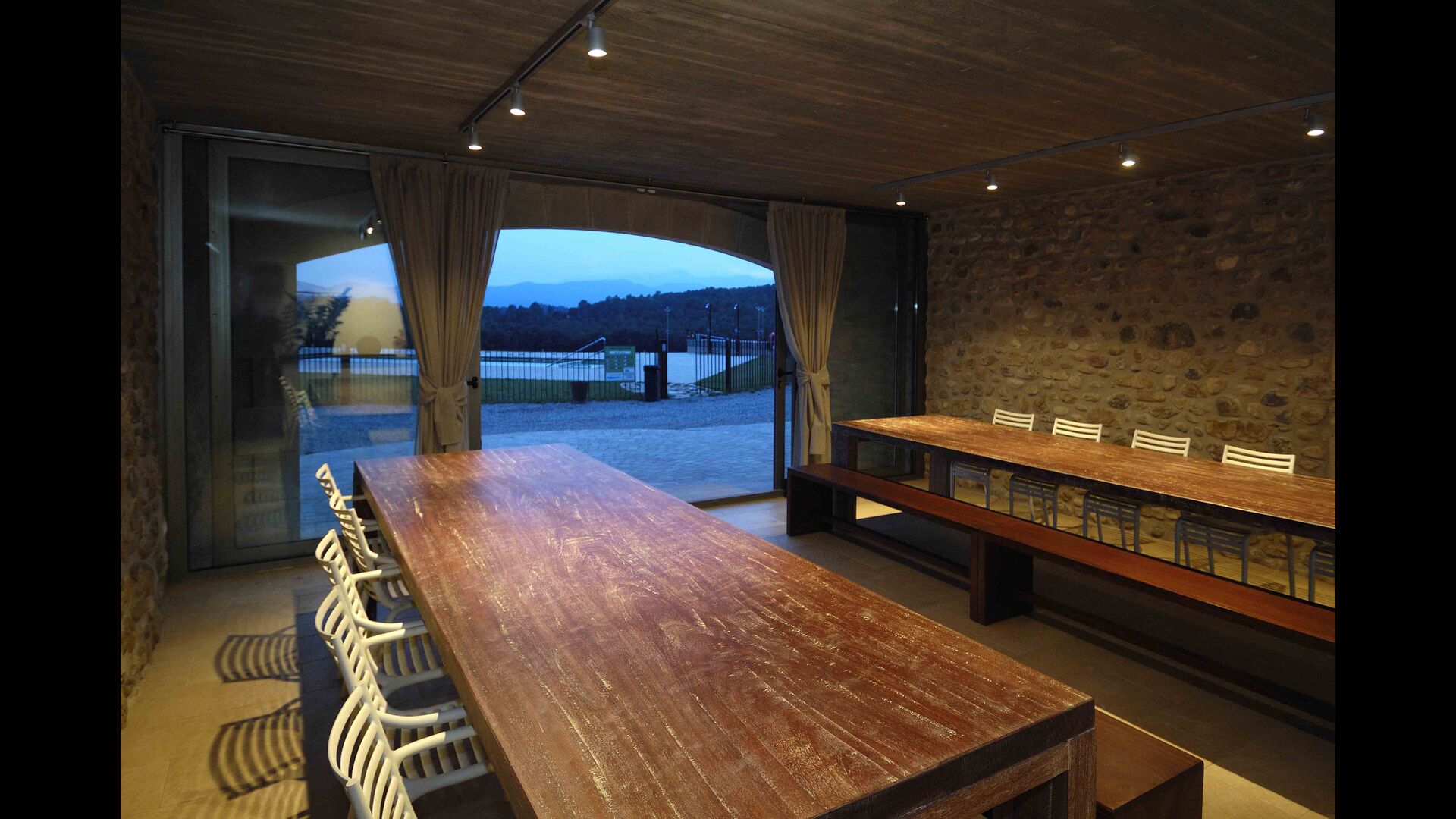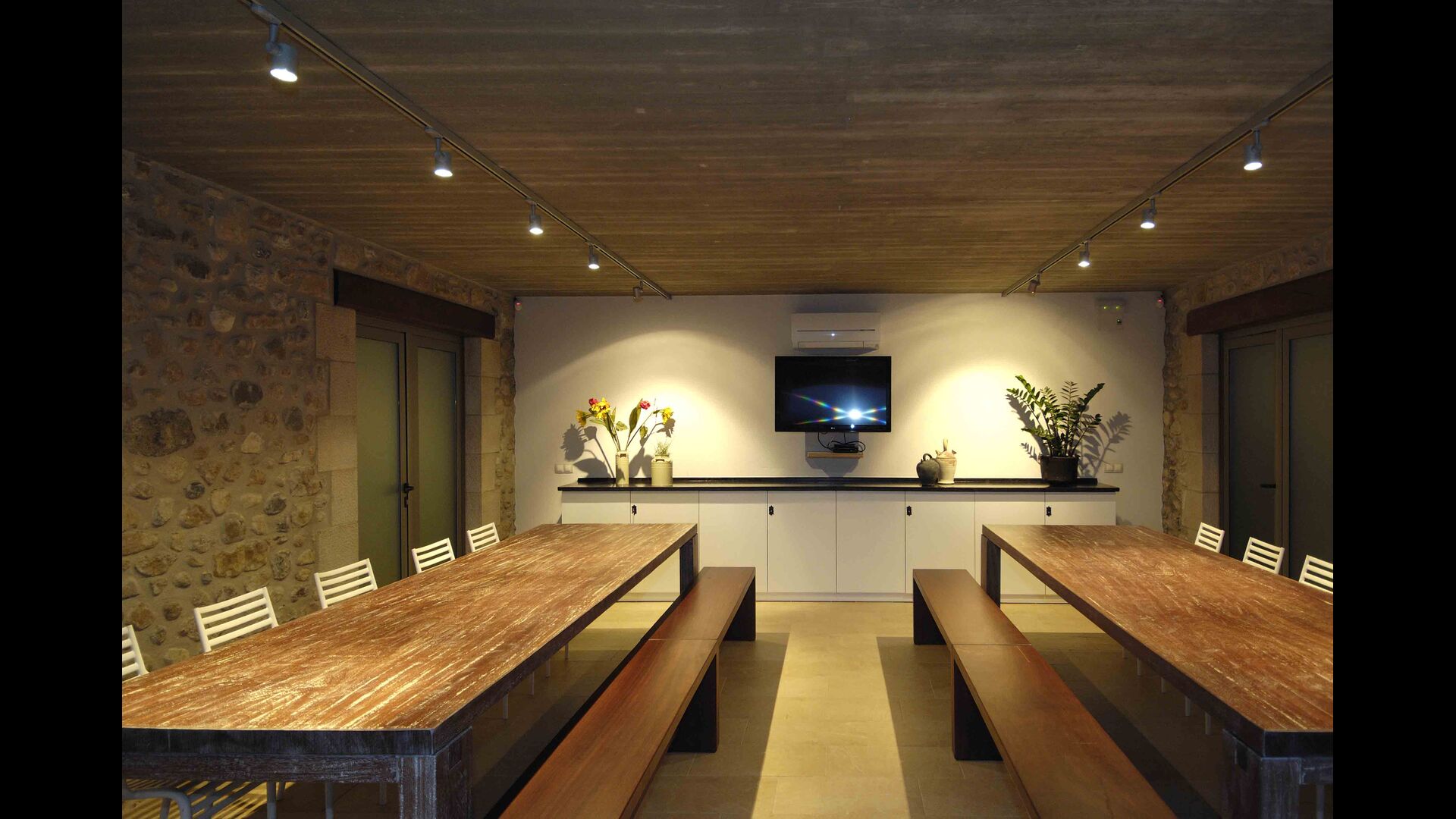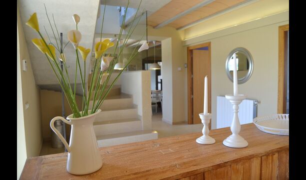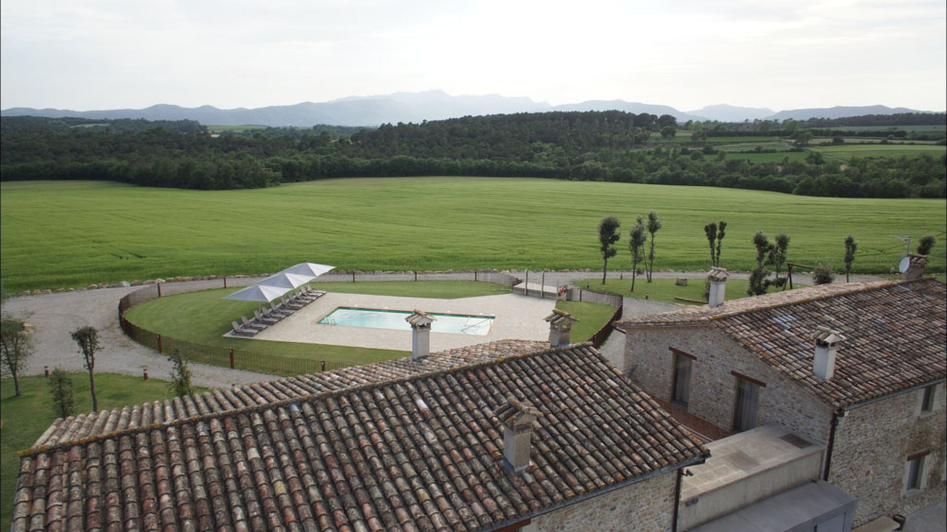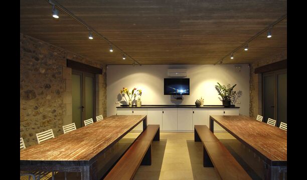 Masia Plañellas består af to ens bygninger med 5 soveværelser hver. Denne foranstaltning giver mulighed for at trække sig tilbage og slappe af i den store feriegruppe. Disse to bygninger er forbundet af en spisestue, hvor aftensmaden kan nydes. Ovenpå er der en tagterrasse med en formidabel udsigt udover landskabet.