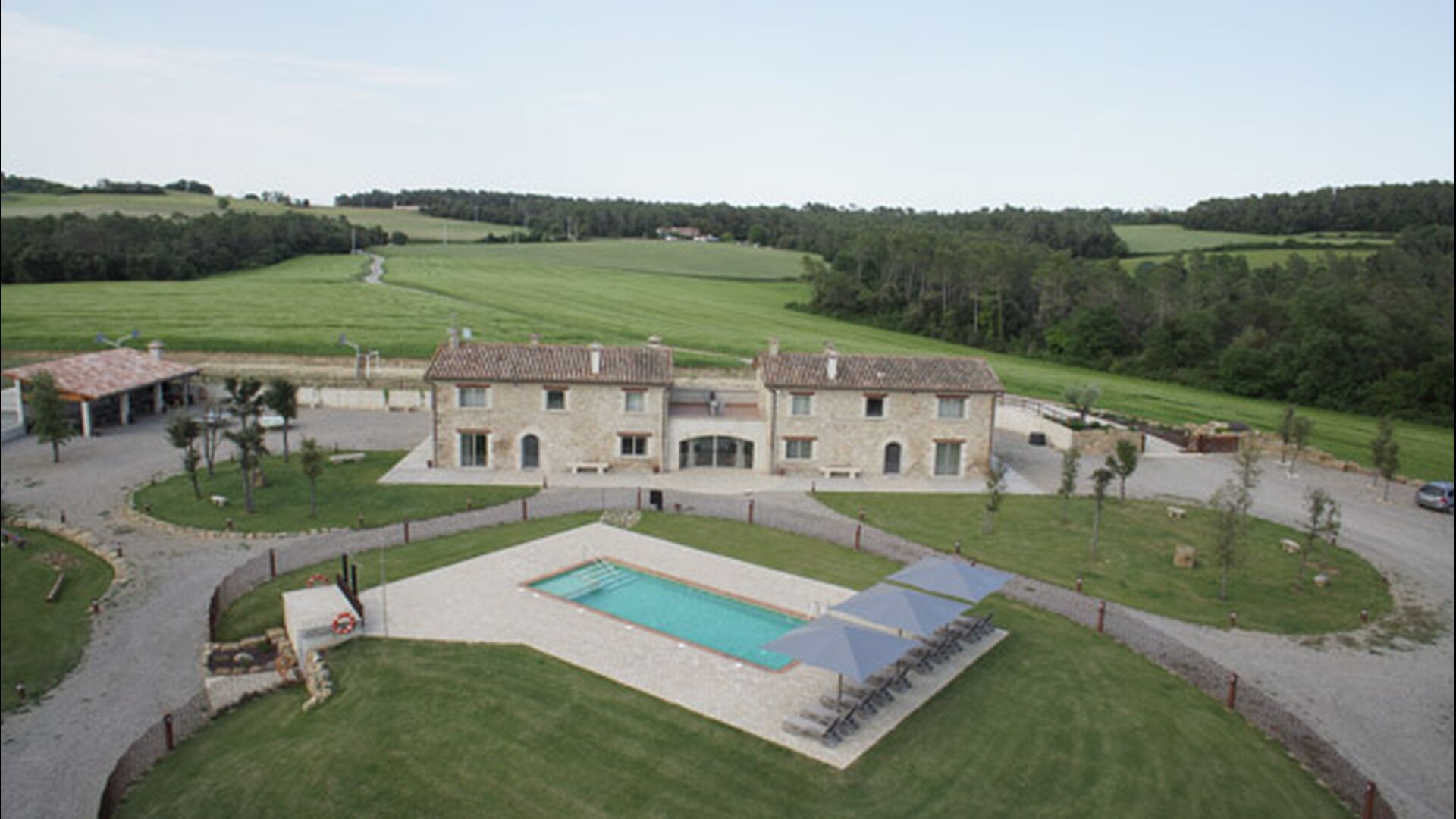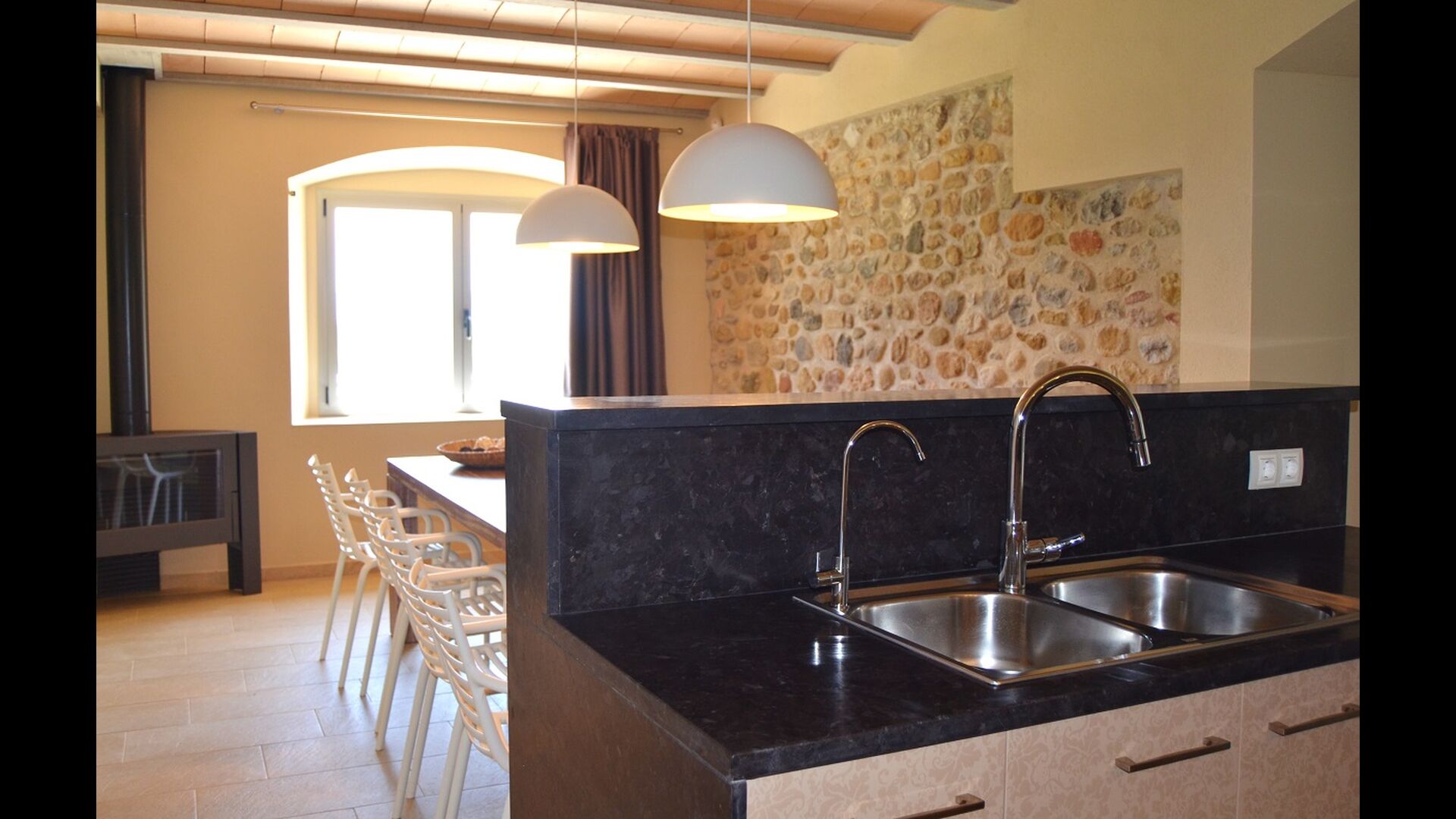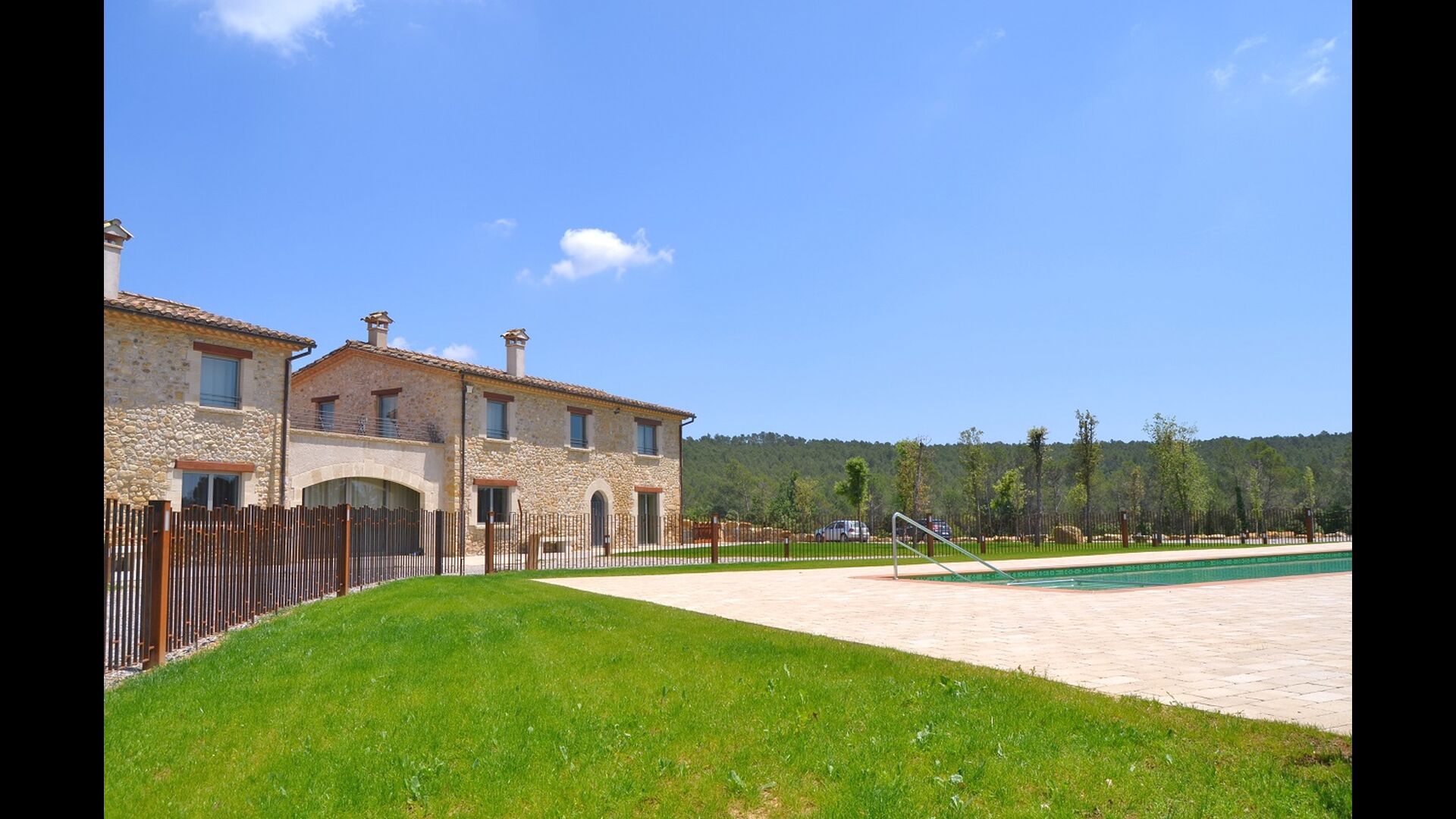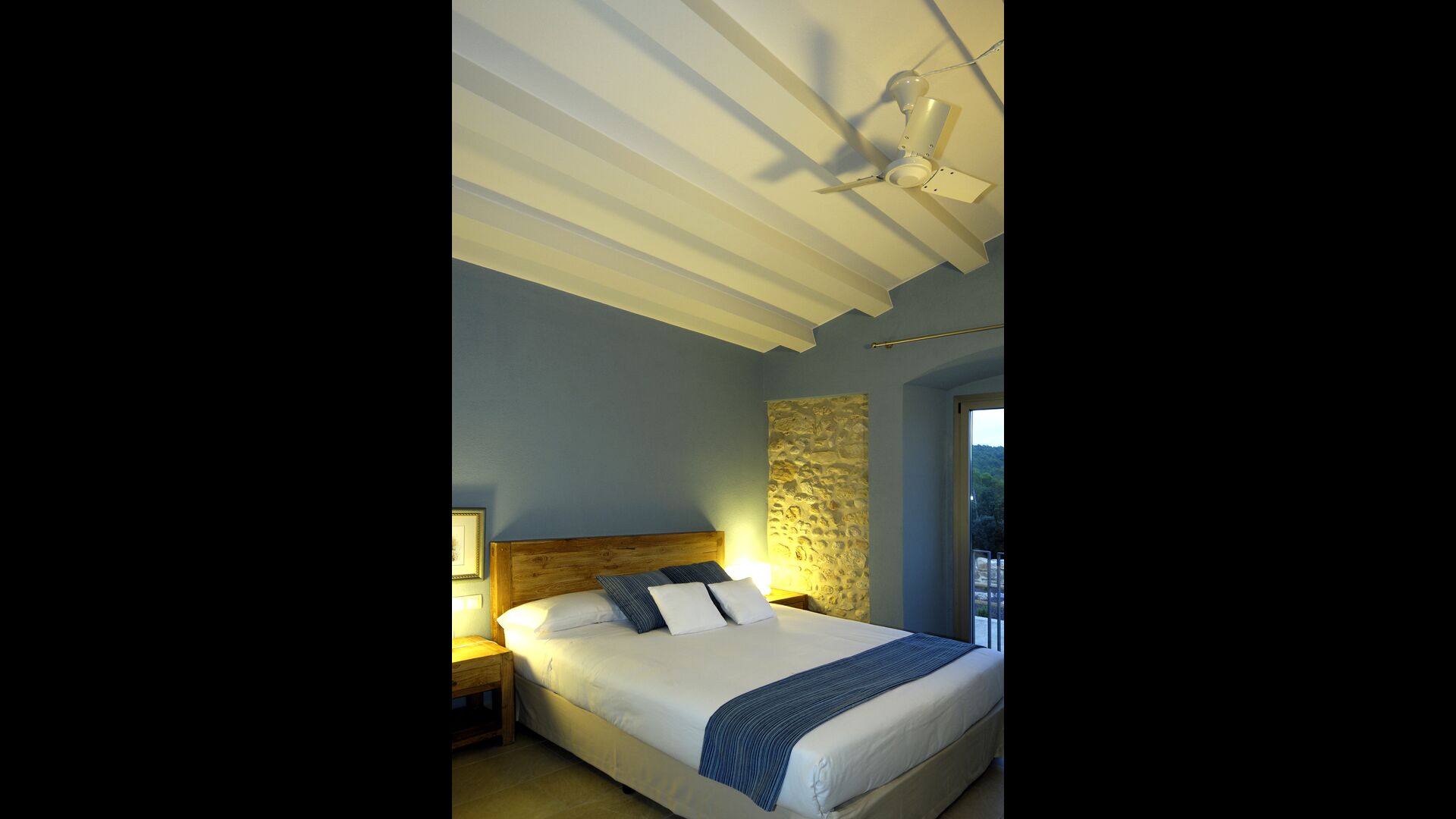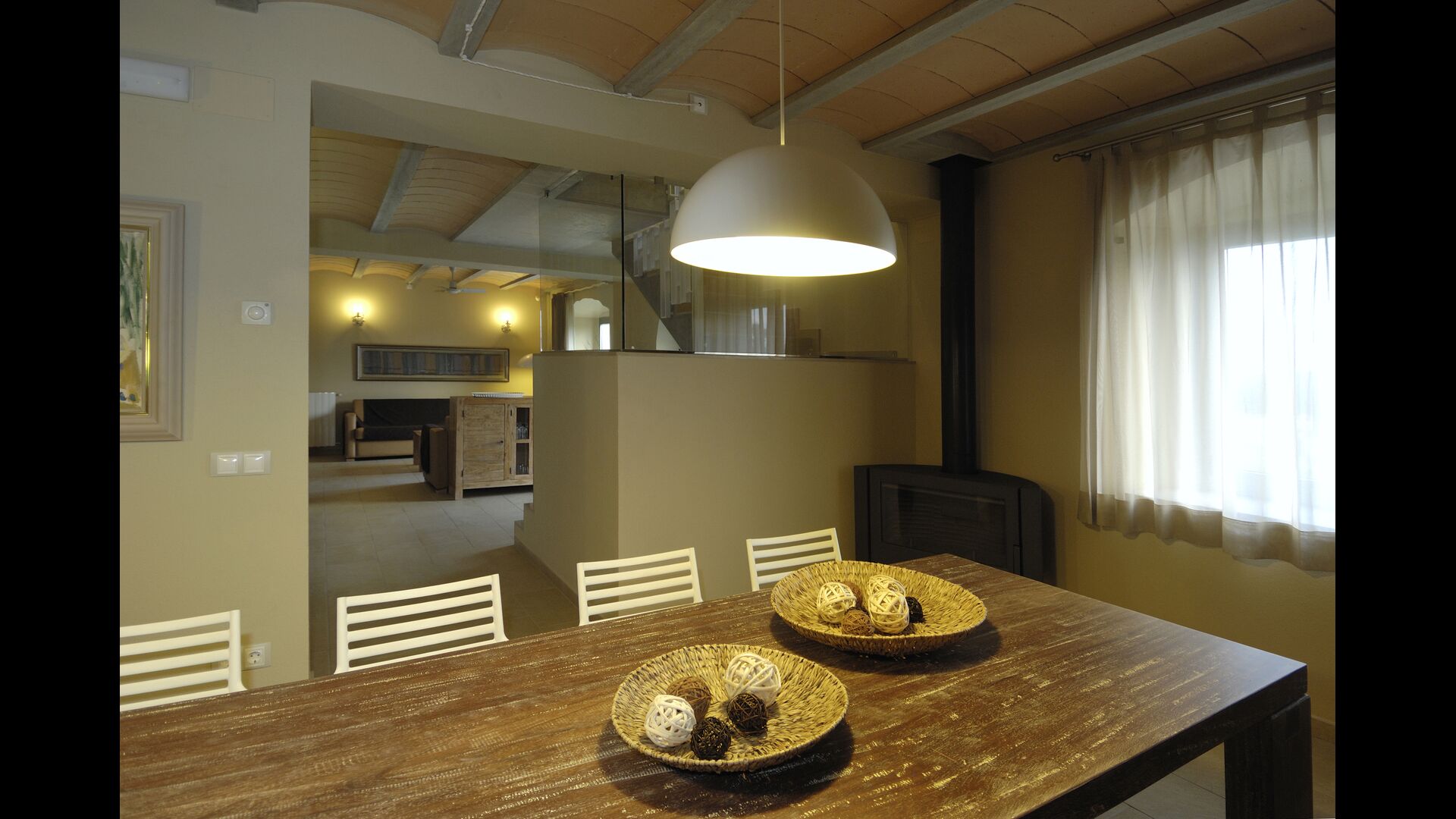 Masia Plañellas består af to ens bygninger med 5 soveværelser hver. Denne foranstaltning giver mulighed for at trække sig tilbage og slappe af i den store feriegruppe. Disse to bygninger er forbundet af en spisestue, hvor aftensmaden kan nydes. Ovenpå er der en tagterrasse med en formidabel udsigt udover landskabet.