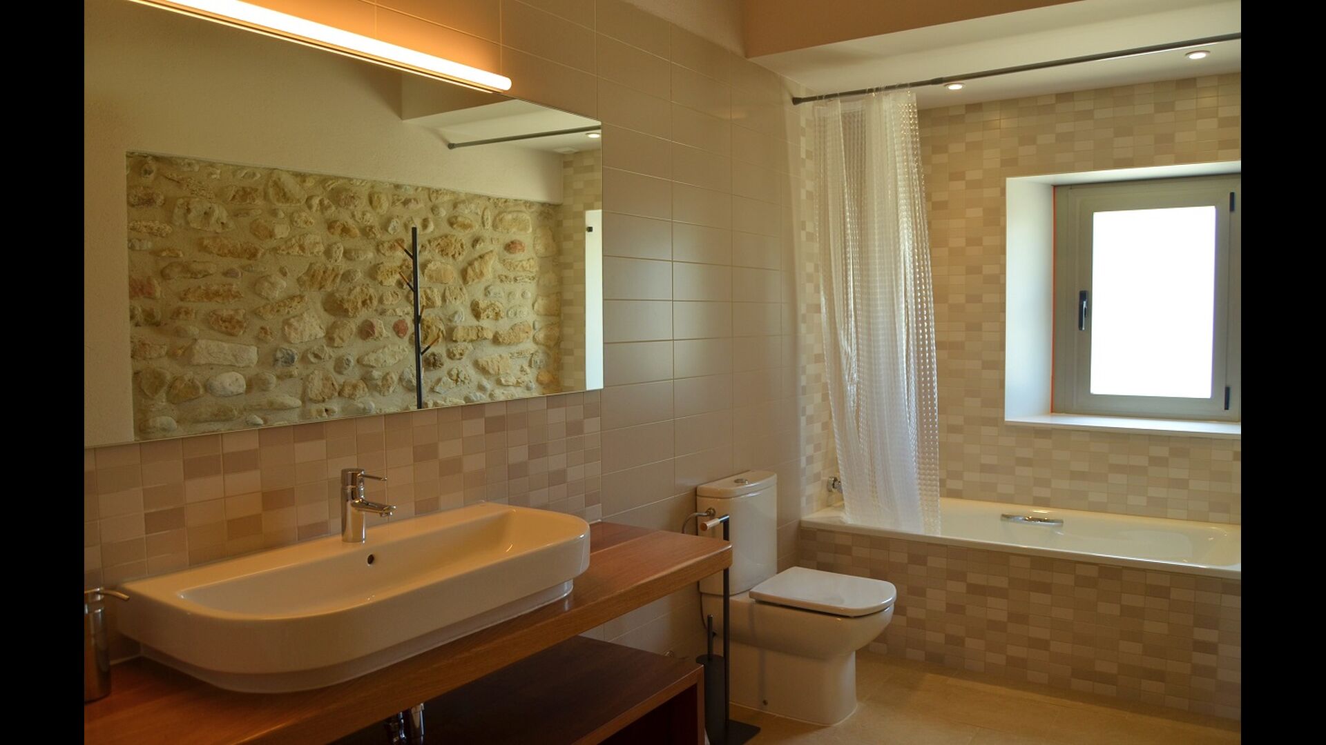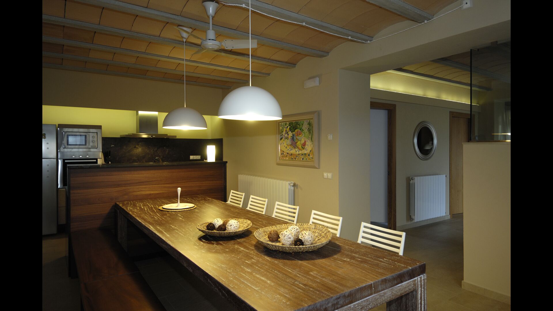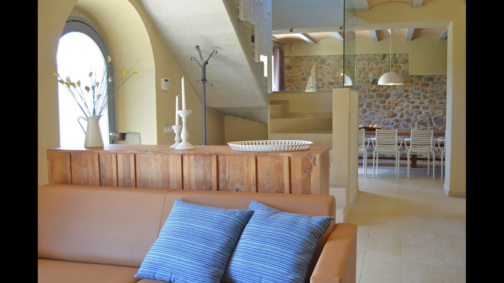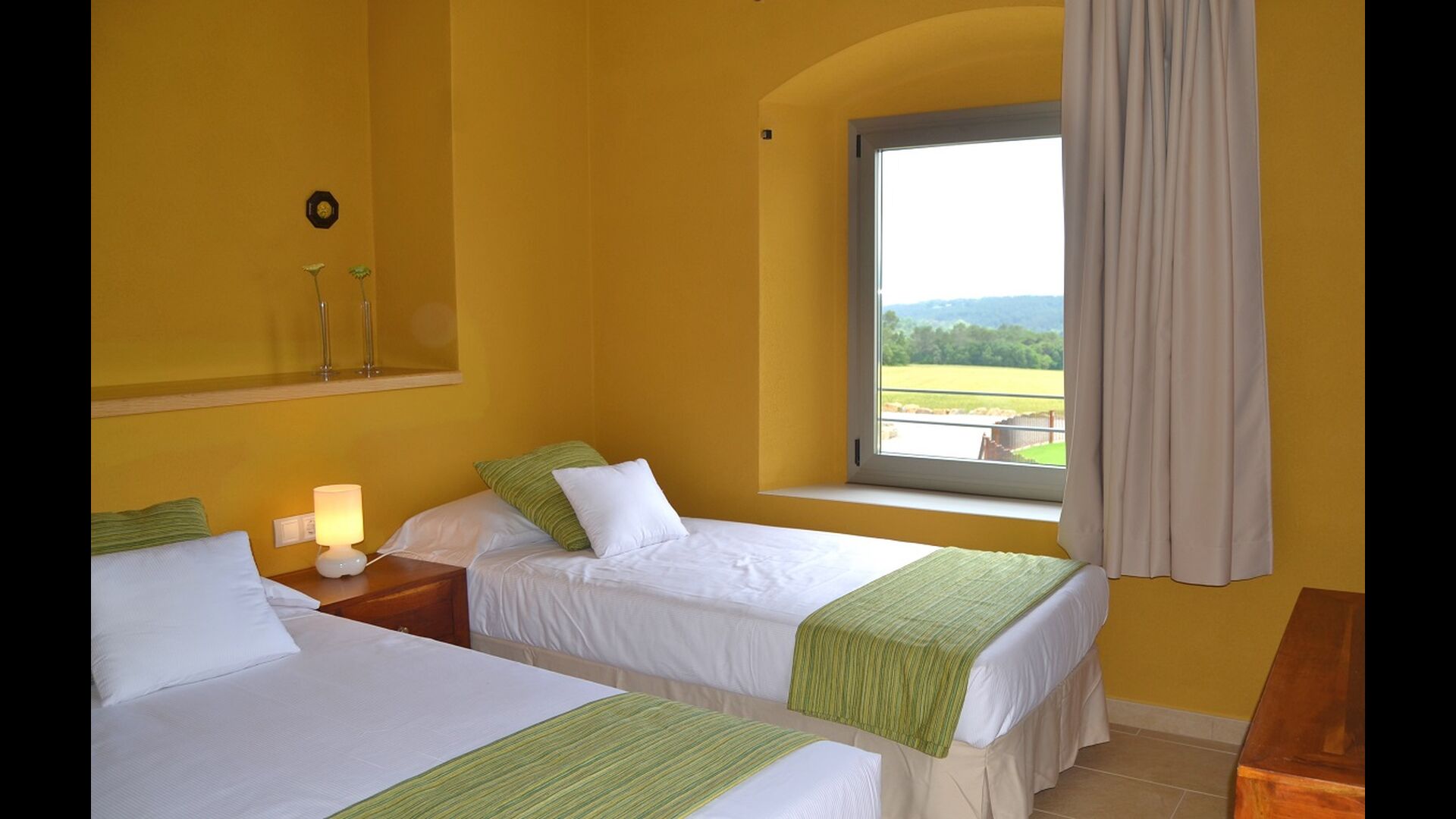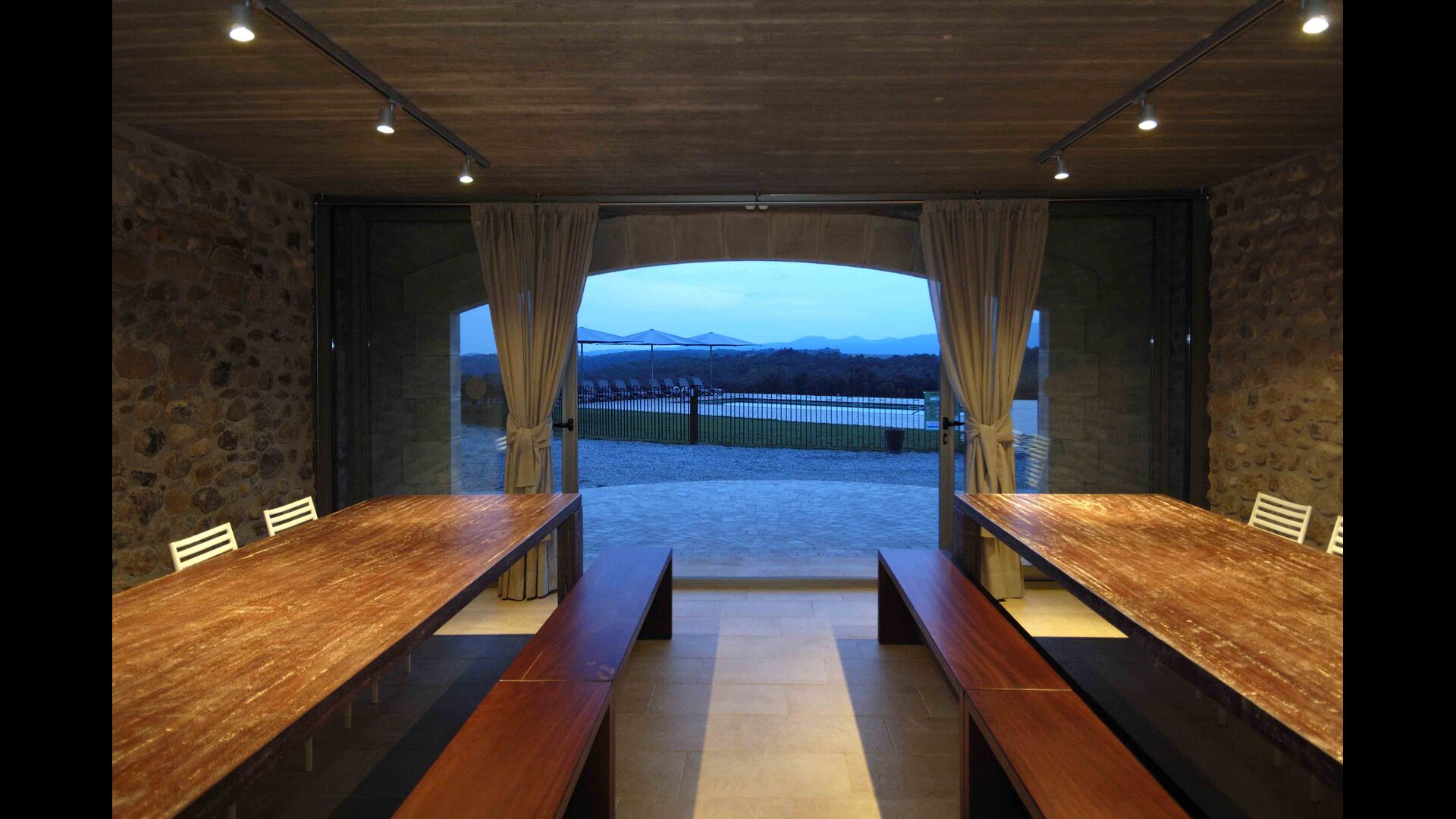 Masia Plañellas består af to ens bygninger med 5 soveværelser hver. Denne foranstaltning giver mulighed for at trække sig tilbage og slappe af i den store feriegruppe. Disse to bygninger er forbundet af en spisestue, hvor aftensmaden kan nydes. Ovenpå er der en tagterrasse med en formidabel udsigt udover landskabet.