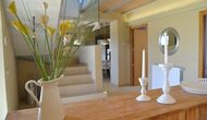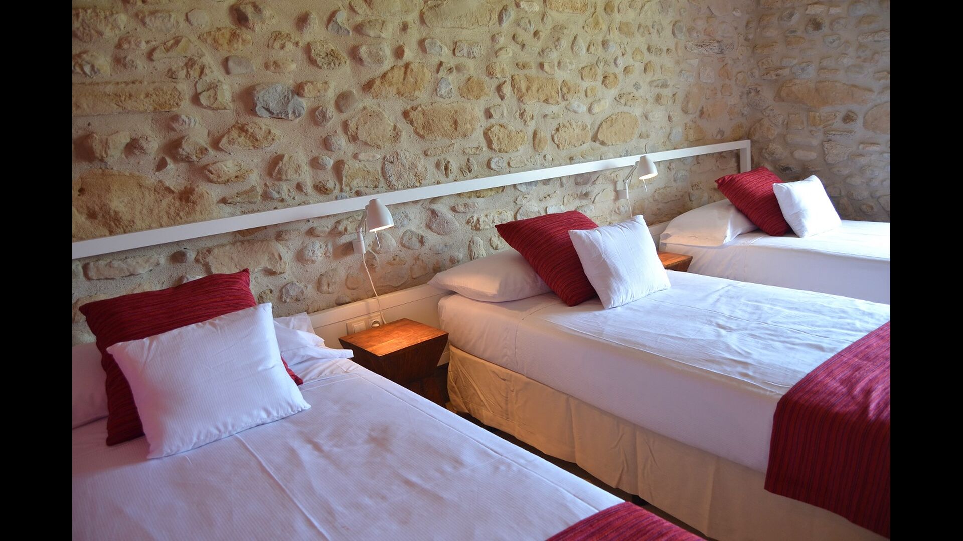 I hver bygning er der et 3-personers værelse og 4 dobbeltværelser. Kendetegnende for disse værelser er, at der er meget rummeligt og moderne. I huset er der 6 badeværelser, og ligesom resten af huset er de af meget høj kvalitet. De to køkkener i huset er ligeledes moderne og veludstyrede.