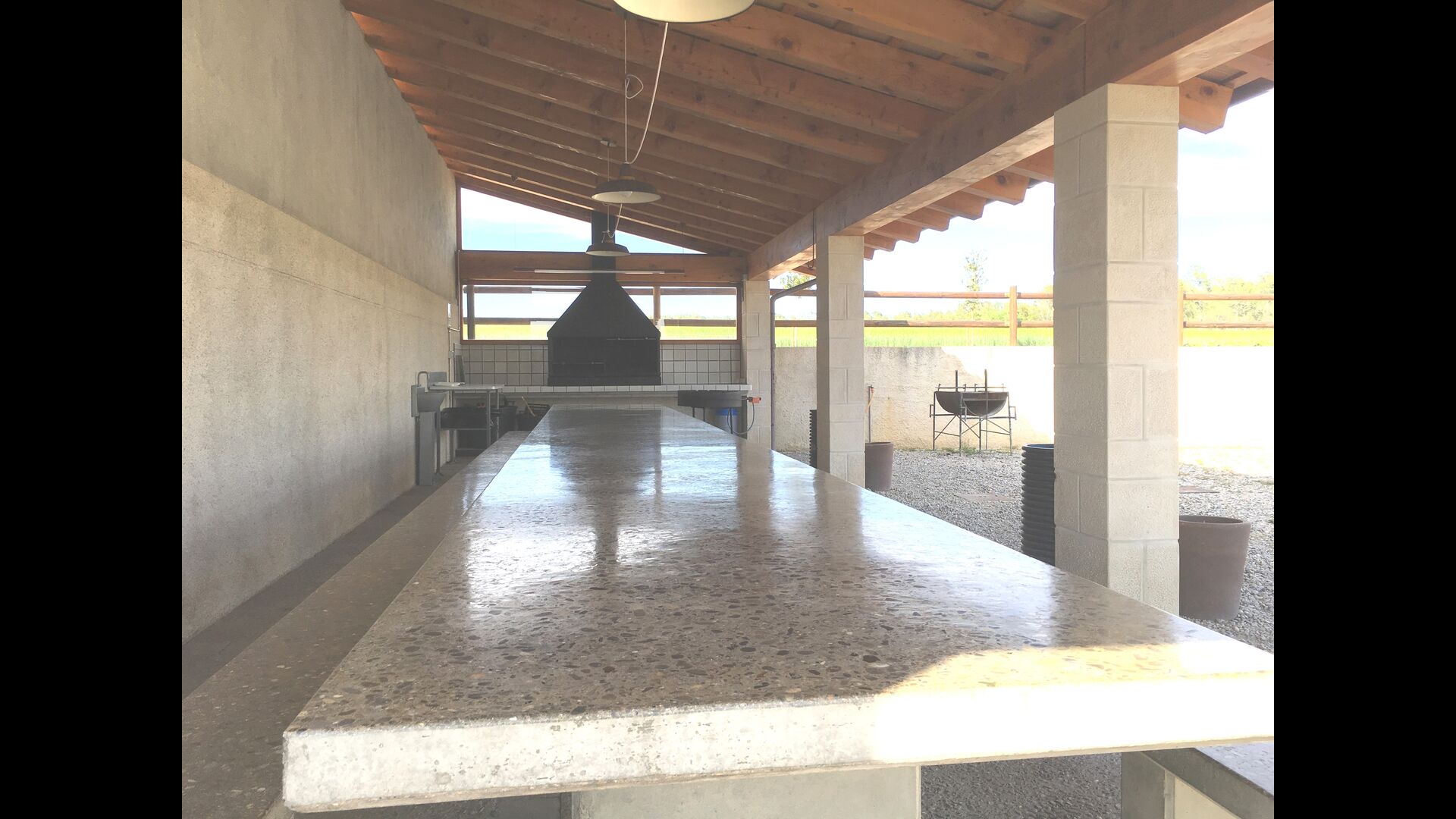 Et perfekt sted at lave mad er BBQ-grillen, der ligger ved en stor udendørs terrasse. Maden kan enten nydes her eller i den fælles spisestue.