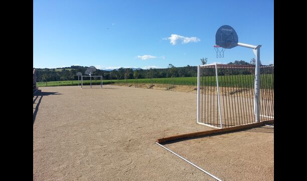 Ved siden af huset kan i tage en fodbold/basket/bordtenniskamp på multibanen. Til de helt yngre er der også en mindre legeplads bestående af gynger, vipper og lign.