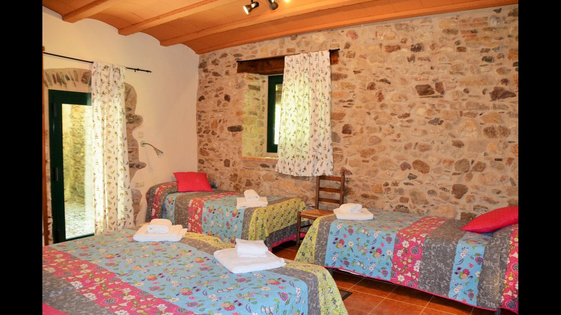 Denne lejlighed, Casa Puix Miguel – Olive 1, har plads til 6 gæster. Der er et meget stort soveværelser med fire enkeltsenge. Hertil er der et ’en-suite’ badeværelse. Det andet værelse er et flot dobbeltværelse – der er et badeværelse til dette, hvis man går gennem stuen.