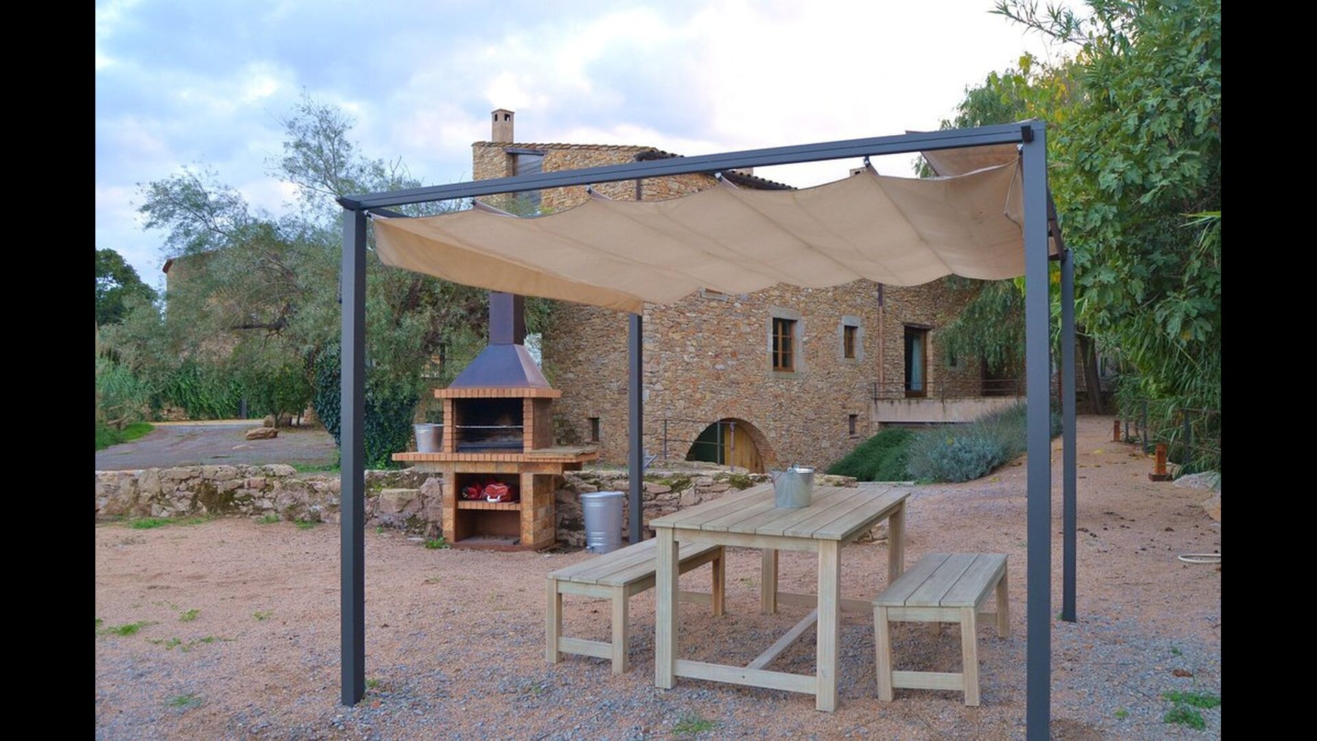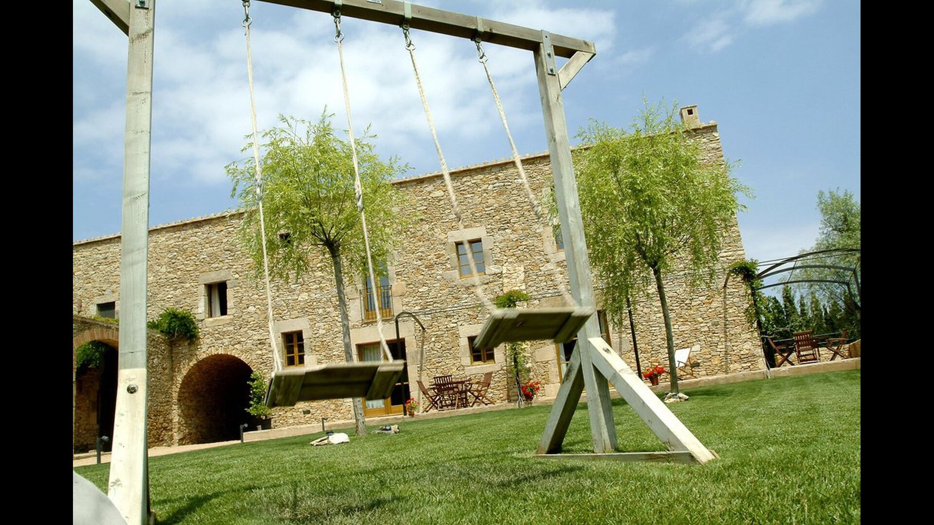 Udenfor er der et forholdsvist stort haveområde. Her er der for det første en delt swimmingpool på hele 50m2. Dette er et stensikkert hit blandt børnene, der vil bruge masser af tid heri. Specielt i sommermånederne når det er meget varmt i Catalonien, er det en uundværlig facilitet, da man kan blive kølet ned på meget kort tid. Derudover er der en stor BBQ-grill i haven med et tilhørende overdækket spisebord, hvor man kan nyde den nylavede mad under de lune catalanske aftener. Endvidere er der flere siddeområder rundt i haven.For de mindre i gruppen er der en mindre legeplads med legehus og gynger.
