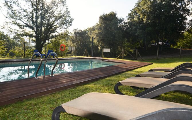 Ferieboligen er en af to ferieboliger på ejendommen. Can Bosquita – Mirador er den mindre af de to bygninger, der udgør Can Bosquita. De to bygninger ligger på den skrånende ejendom, der strækker sig over mere end 4,000 m2, hvor I frit kan færdes. Først Can Bosquita - Gran og lige overfor, adskilt af terrasse, Can Bosquita - Mirador. Begge huse har egen private terrasse, grill og udeområder, afskærmede i forhold til den anden feriebolig. Det delte poolområde ligger et niveau under de to ferieboliger, og er indhegnet, så små børn ikke kan komme til poolområdet på egen hånd. Fra begge huse, har du en fantastisk udsigt over dalen nedenfor, hvor Brugent floden arbejder sig vej ned mod Girona og ovenover huset rejser det smukke Guilleries bjerg-massiv sig.