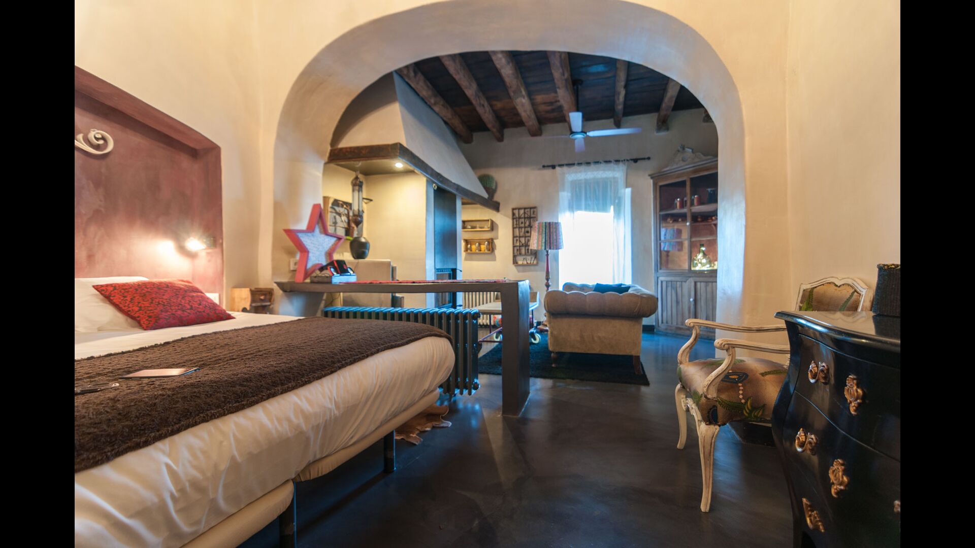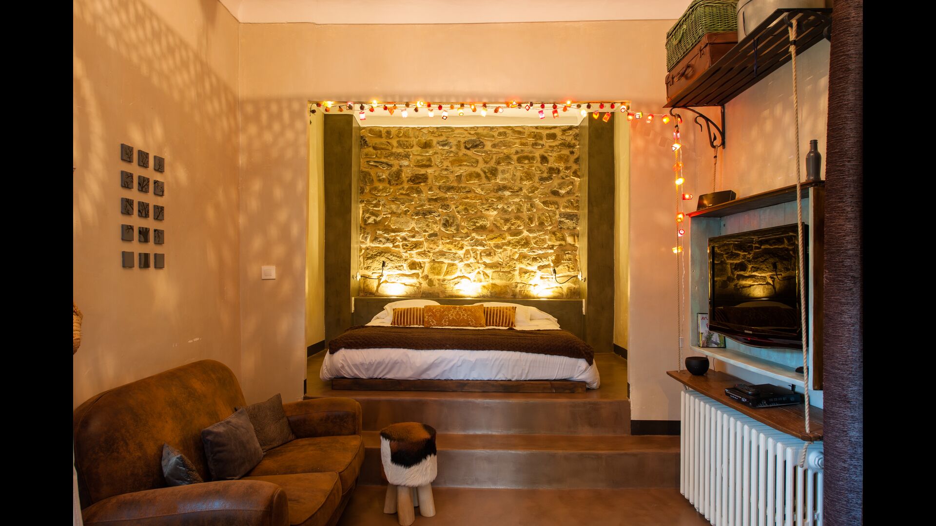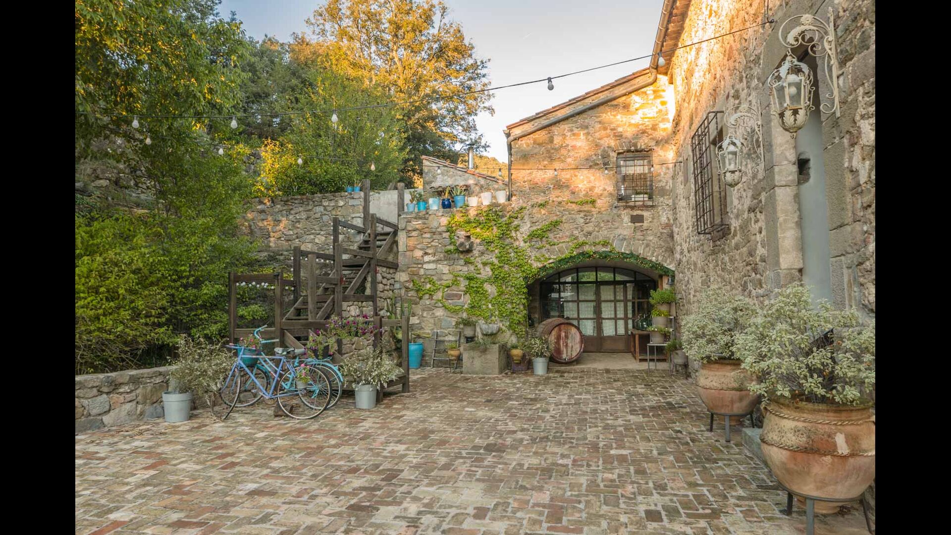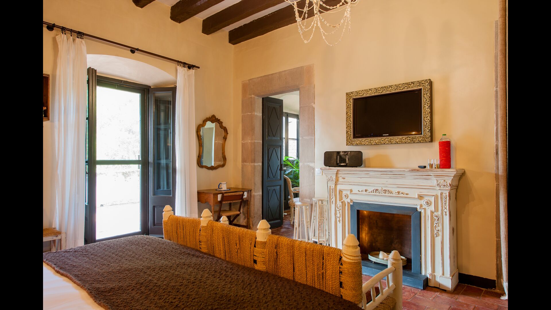 Feriehjemmet, der oprindeligt er fra det 10. århundrede, har 5 master suite soveværelser og et lille soveværelse med 2 køjesenge. Suiterne har eget badeværelse og de har alle en privat terrasse eller balkon, og et af dem har endda sin egen lille gårdhave. Sengene er king size med lækkert, hvidt bomuldslinned. Der er flere fælles værelser omkring huset, herunder et chill-out værelse med pejs, bibliotek, en dejlig spisestue, et stort køkken og endda en bar, hvis man får lyst til et par drinks og lidt musik. Huset har, efter vores mening, alle nødvendige komponenter for en komplet ferie.