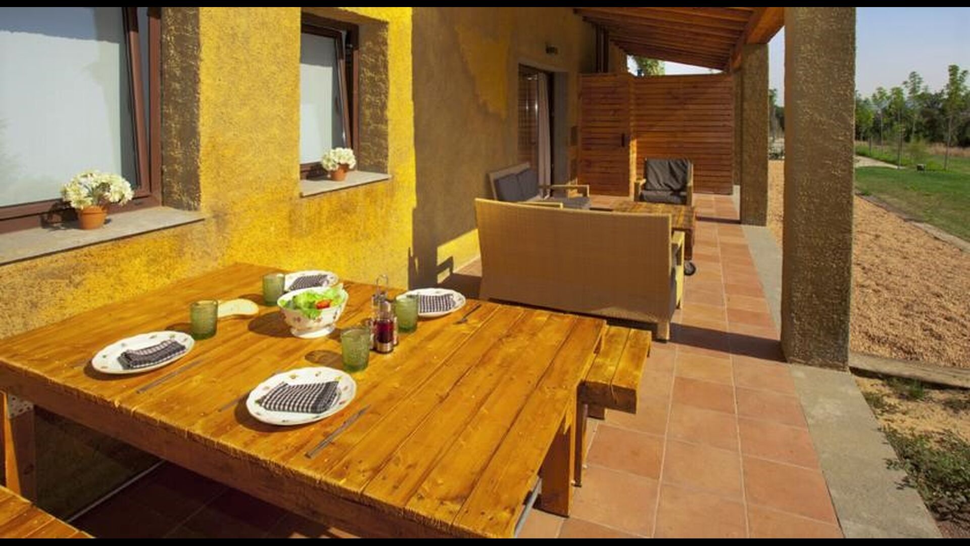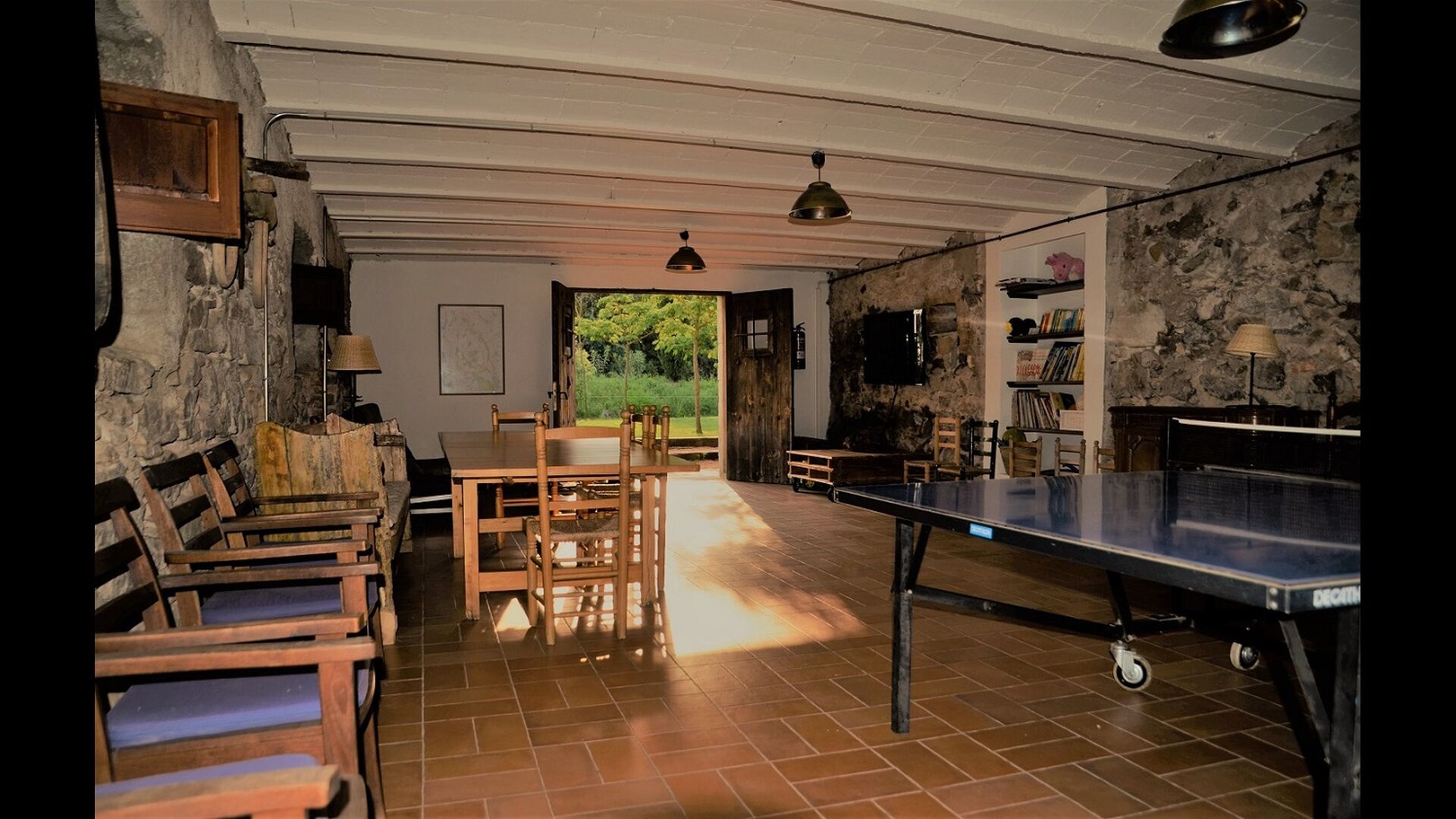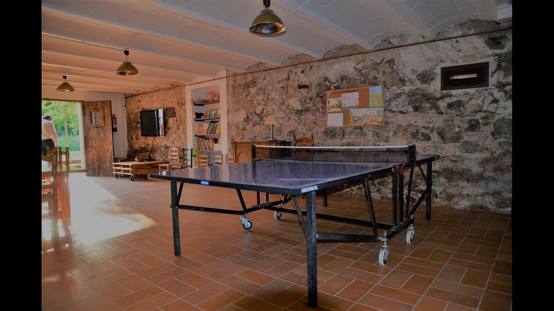 Hver af lejlighederne har desuden deres egen private terrasse, hvor man fx kan nyde aftenmåltiderne i lyset af den fortryllende catalanske solnedgang. Af andre faciliteter i feriehuset kan der nævnes det store fællesrum, hvor der bl.a. er bordtennis, legetøj, fladskærmstv, andre spil, osv., så der altid er noget at lave i Can Garilla.