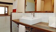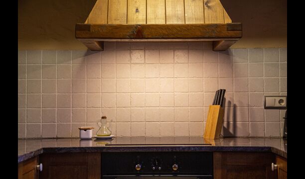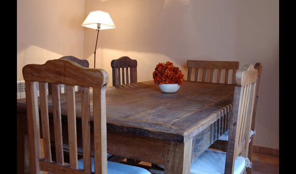 På 1. sal er der åbent køkken med alle moderne faciliteter, herunder vaskemaskine, opvaskemaskine, mikroovn og kaffemaskine. Der er desuden badeværelse og stor smagfuld stue. Fra stuen er der balkon med udsigt over landsbyens centrum.