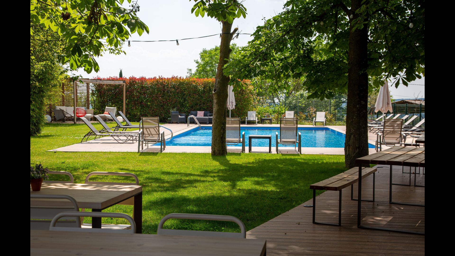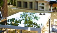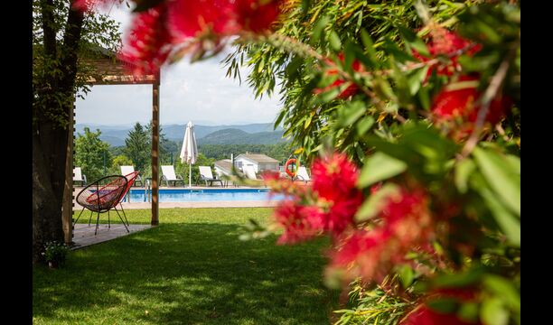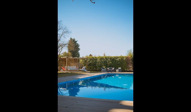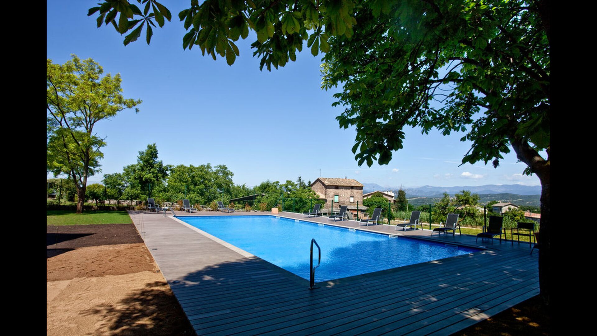 Derudover blev husets bagside forvandlet til det fantastiske swimmingpoolområde med den store swimmingpool (17 x 5 meter), café borde,toiletter og omklædningsrum og skyggefulde hjørner og solrige steder. Udsigten er fantastisk, direkte til Pyrenæerne.