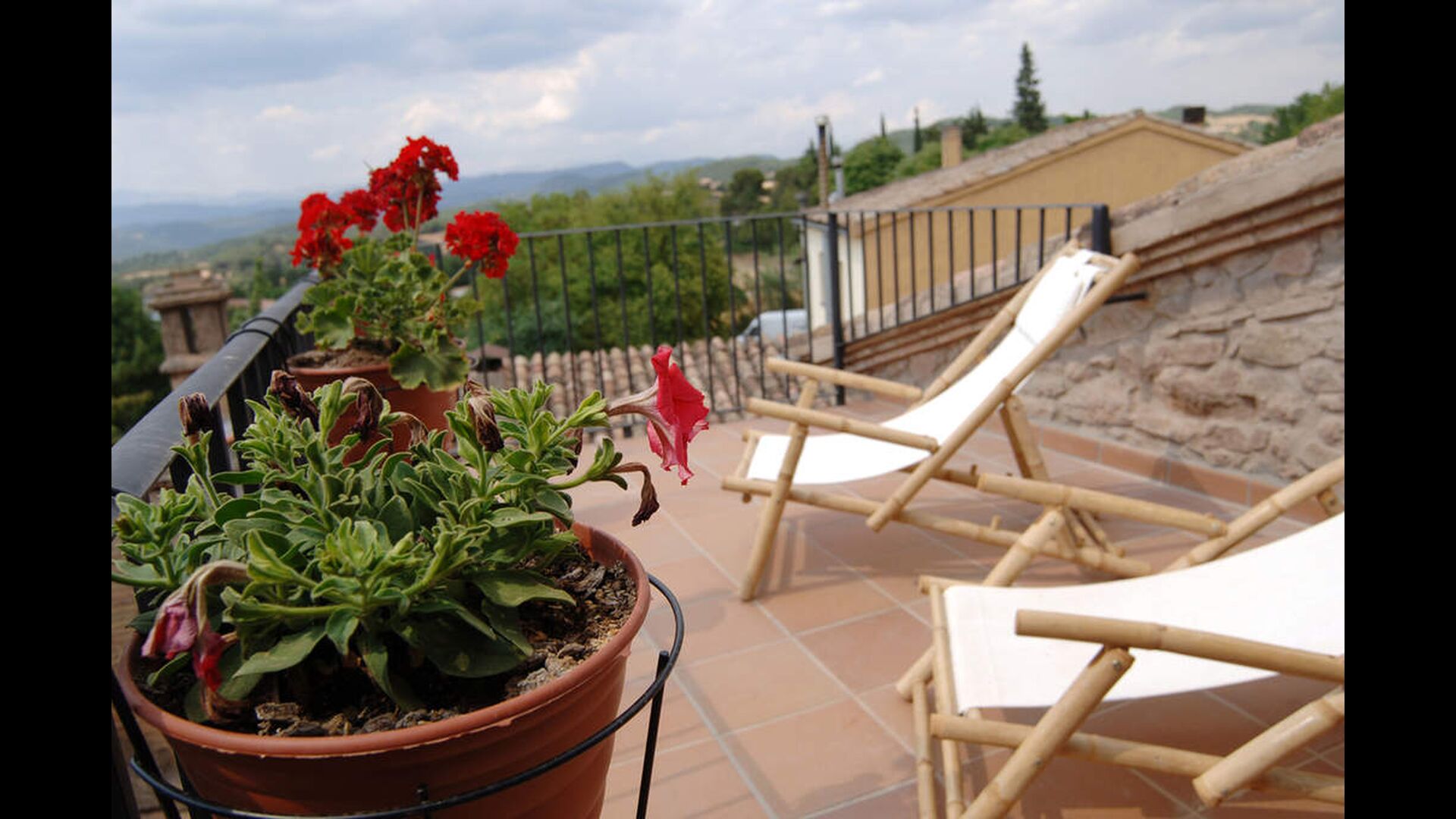 På 2. sal er der to dobbeltværelser og et værelse til fire personer (enkeltsenge). Fra det ene dobbeltværelse er der adgang til en charmerende tagterrasse med en fremragende udsigt over det catalanske landskab. . Derudover er der et andet badeværelse med bruser.
