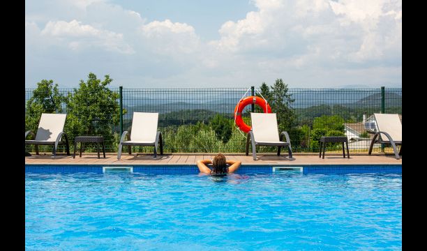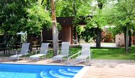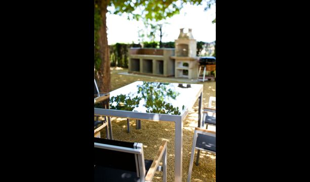 Derudover blev husets bagside forvandlet til det fantastiske swimmingpoolområde med den store swimmingpool (17 x 5 meter), café borde,toiletter og omklædningsrum og skyggefulde hjørner og solrige steder. Udsigten er fantastisk, direkte til Pyrenæerne.