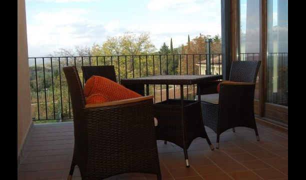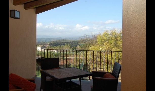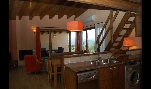 Els Munts er en af lejlighederne i hovedbygningen. Denne lejlighed på anden sal har sin egen terrasse med grill og den smukkeste udsigt over bjergene.