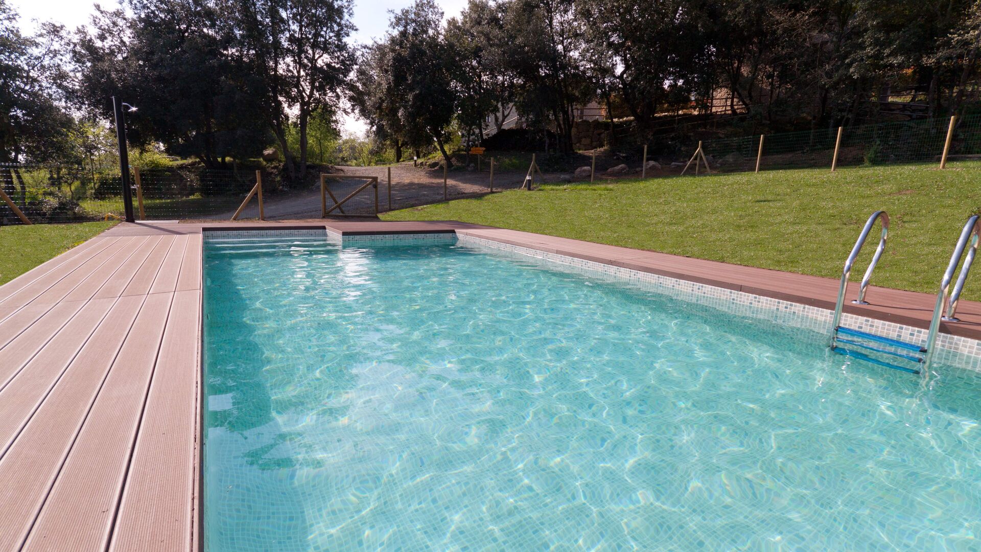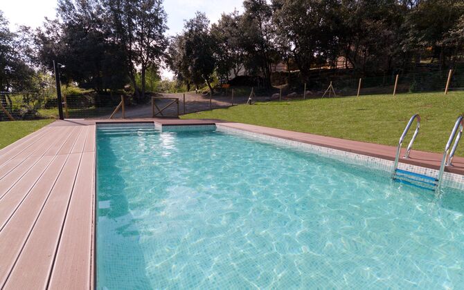 Ejendommen ligger uforstyrret som sidste hus før skoven, så der er gode muligheder for smukke gå- og cykelture. I den anden retning er den lokale landsby i gåafstand. Here er der et par restauranter, bager, supermarked og nogle butikker. Der er desuden offentlig transport til Barcelona og Girona.